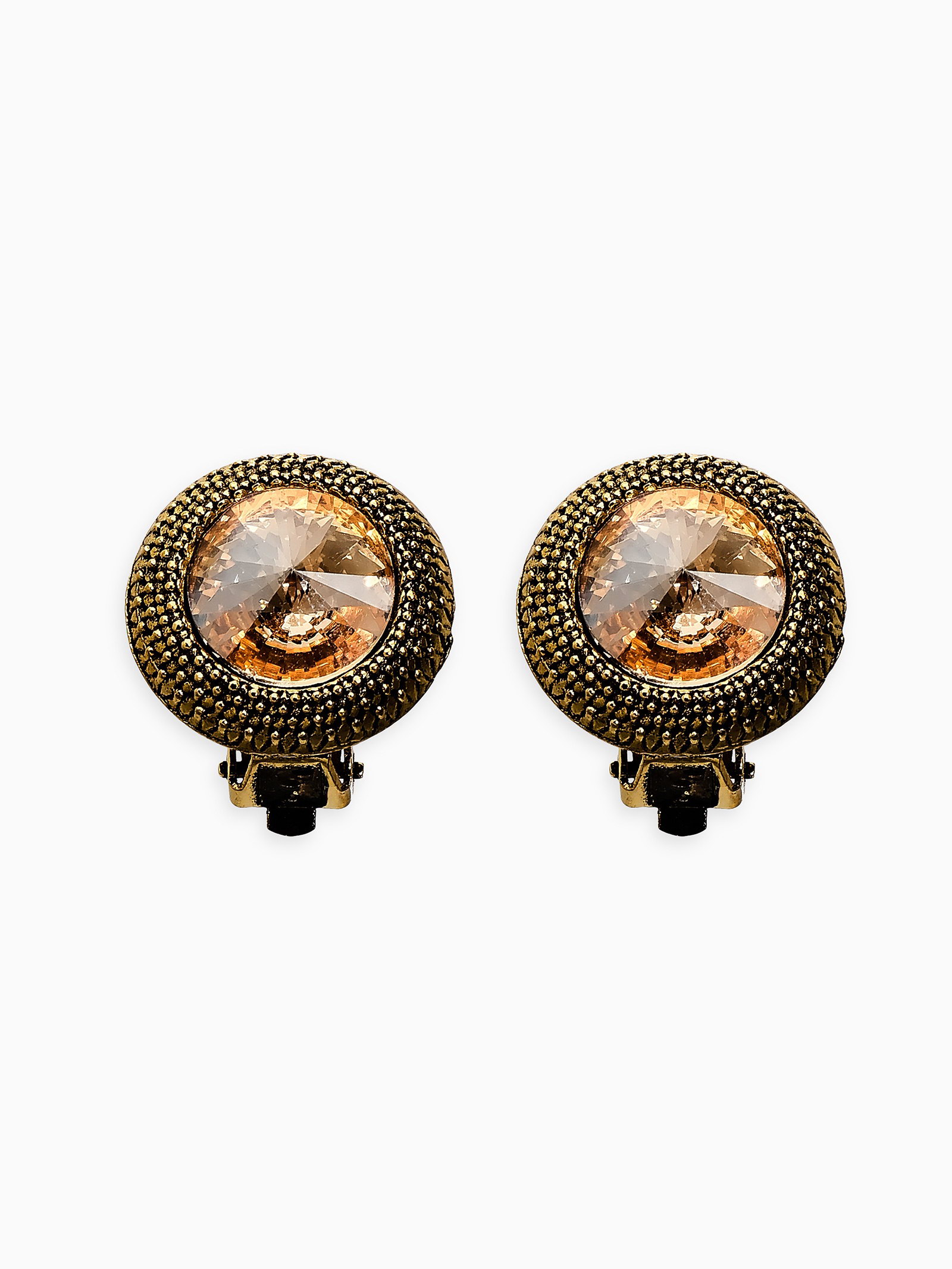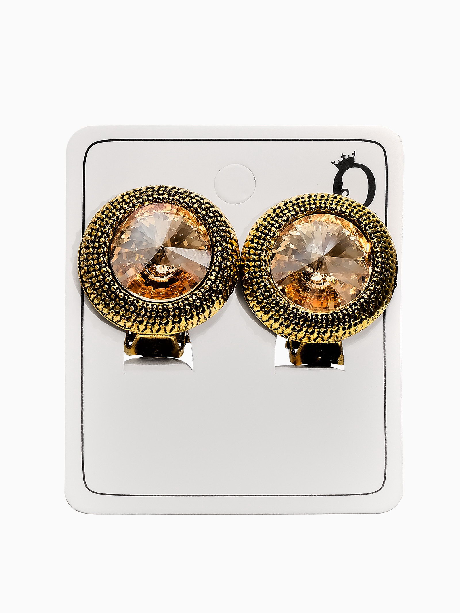 Клипсы "Винтаж" круг страз, цвет золотой в чернёном золоте, 1.8x1.8x1 см., QF, Китай