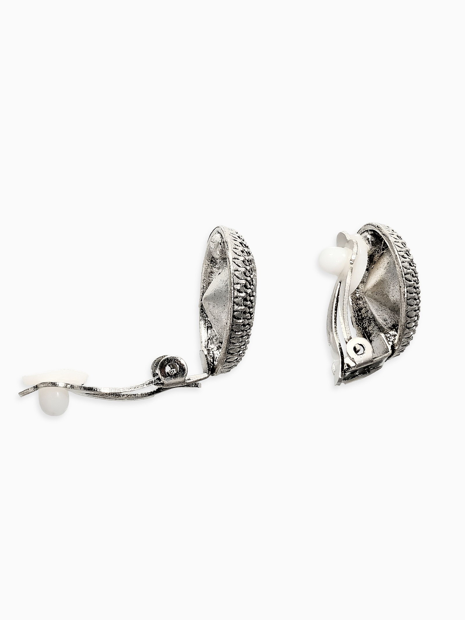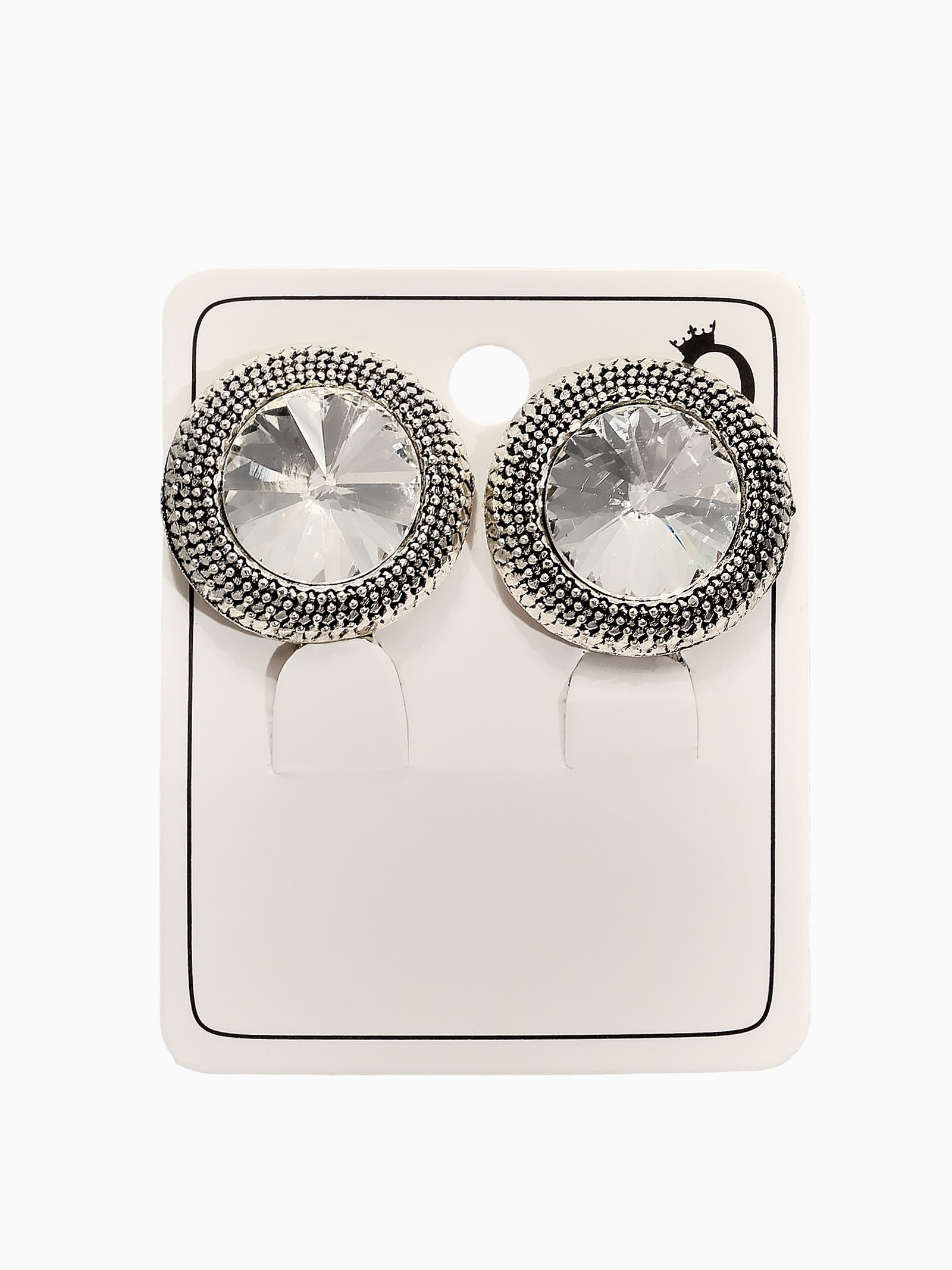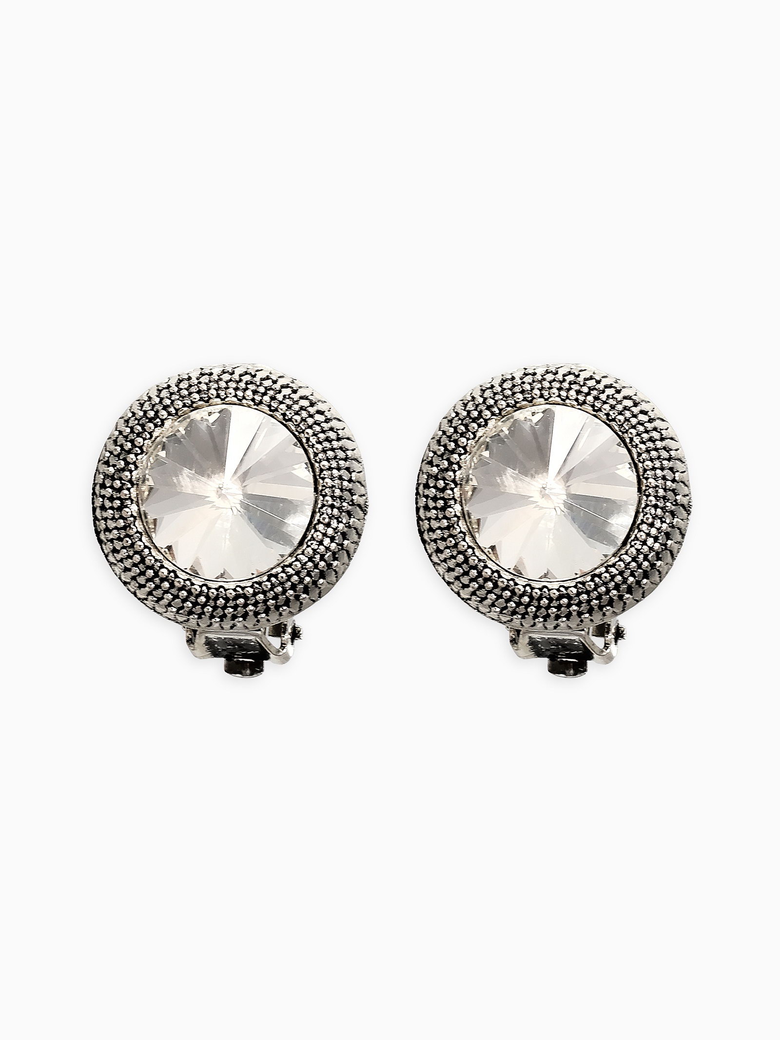 Клипсы "Винтаж" круг страз, белая в чернёном серебре, 1.8x1.8x1 см., QF, Китай