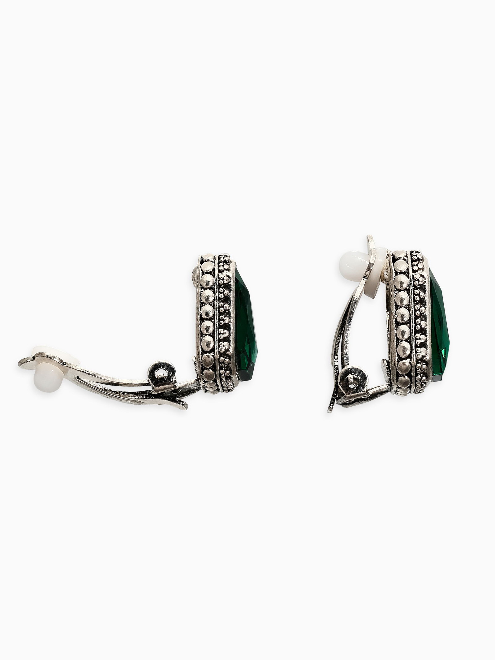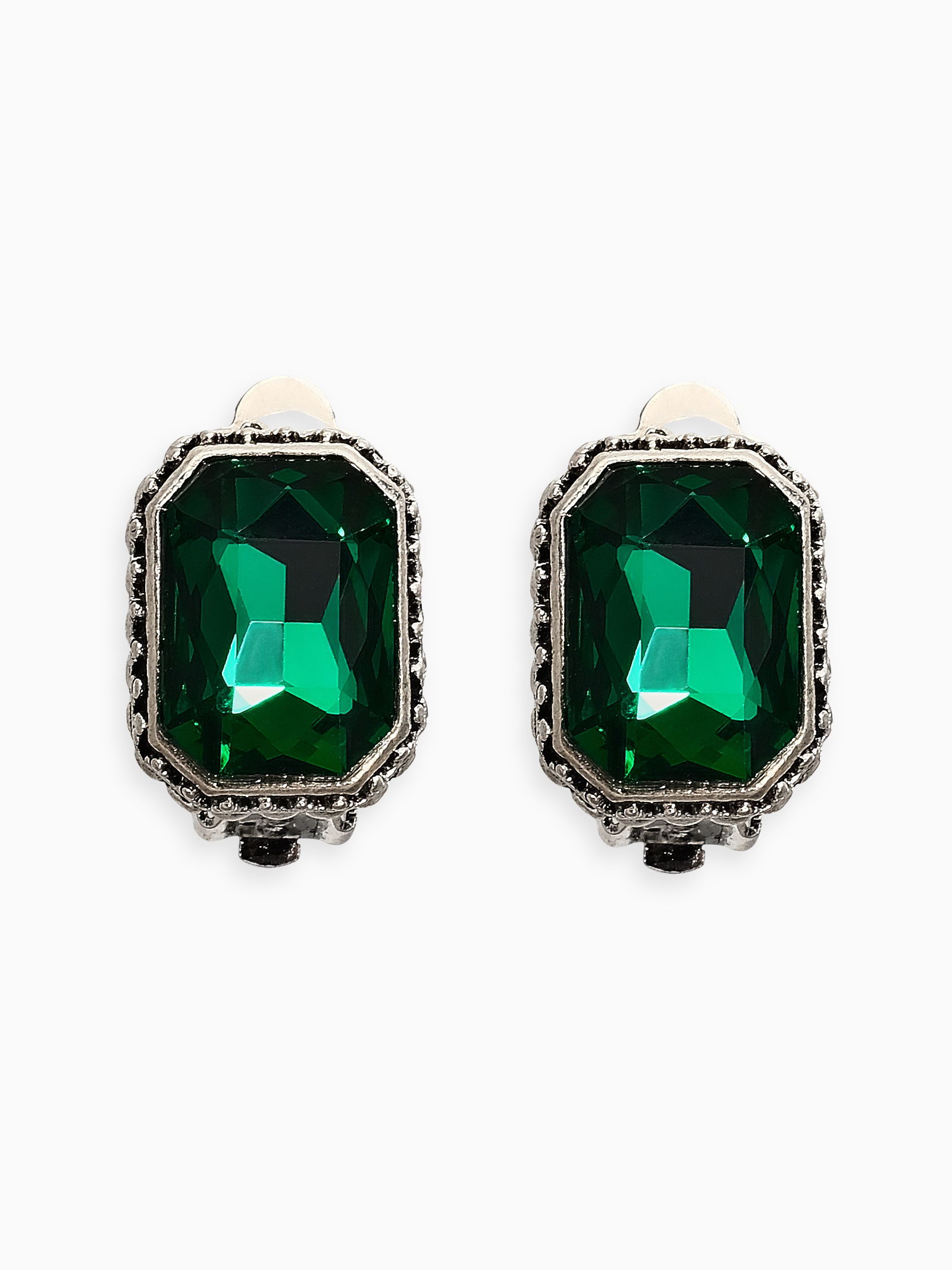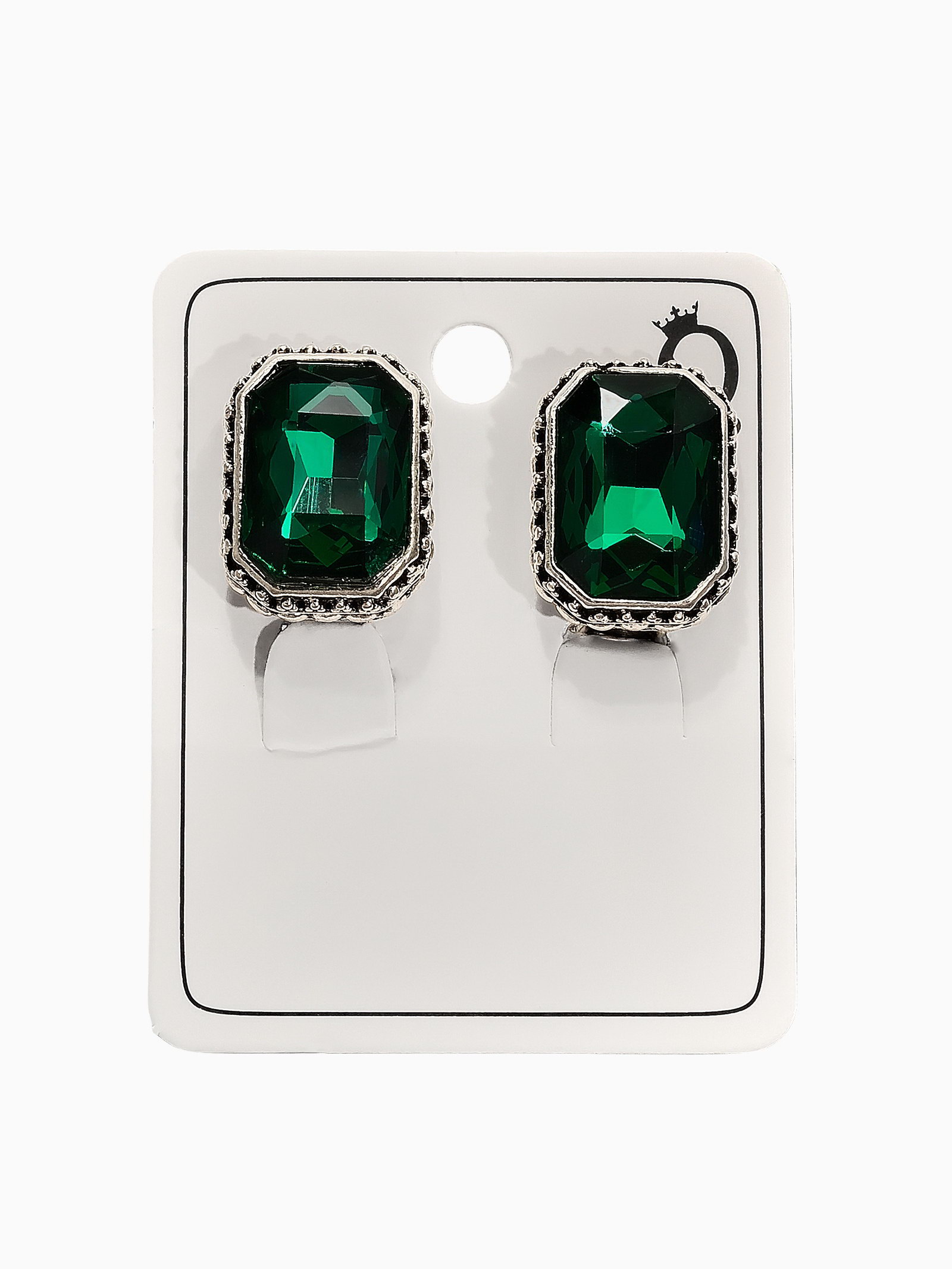 Клипсы "Винтаж" прямоугольник грань, цвет изумрудный в чернёном серебре, 1.2x1.7x1.5 см., QF, Китай