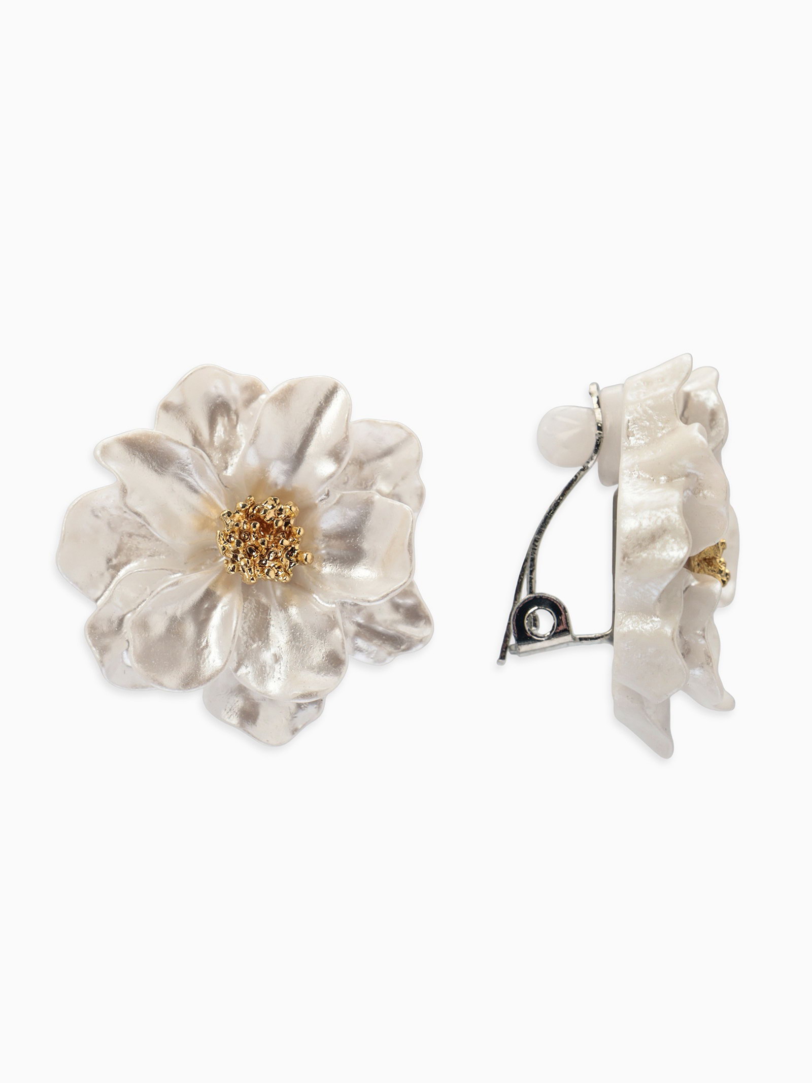 Посмотрите на обычные серёжки иначе выберите золотые клипсы с белыми цветами и добавьте своему образу новую грань очарования и утончённости. | ||