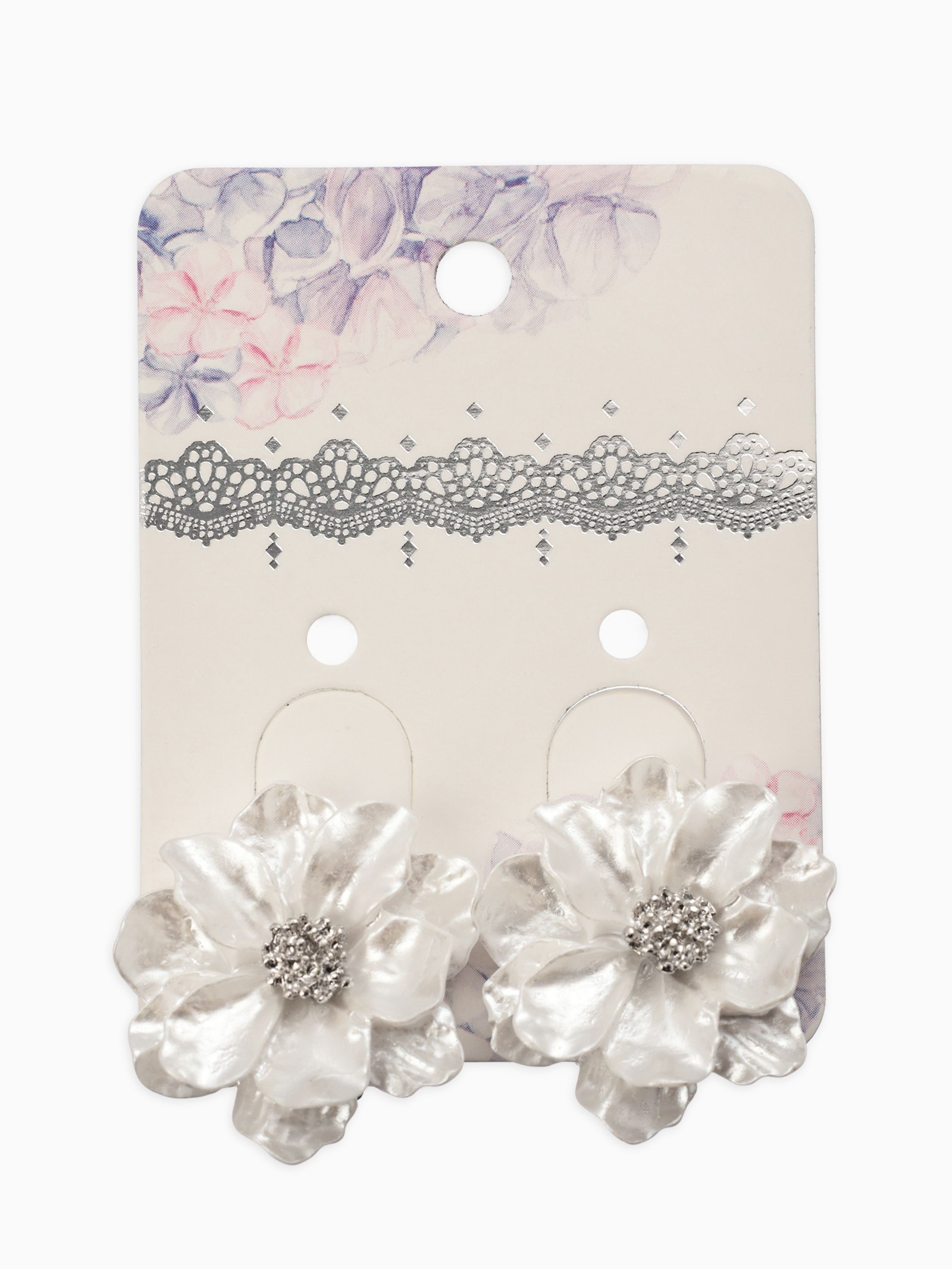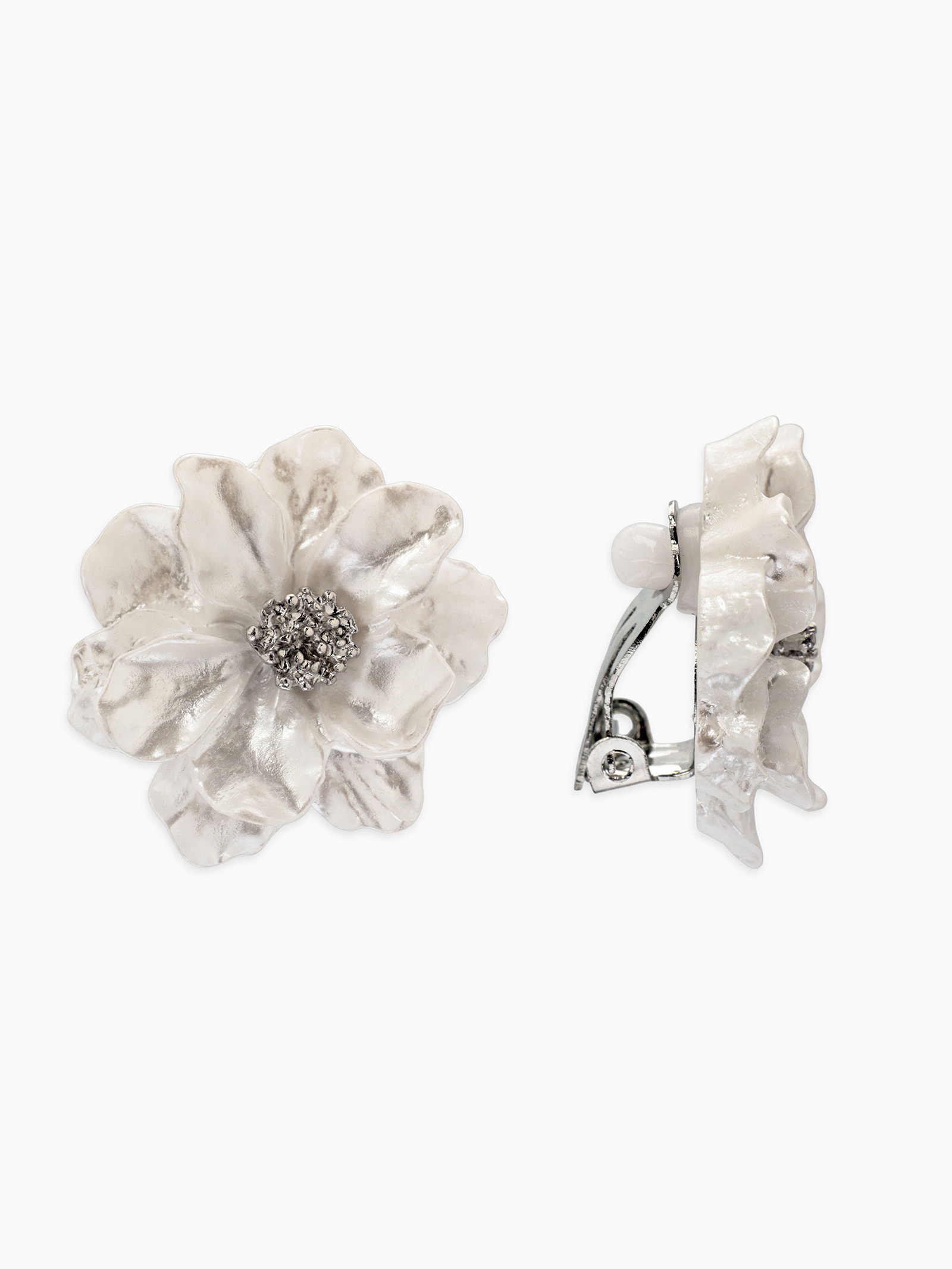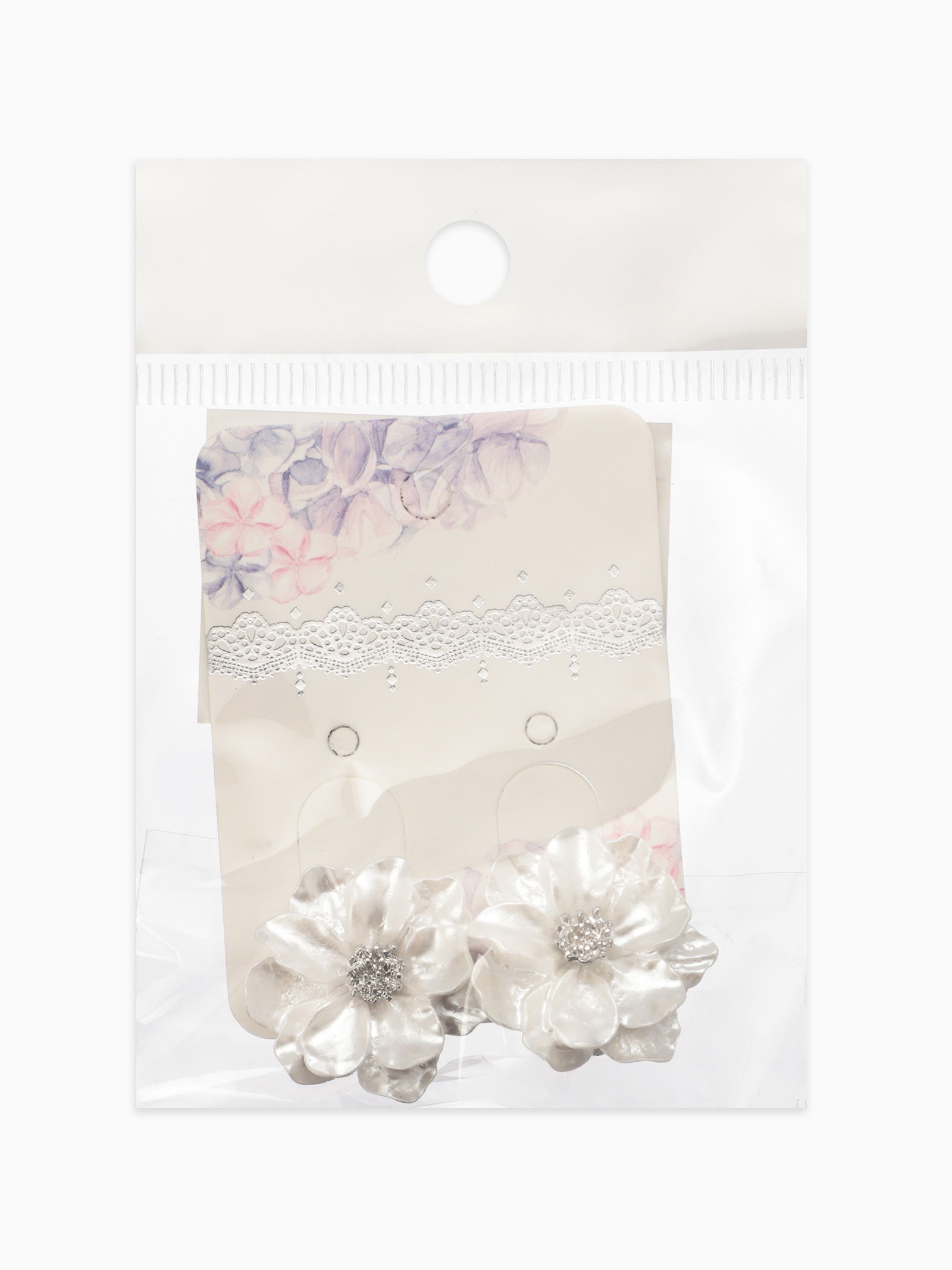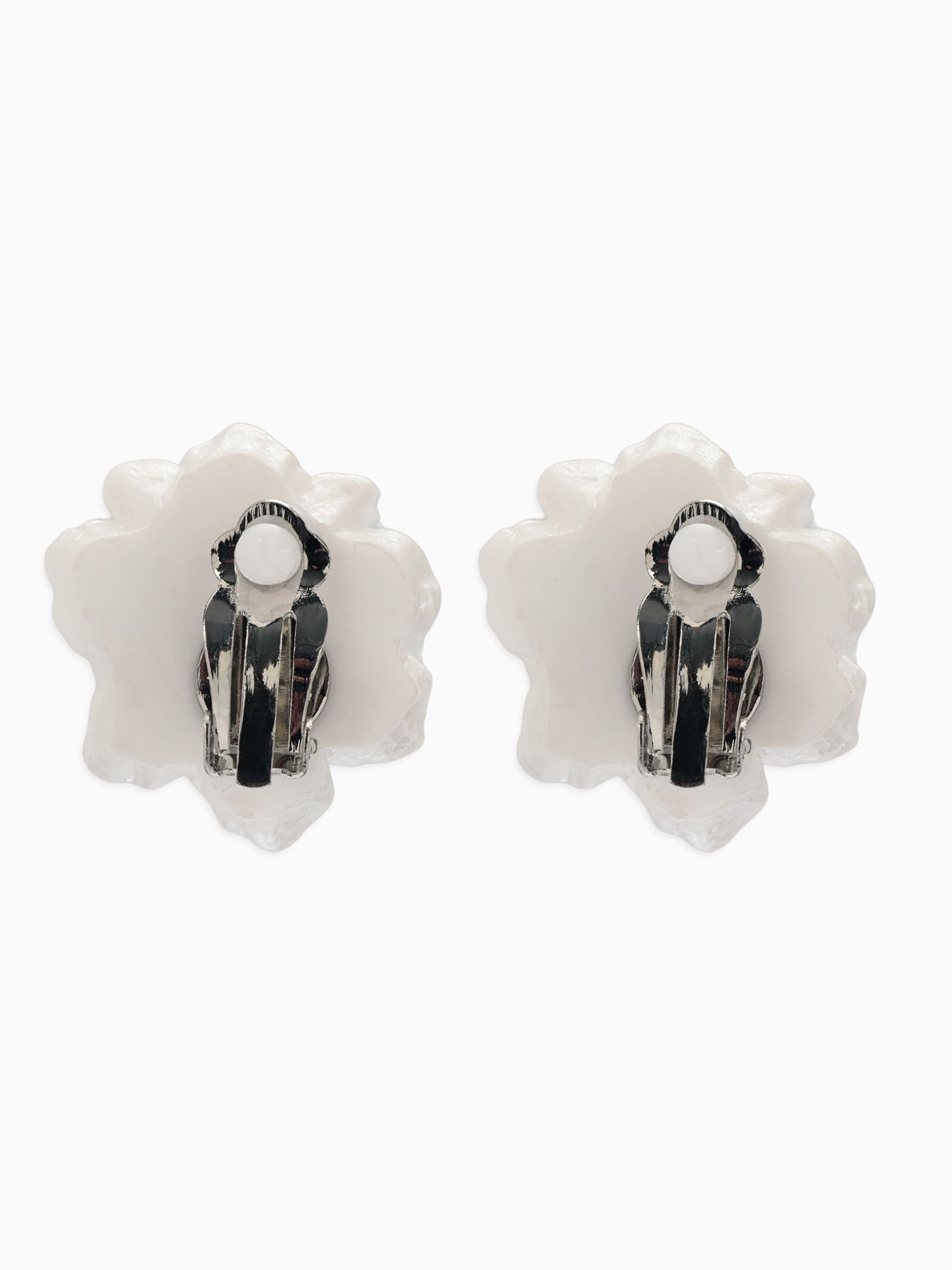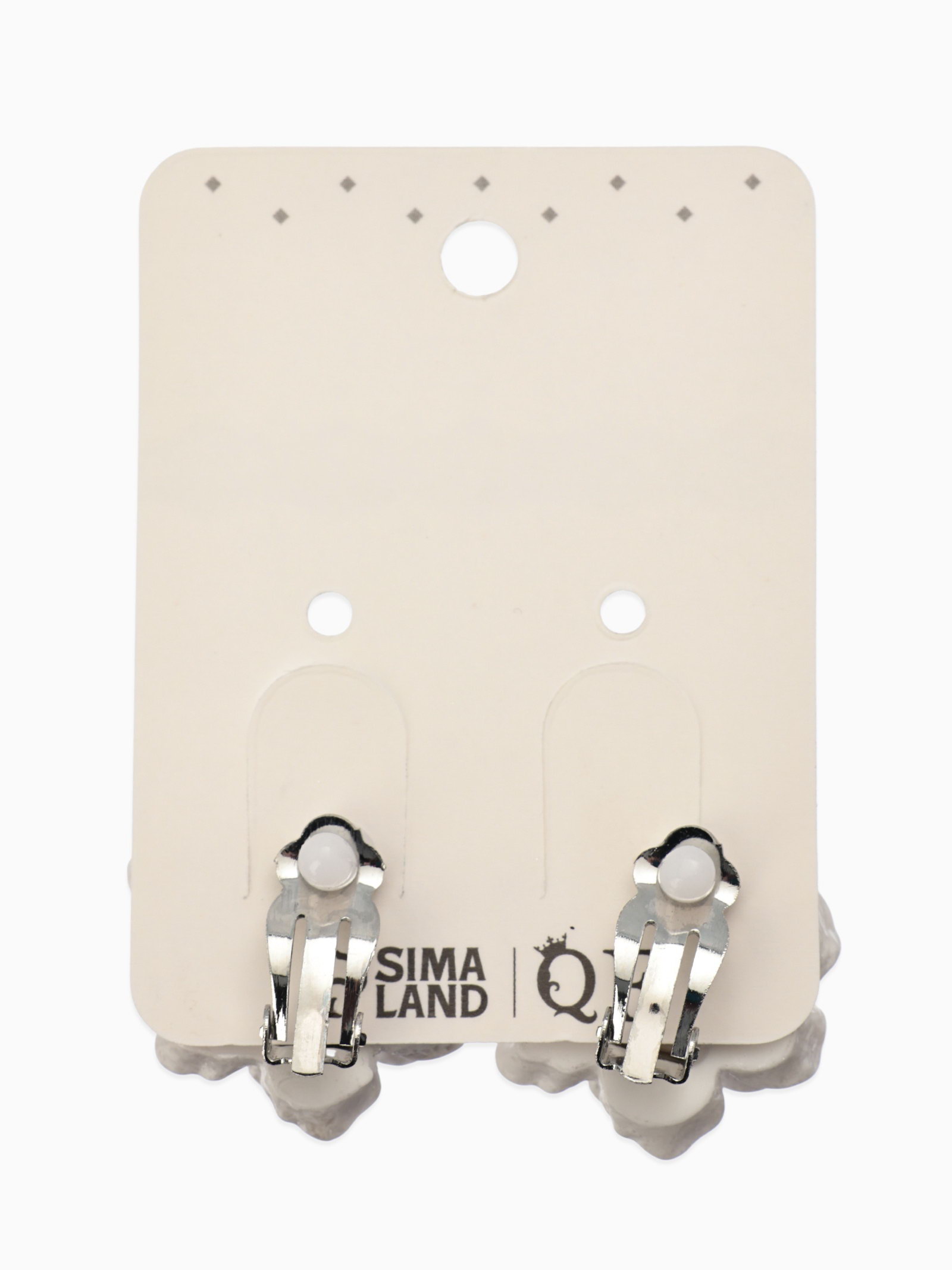 Клипсы "Цветочки", белая в серебре, 2.5x2.5x1.5 см., QF, Китай