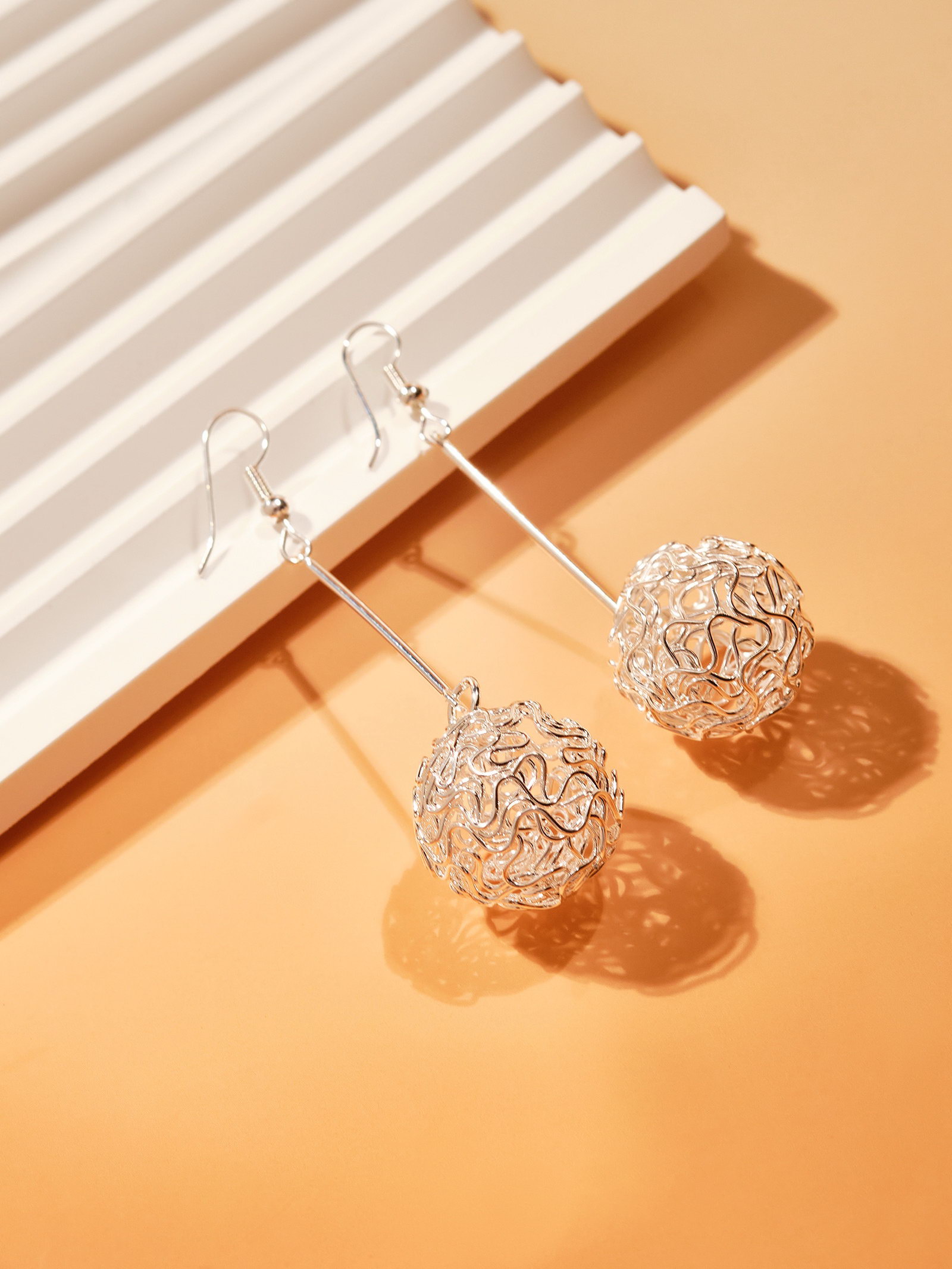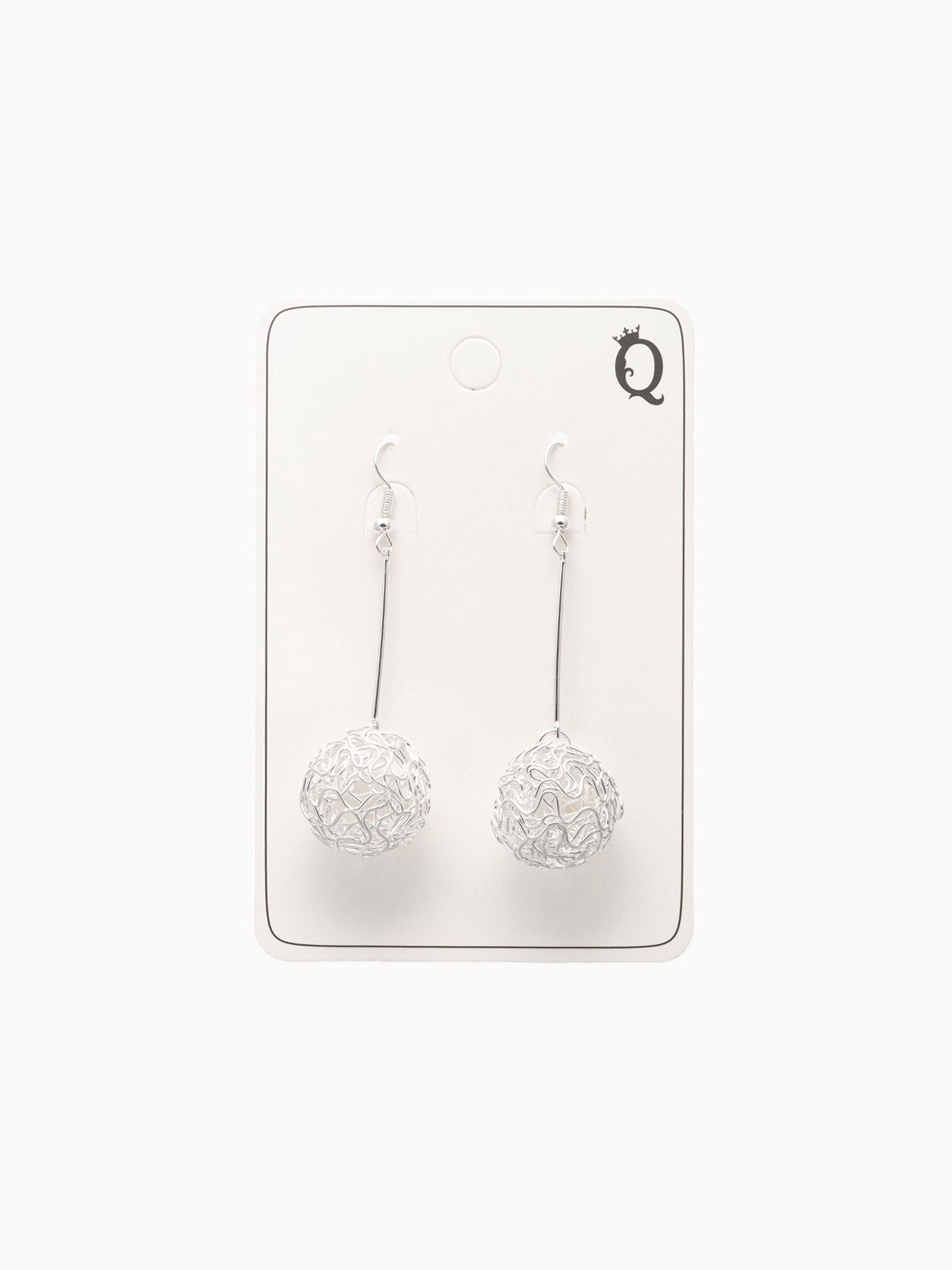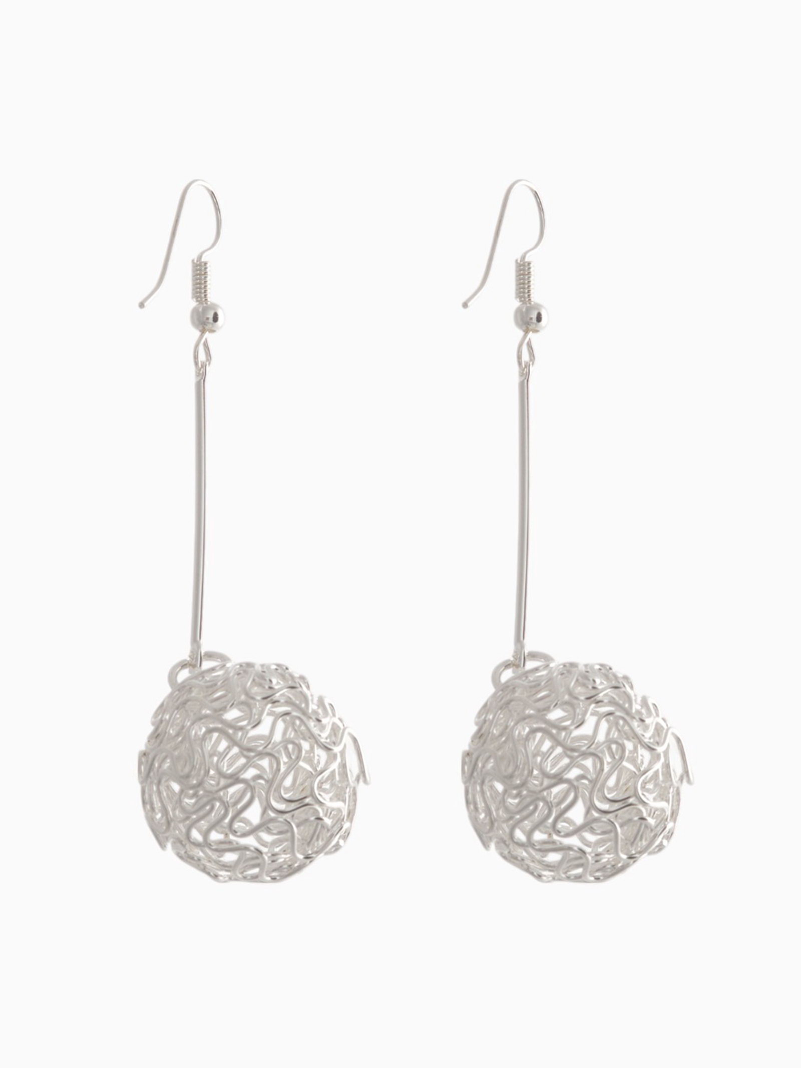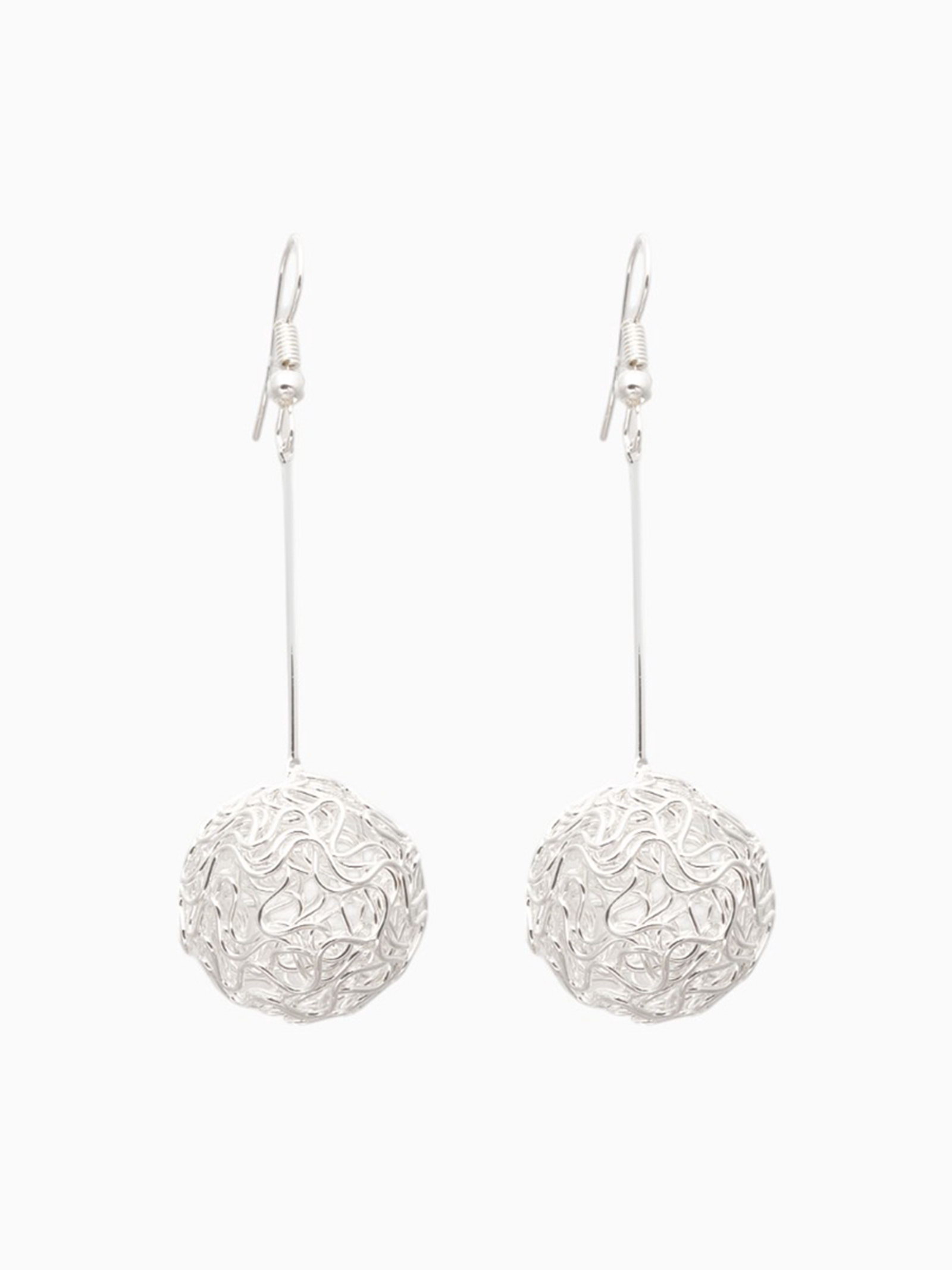 Серьги висячие "Шарик" переплетение, цвет светлое серебро, 6.5 см, 1.8x6.5x1.5 см., QF, Китай