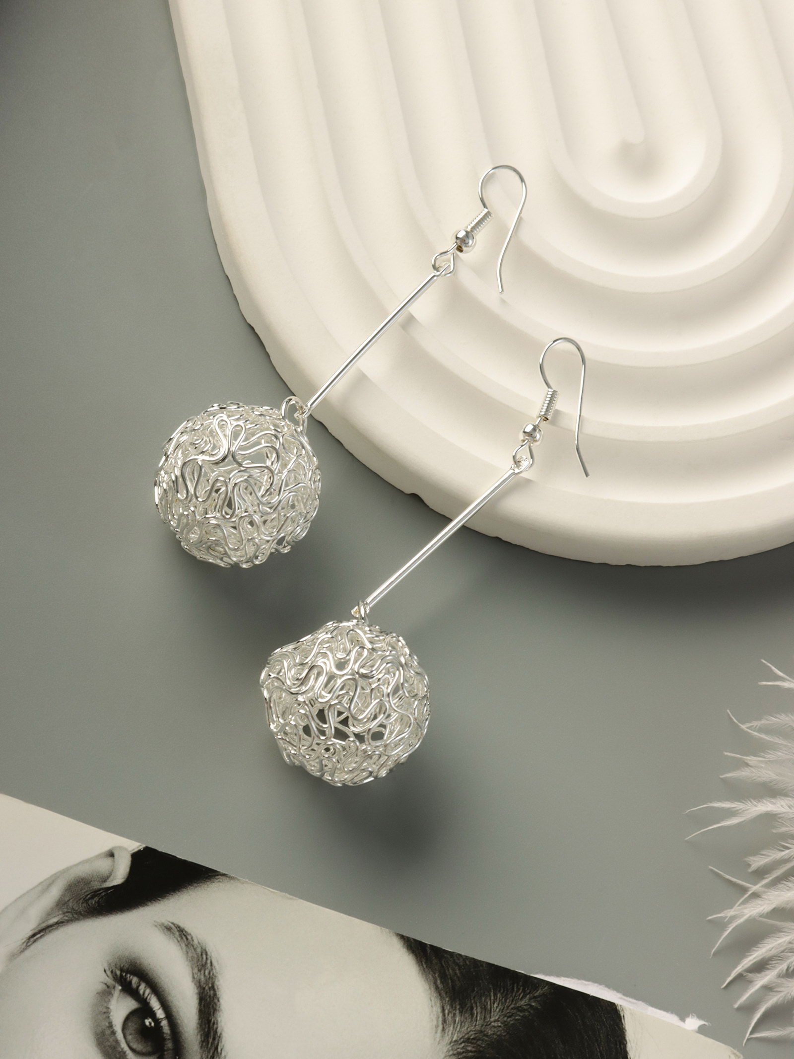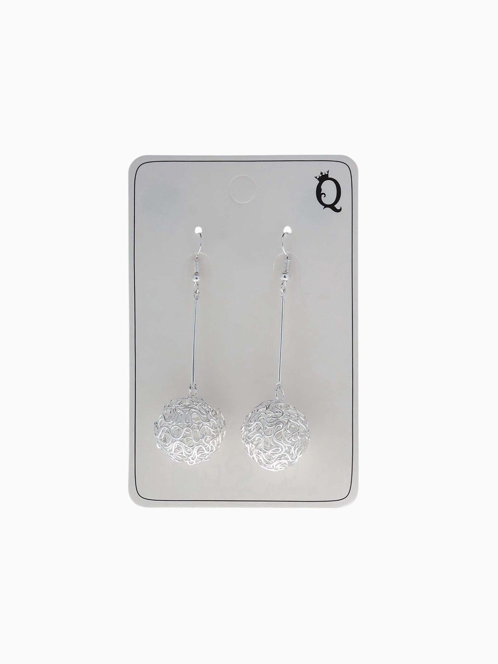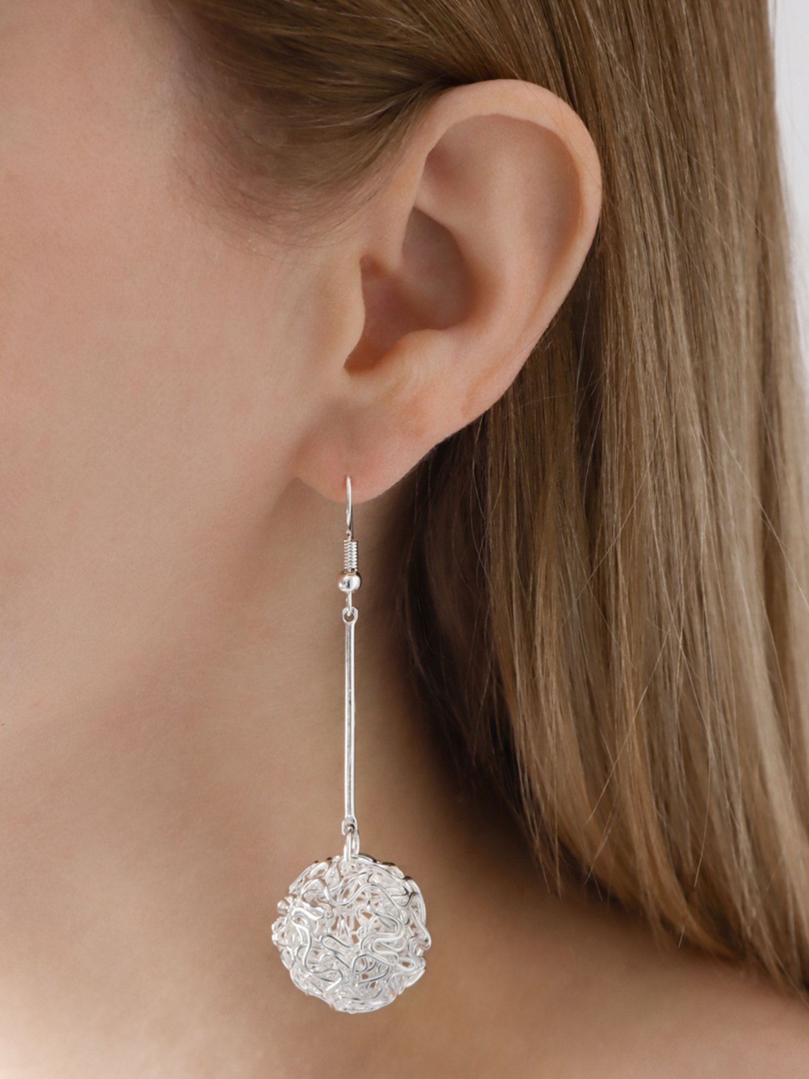 Серьги висячие "Шарик" переплетение, цвет серебро, 6.5 см, 2x6.5x1 см., QF, Китай