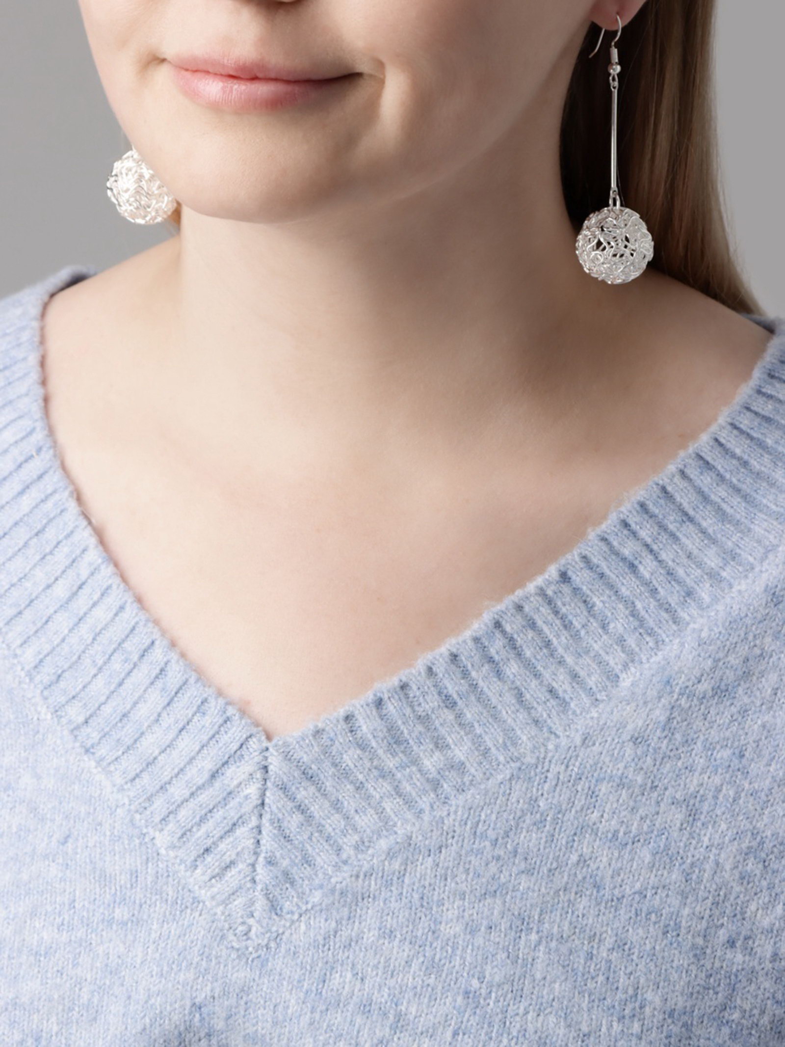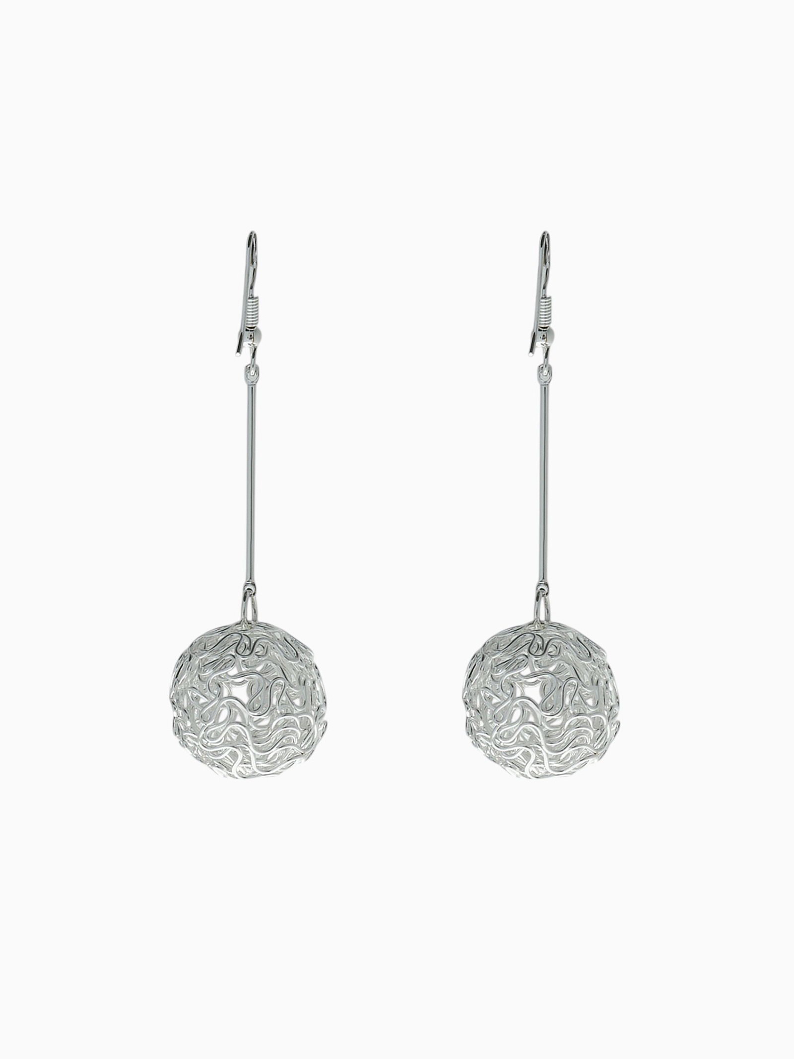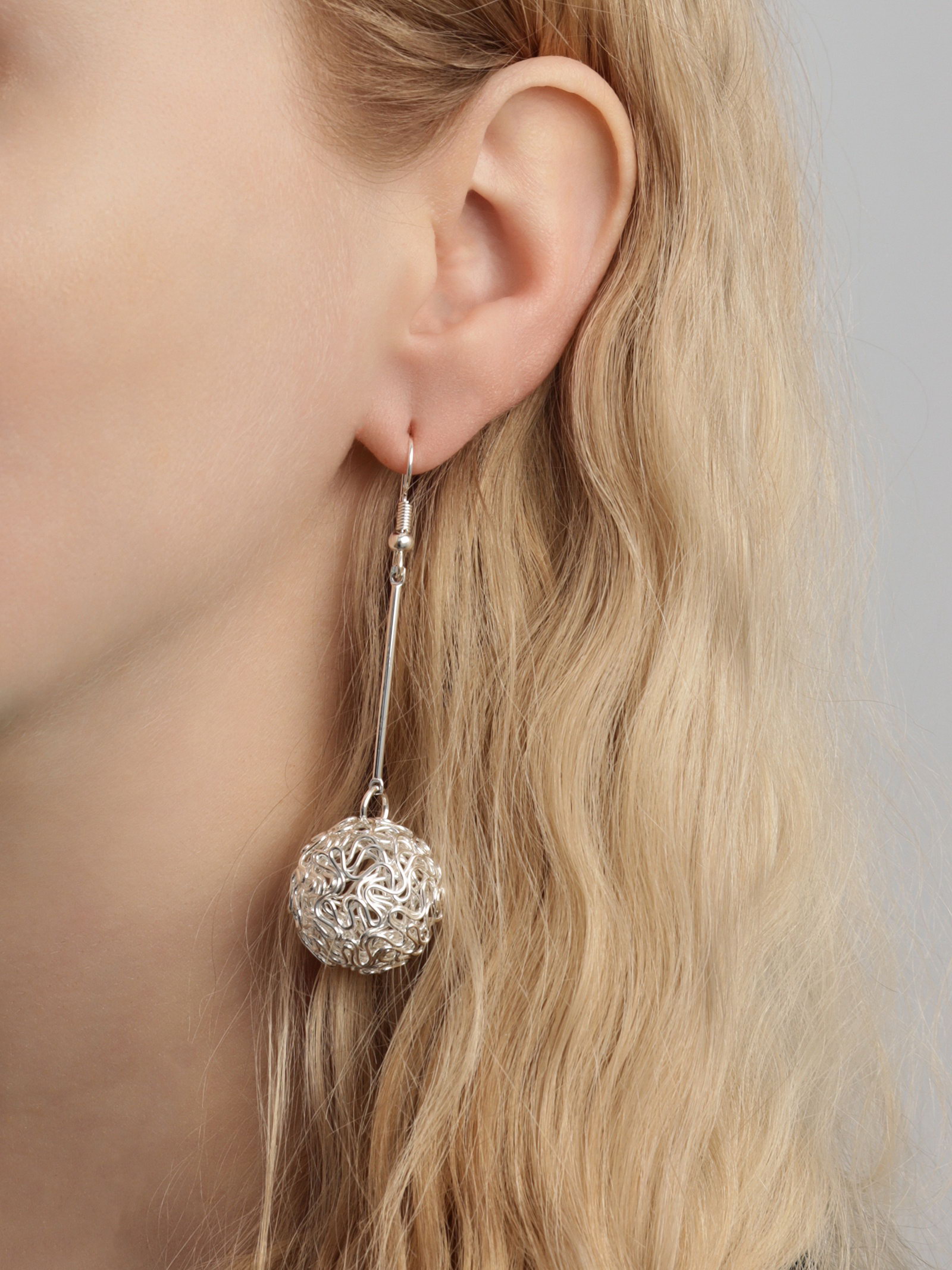 Серьги висячие "Шарик" переплетение, цвет серебро, 6.5 см, 2x6.5x1 см., QF, Китай