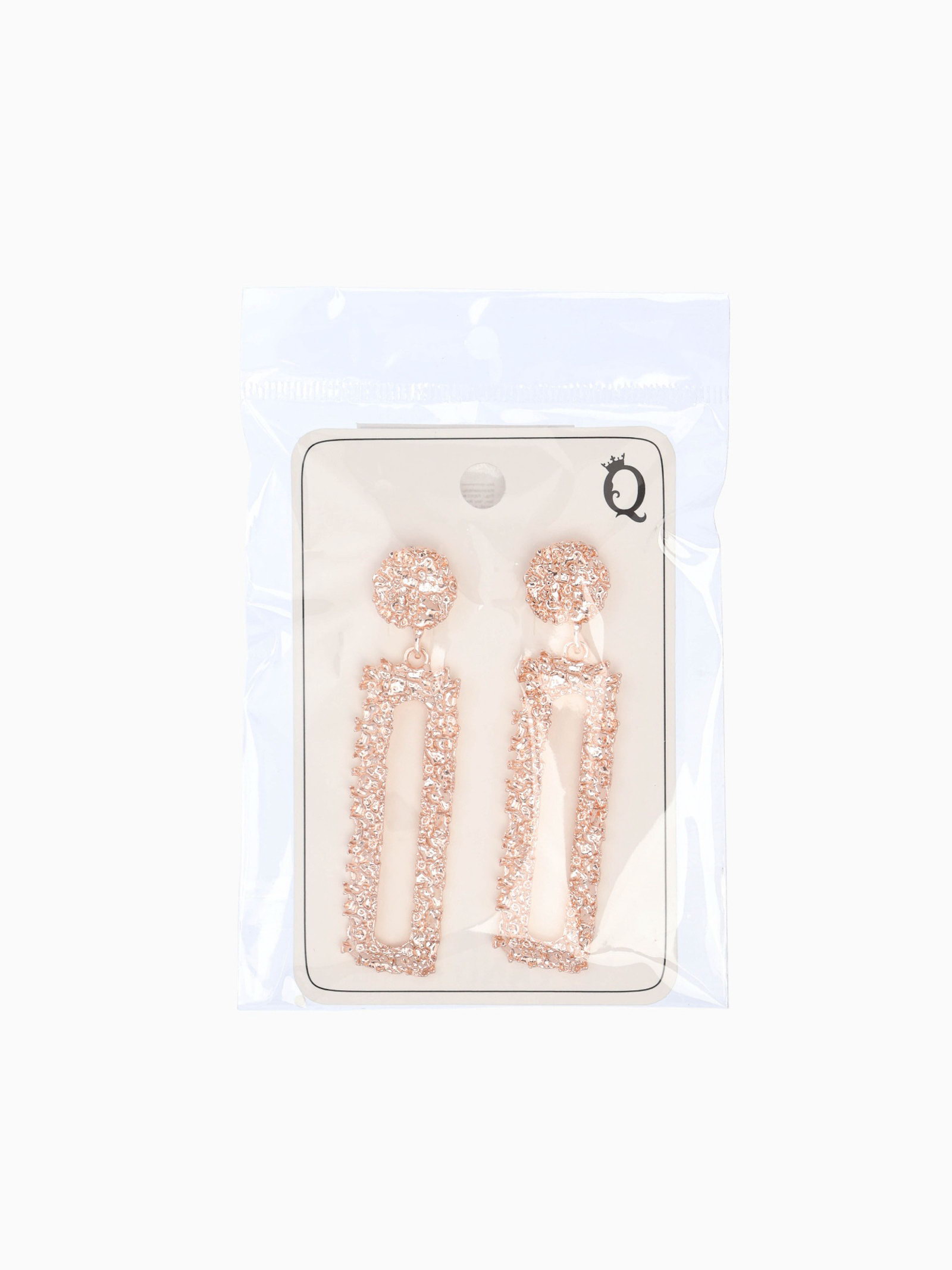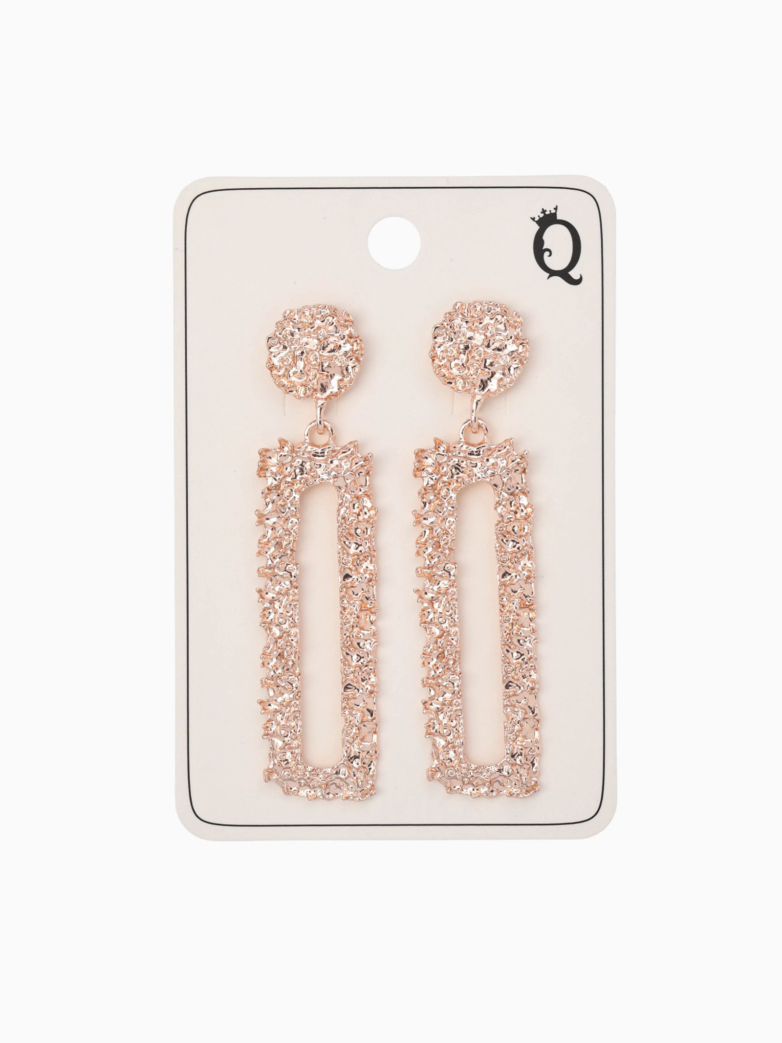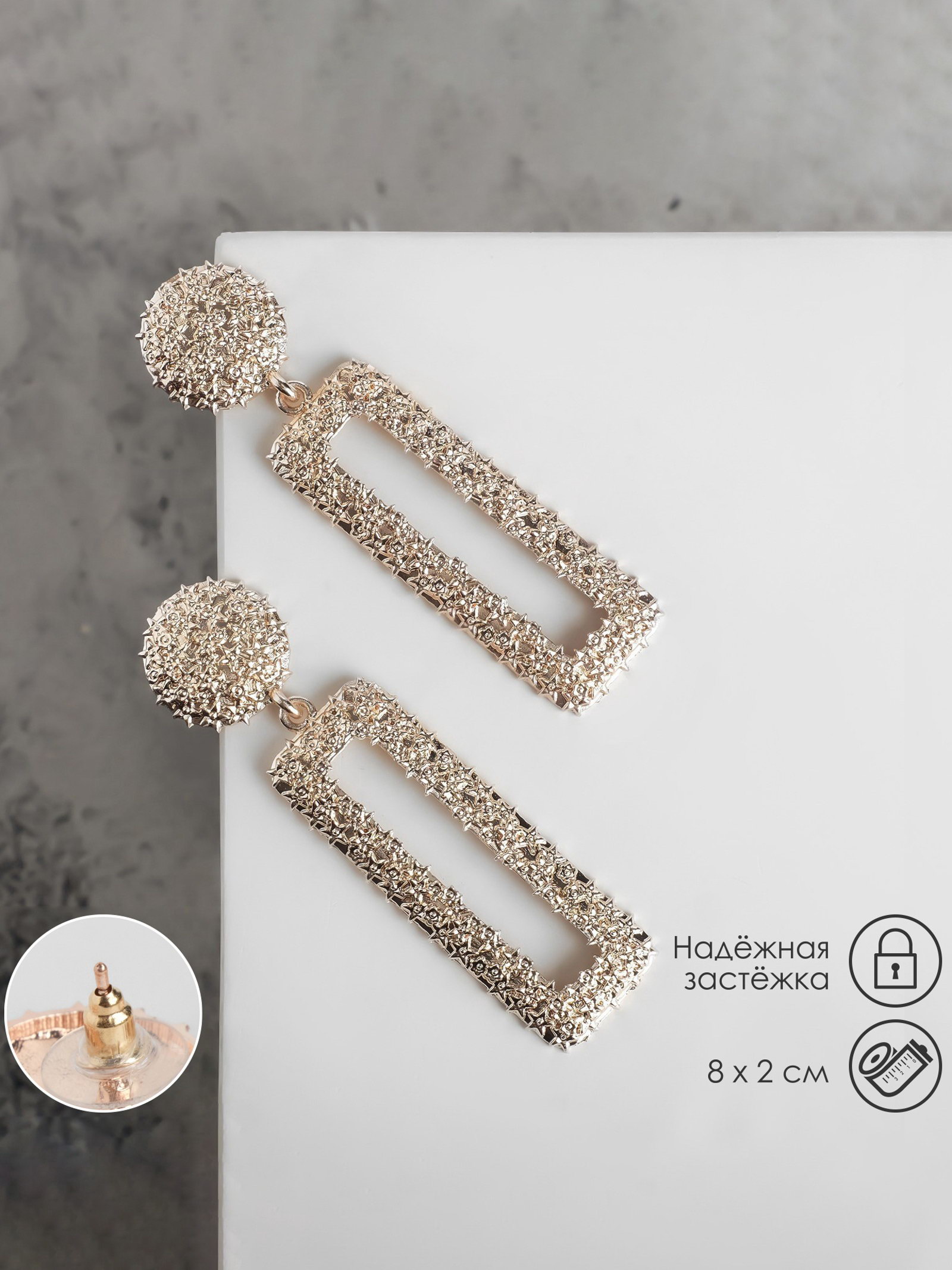 Серьги металл "Карибы" длинный прямоугольник, цвет розовое золото, 2x8x0.5 см., QF, Китай