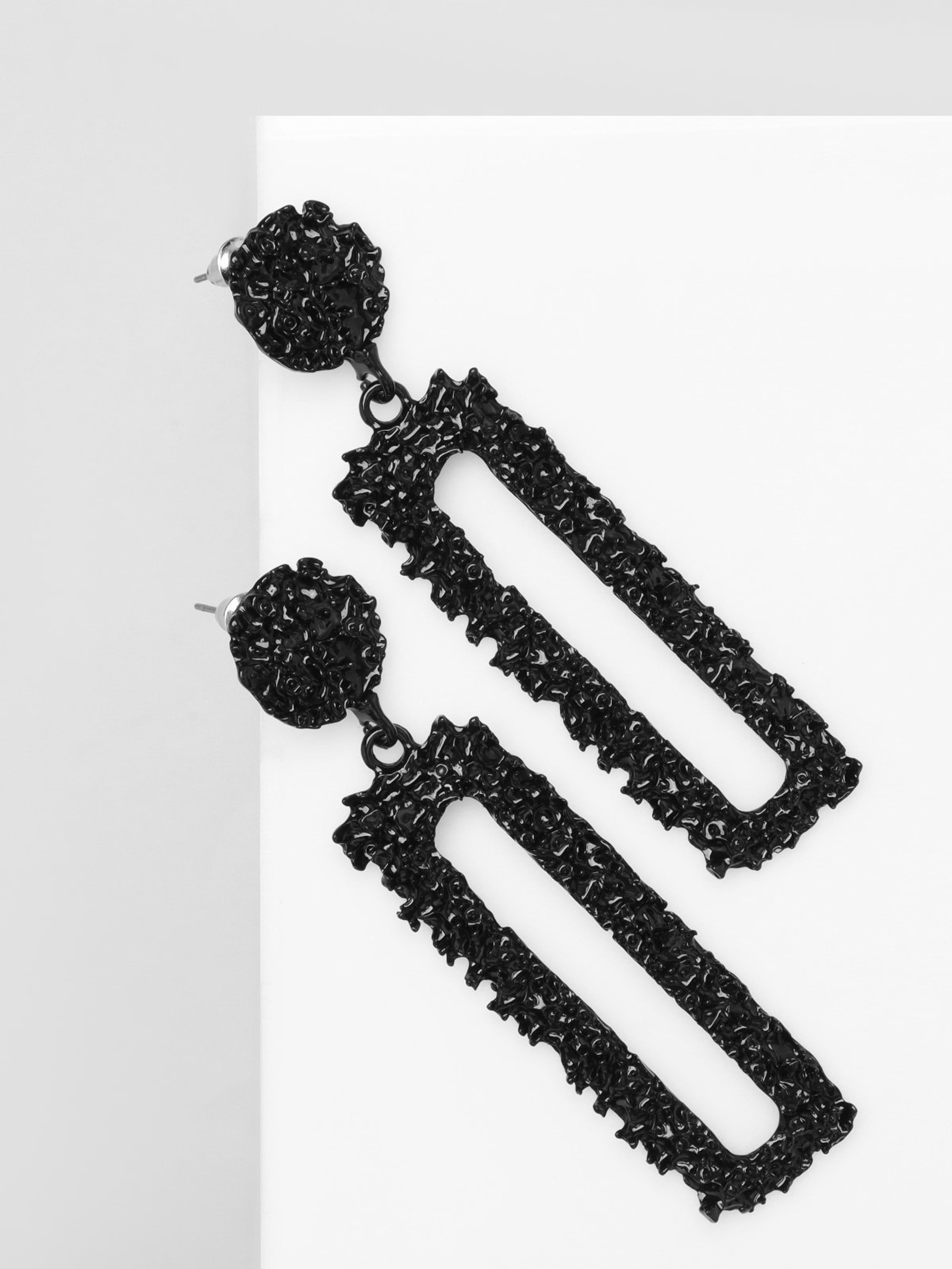 Серьги металл "Карибы" длинный прямоугольник, цвет чёрный, 2x8x0.5 см., QF, Китай