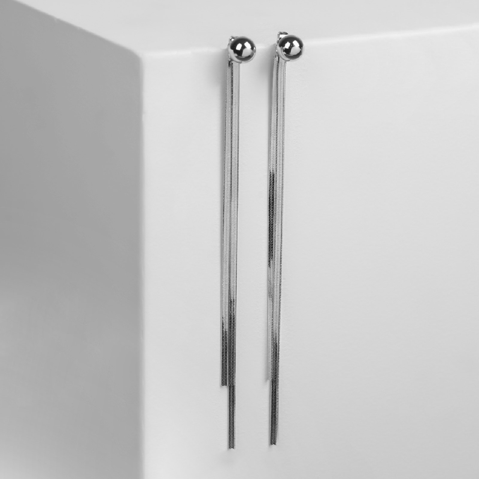 Серьги висячие "Изящество" плоские нити, цвет серебро, 15 см, 0.8x15x1 см., QF, Китай