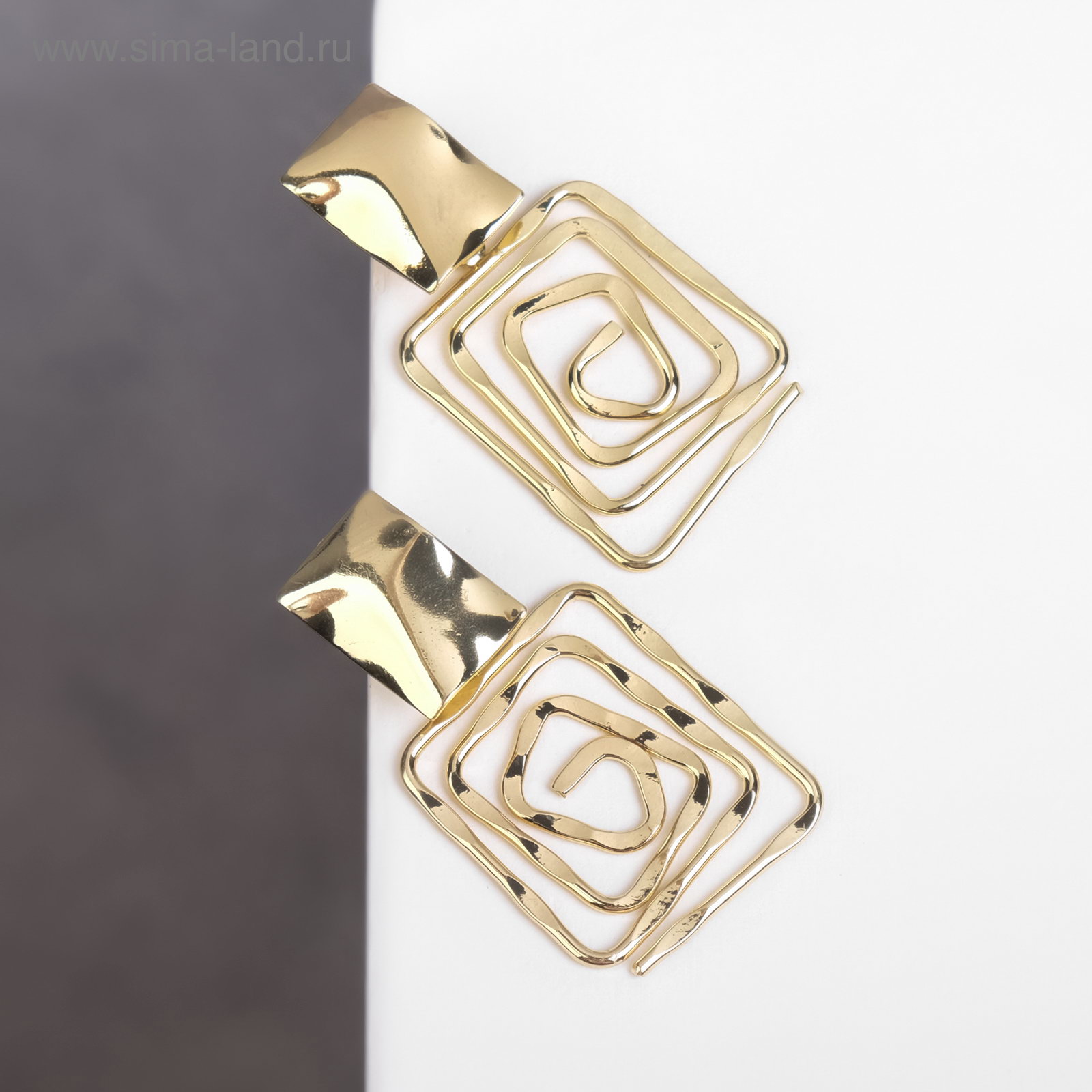 Серьги металл "Врата" два квадрата, цвет золото, 2.6x4.9x1 см., QF, Китай