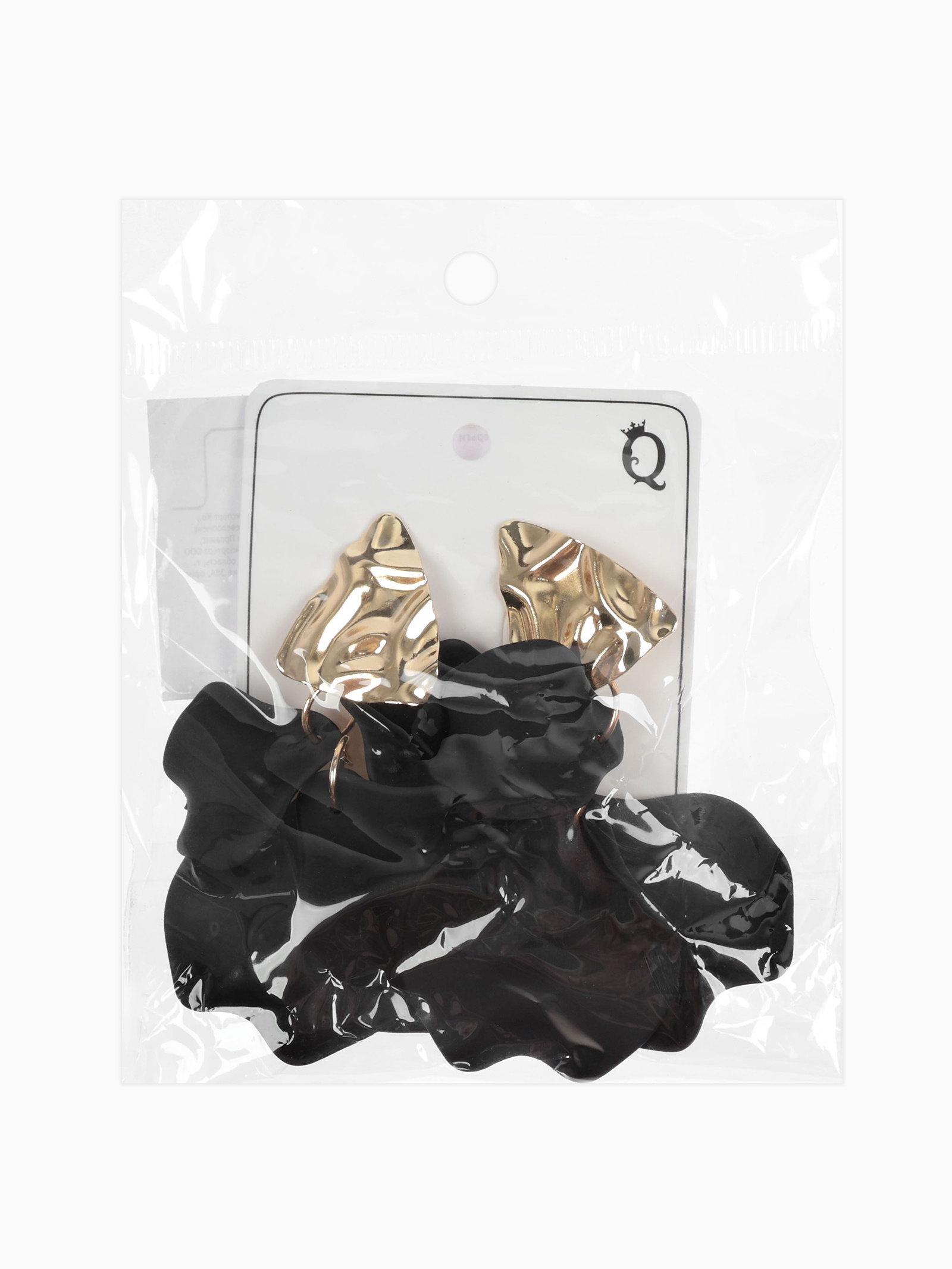Серьги ассорти "Ветер" мятые треугольники, цвет чёрно-золотой, 4.5x7.5x3 см., QF, Китай
