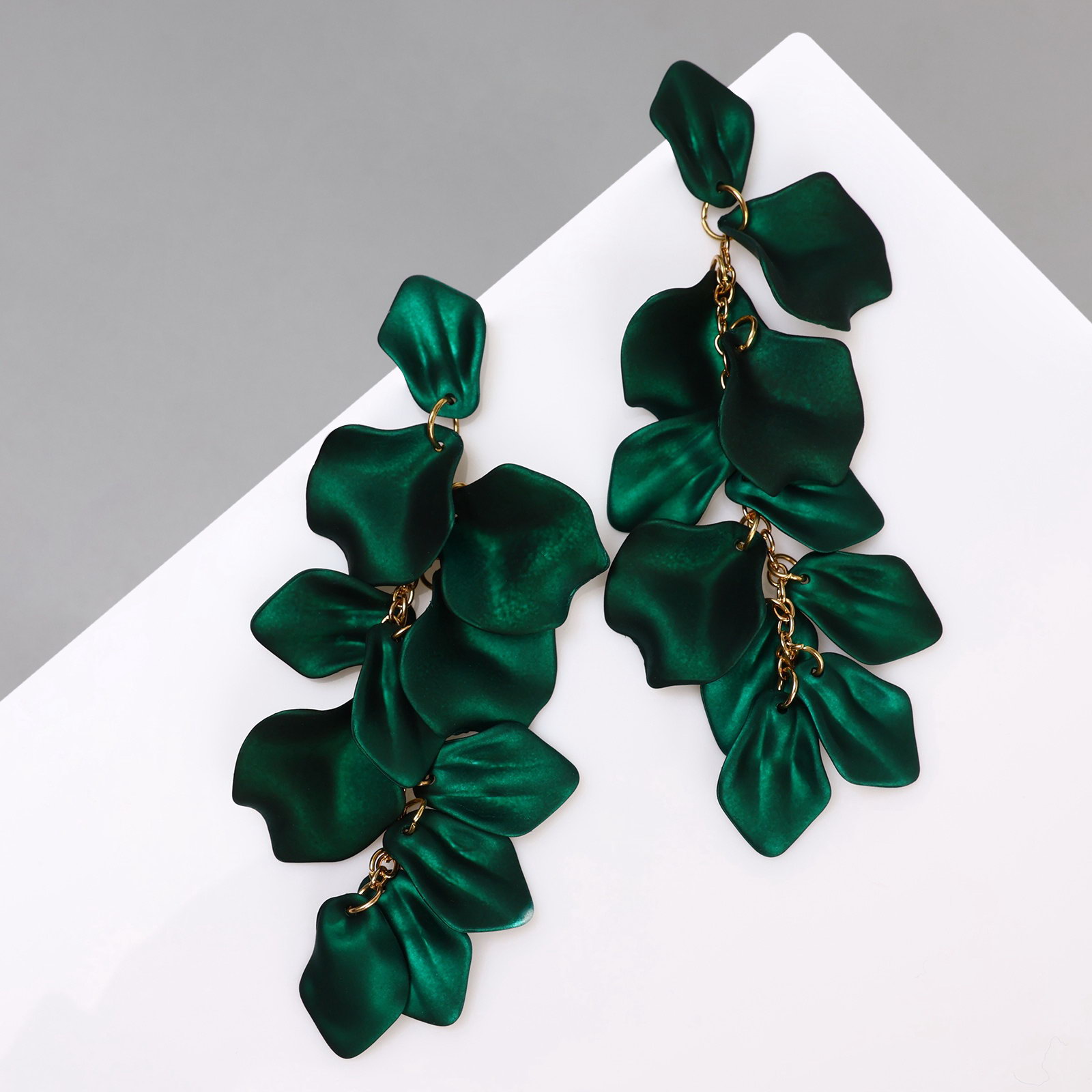 Серьги ассорти "Ветер" грация, цвет зелёный в золоте, 4x11x1 см., QF, Китай