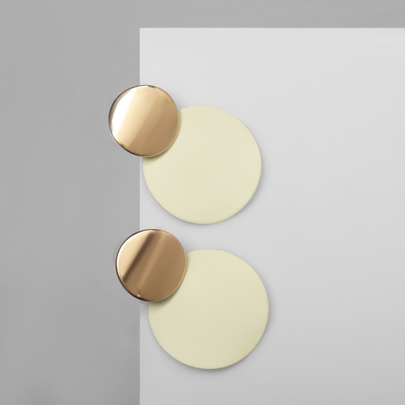 Серьги металл "Леди" два круга, цвет молочный в золоте, 3x4.5x0.7 см., QF, Китай