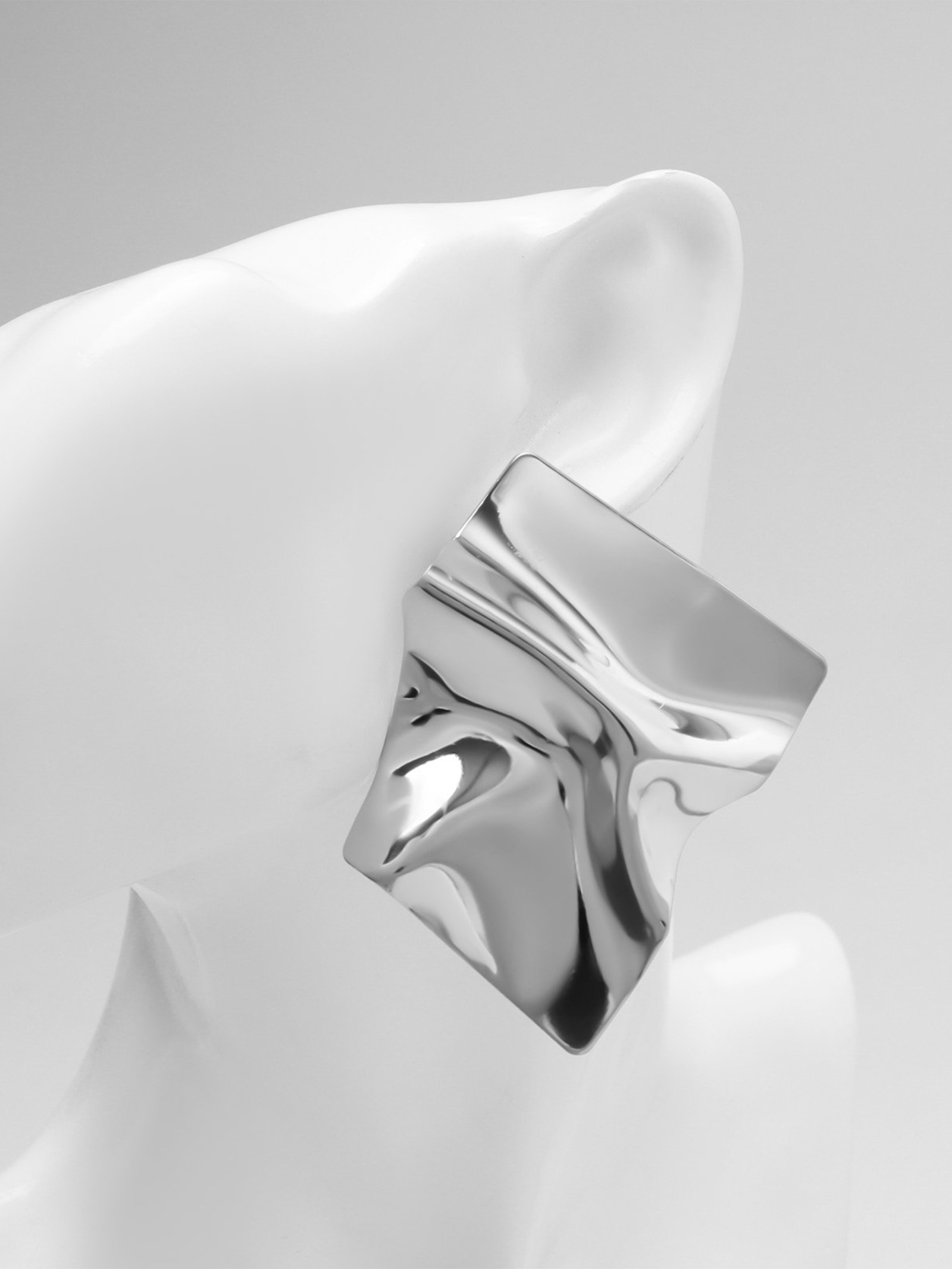 Серьги металл "Атмосфера" ромб мятый, цвет серебро, 4.5x5.5x0.5 см., QF, Китай