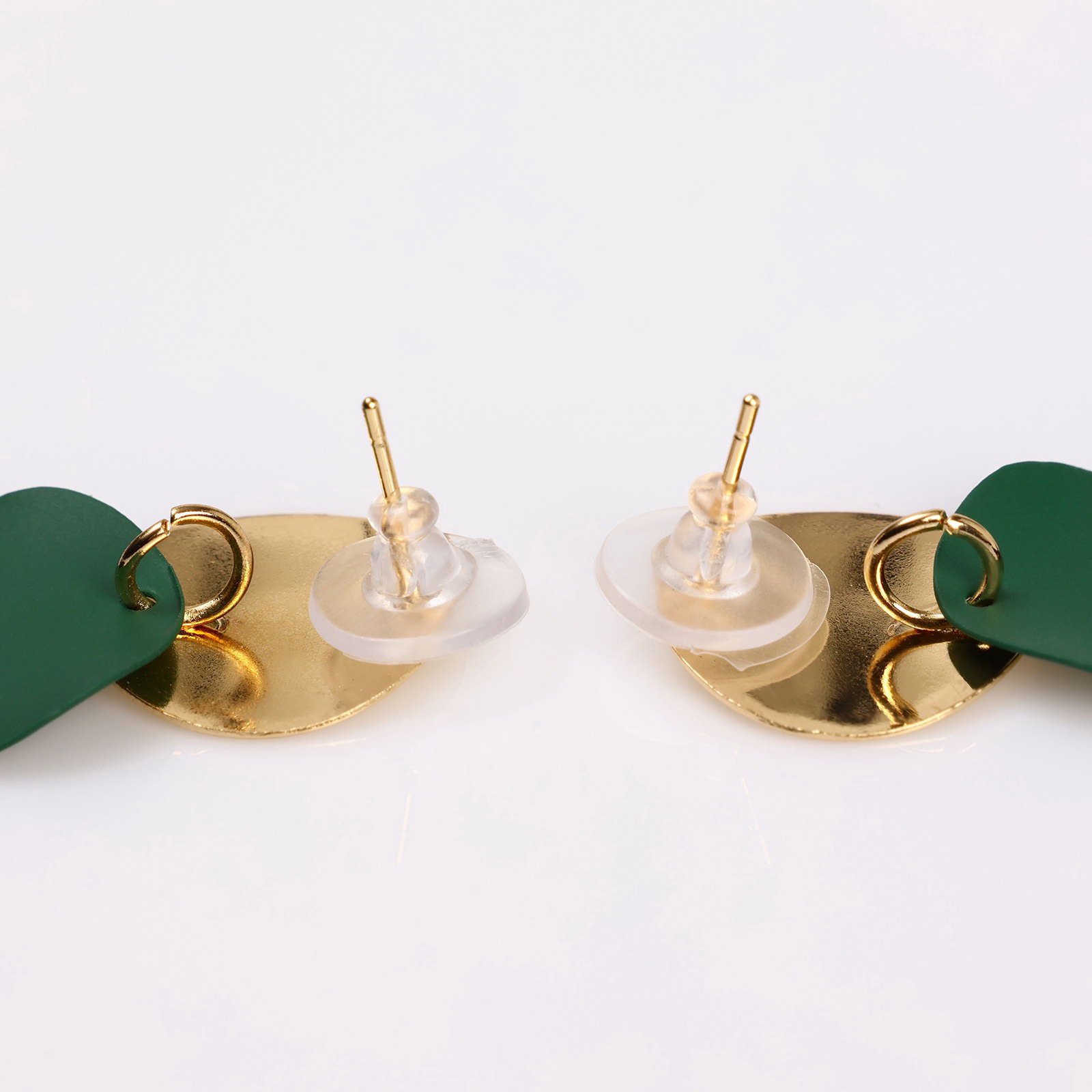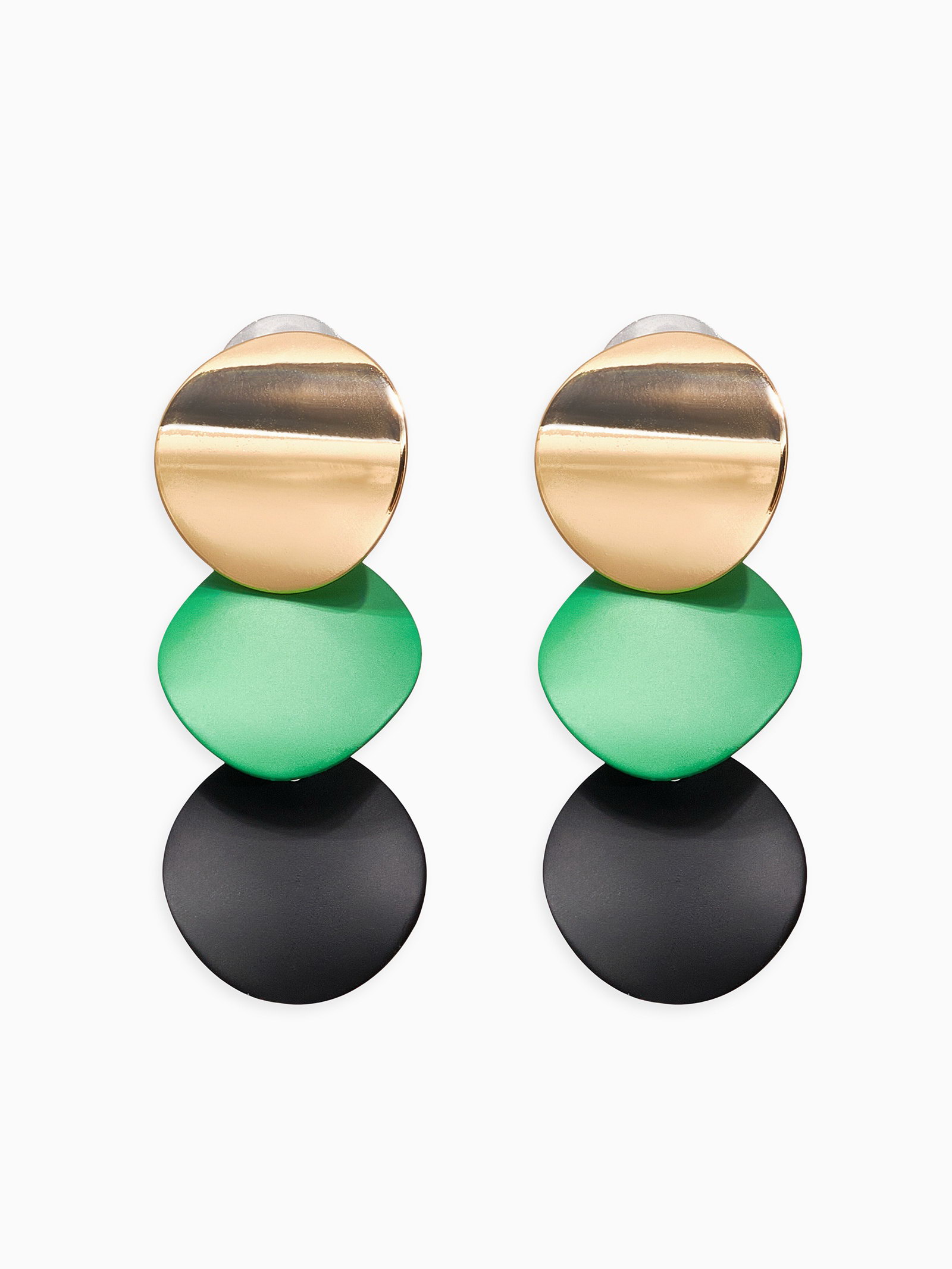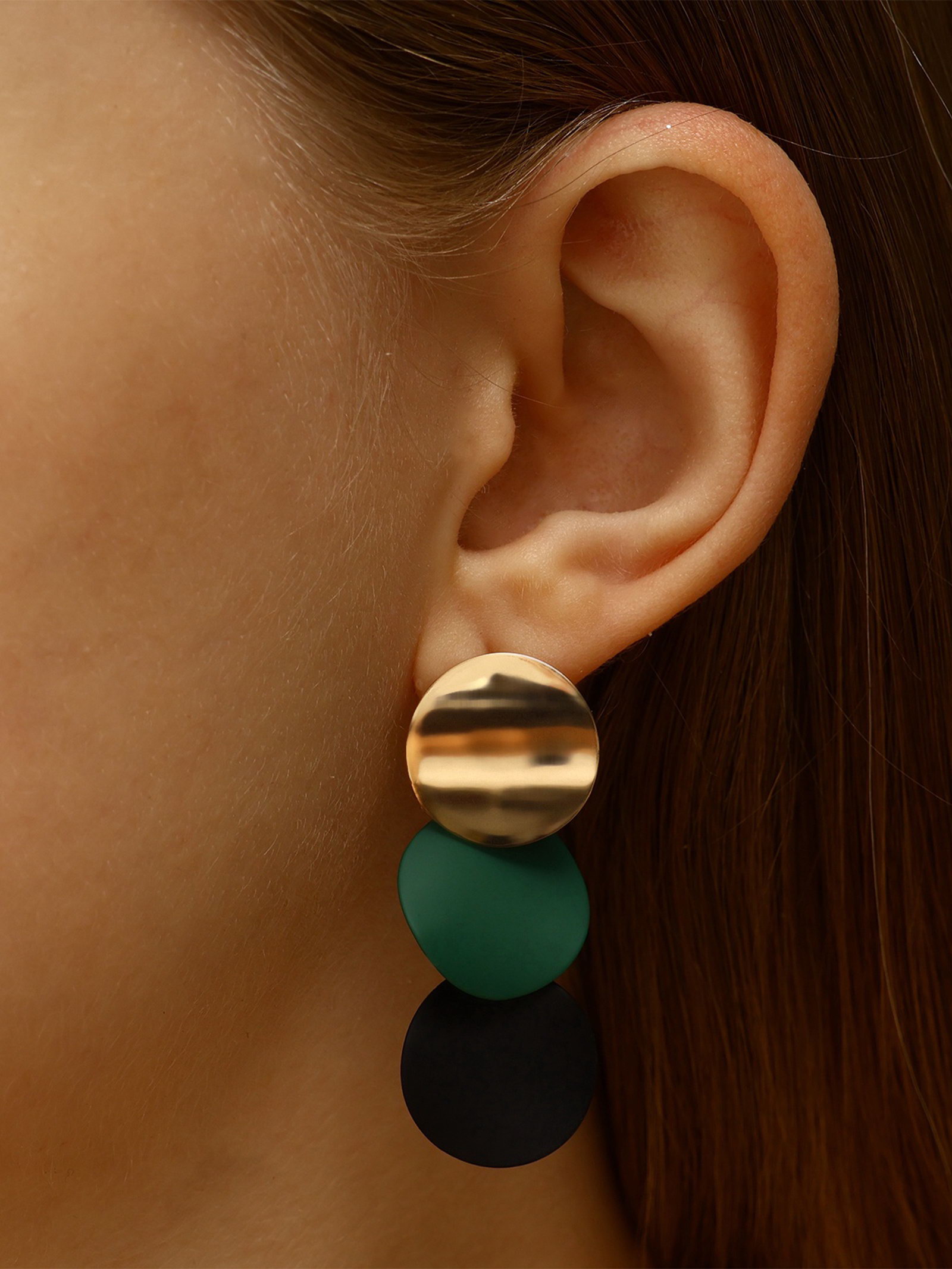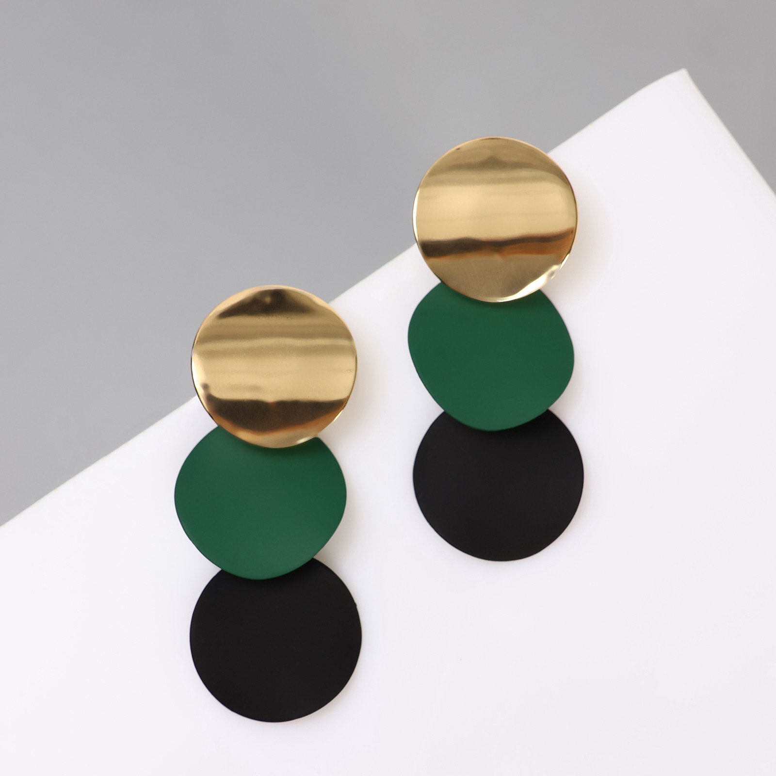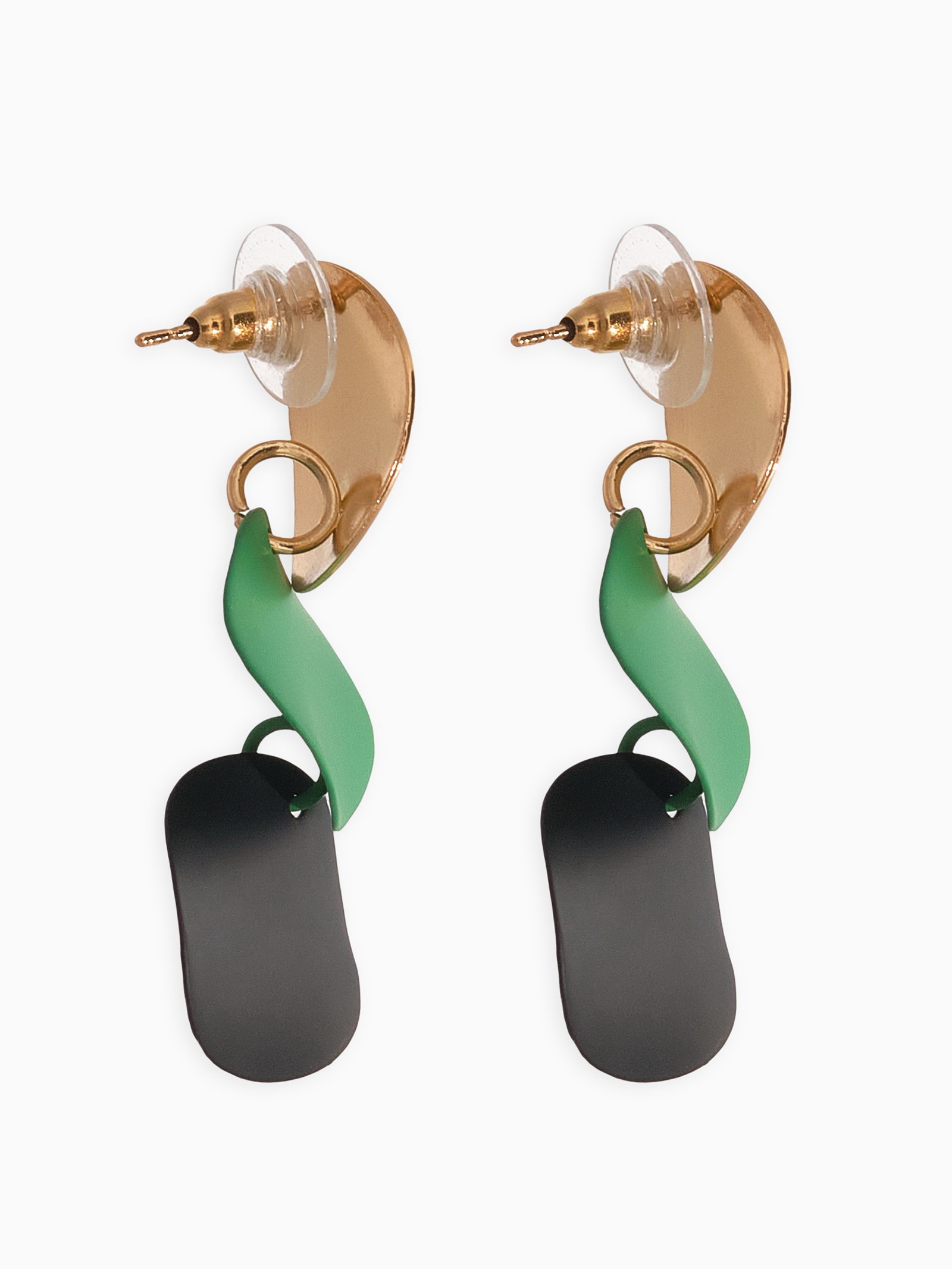 Серьги металл "Азелия" выгнутые круги, цвет чёрно-зелёный в золоте, 1.7x4.6x0.7 см., QF, Китай