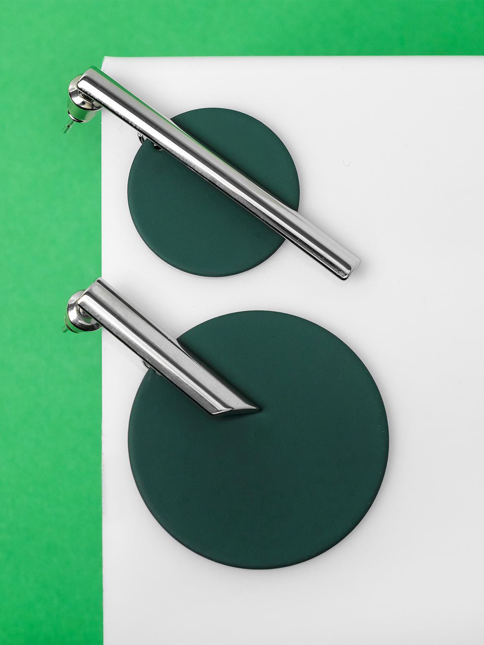 Серьги ассорти "Арт" линии, цвет зелёный в серебре, 3x4x2 см., QF, Китай