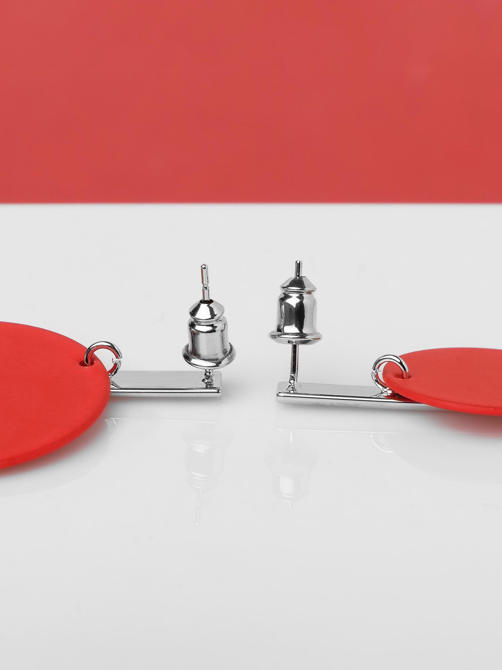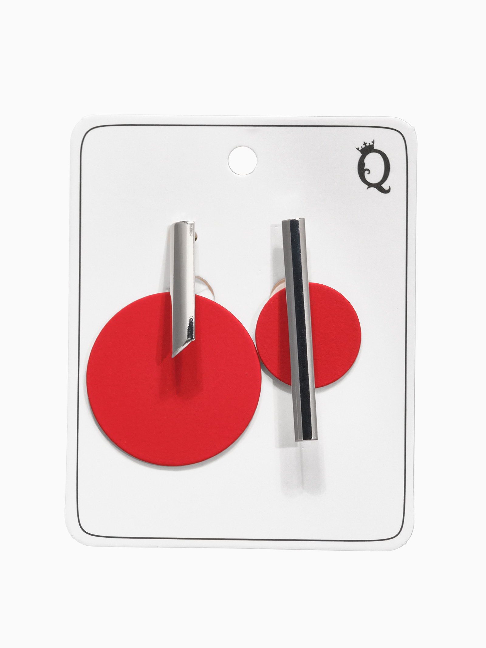 Серьги ассорти "Арт" линии, цвет красный в серебре, 3x4x2 см., QF, Китай