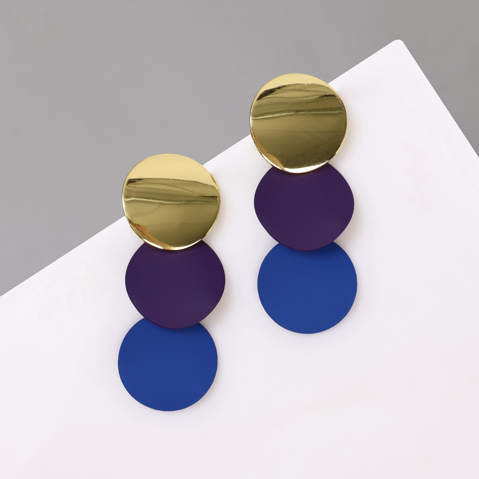 Серьги металл "Азелия" выгнутые круги, цвет фиолетово-синий в золоте, 1.7x4.6x0.7 см., QF, Китай
