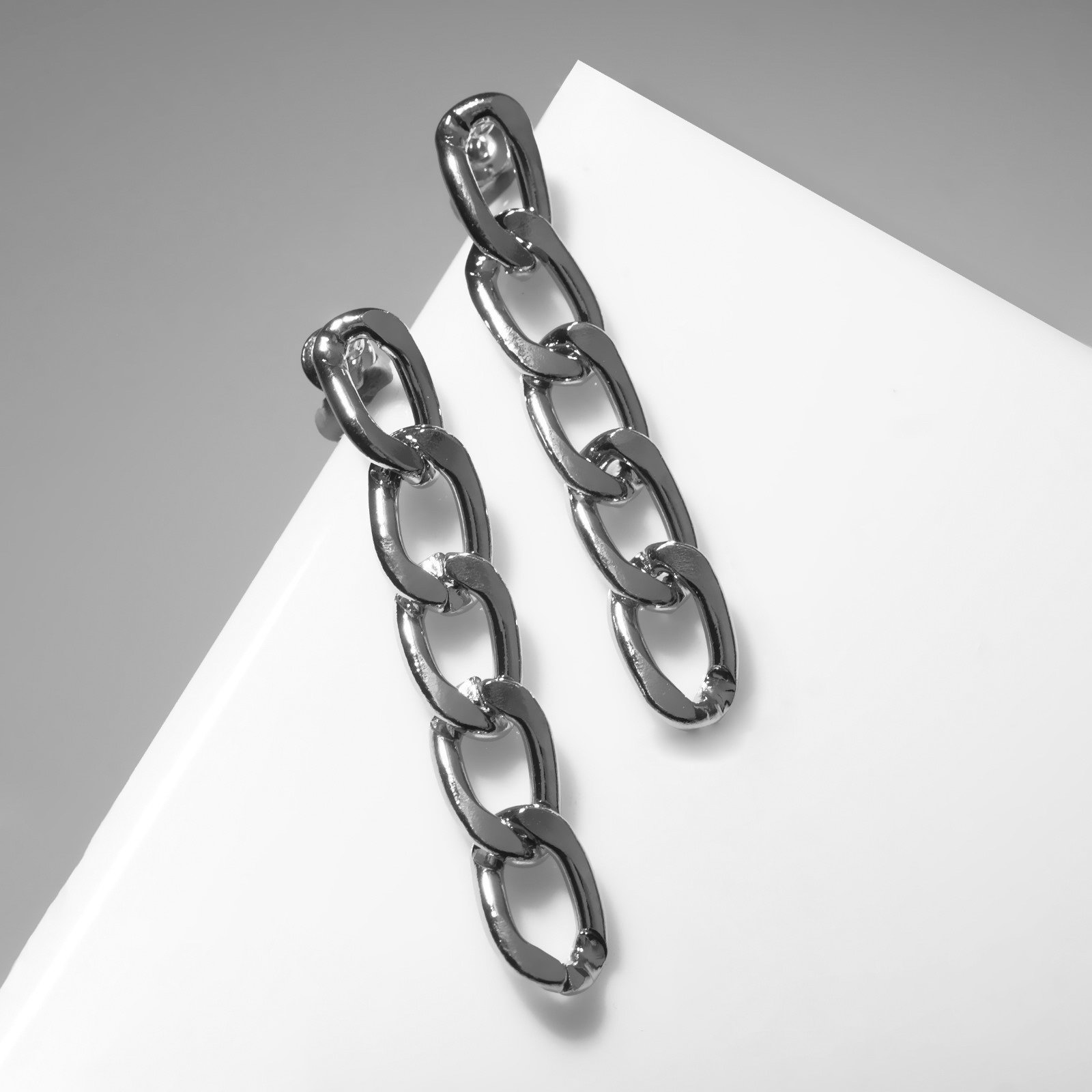 Серьги металл "Цепи" полукруг, цвет серебро, 1.3x7.6x0.3 см., QF, Китай