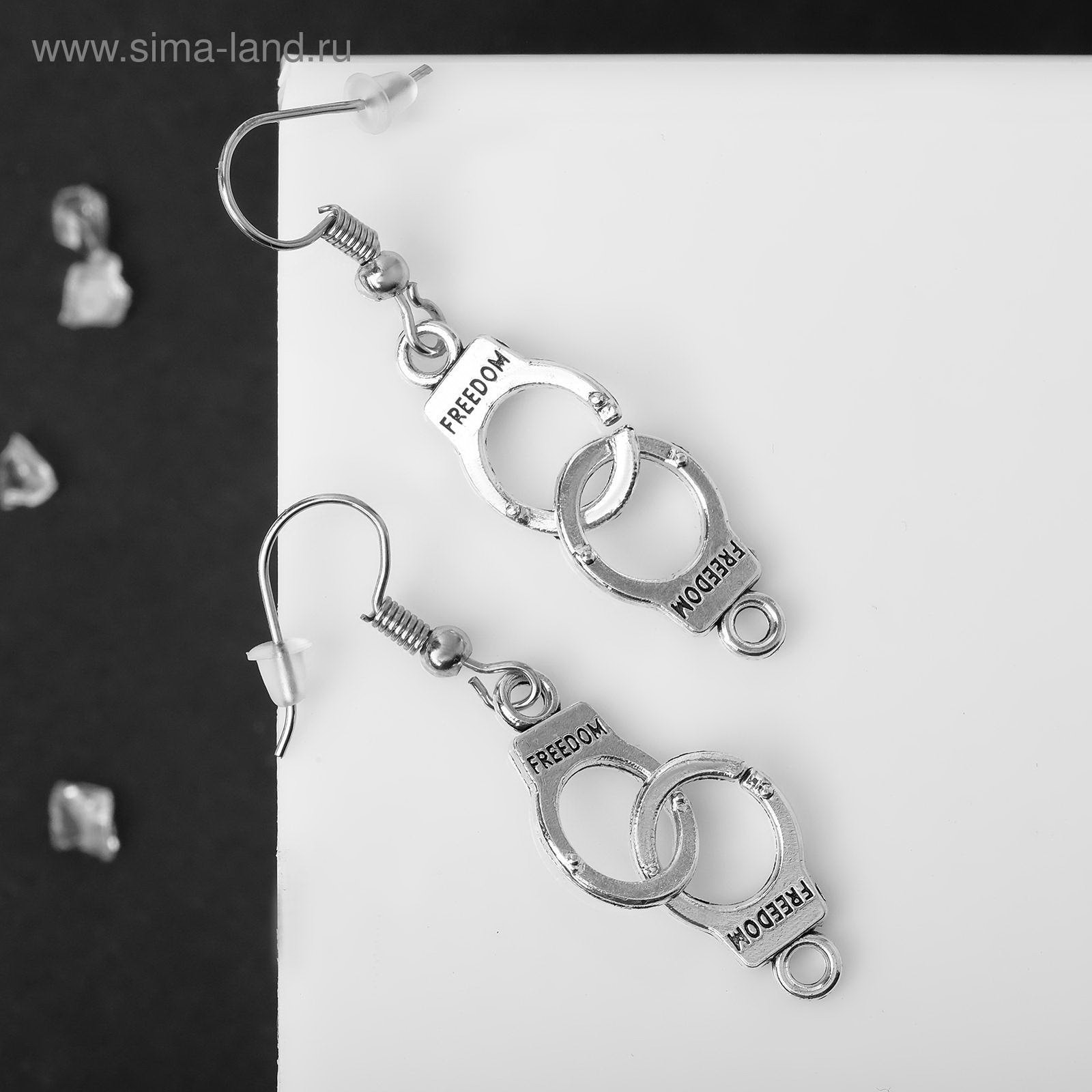 Серьги металл "Наручники", цвет чернёное серебро, 1.5x6x0.2 см., QF, Китай