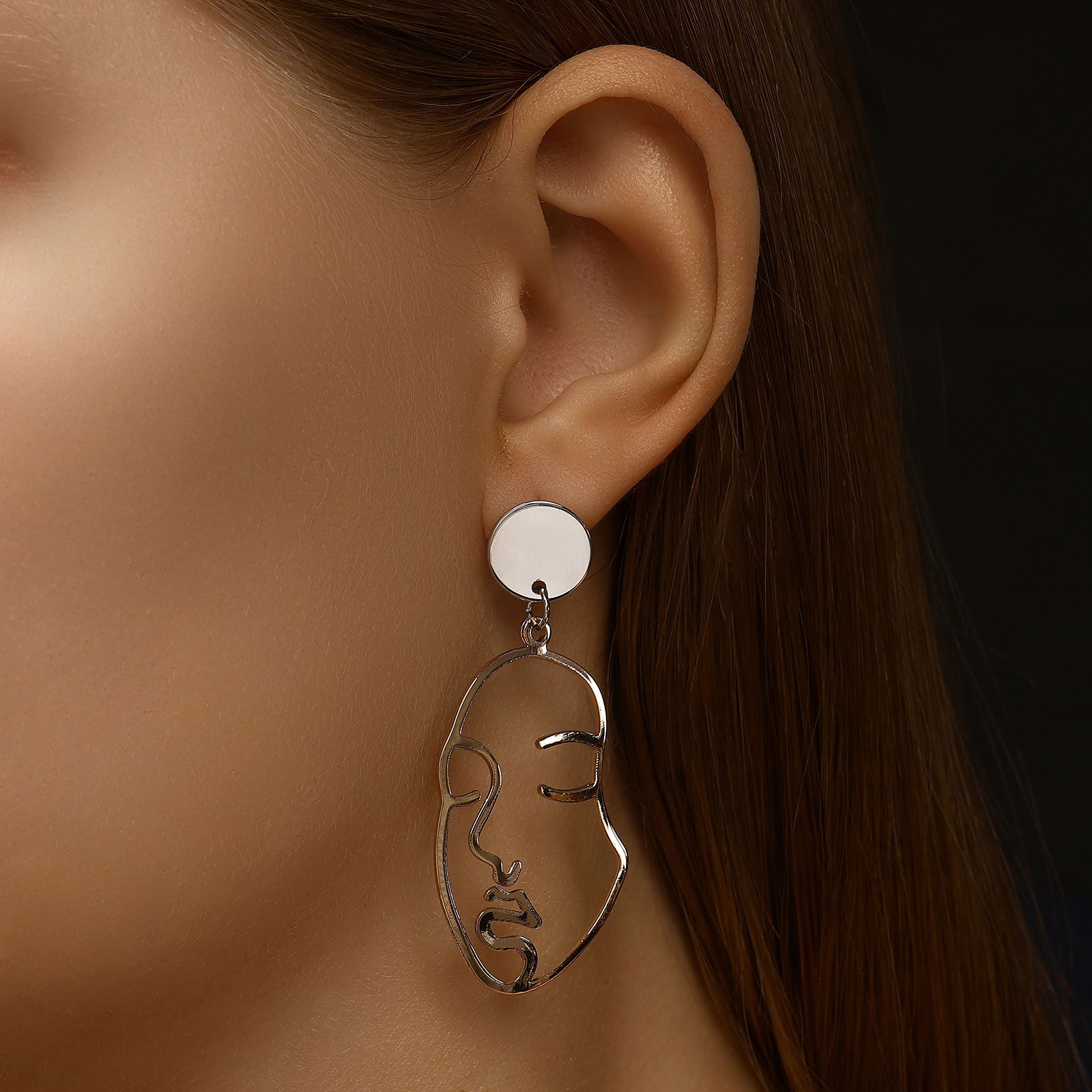 Серьги металл "Лица" раздвоение, цвет серебряно-золотой, 2.8x6.2x1 см., QF, Китай