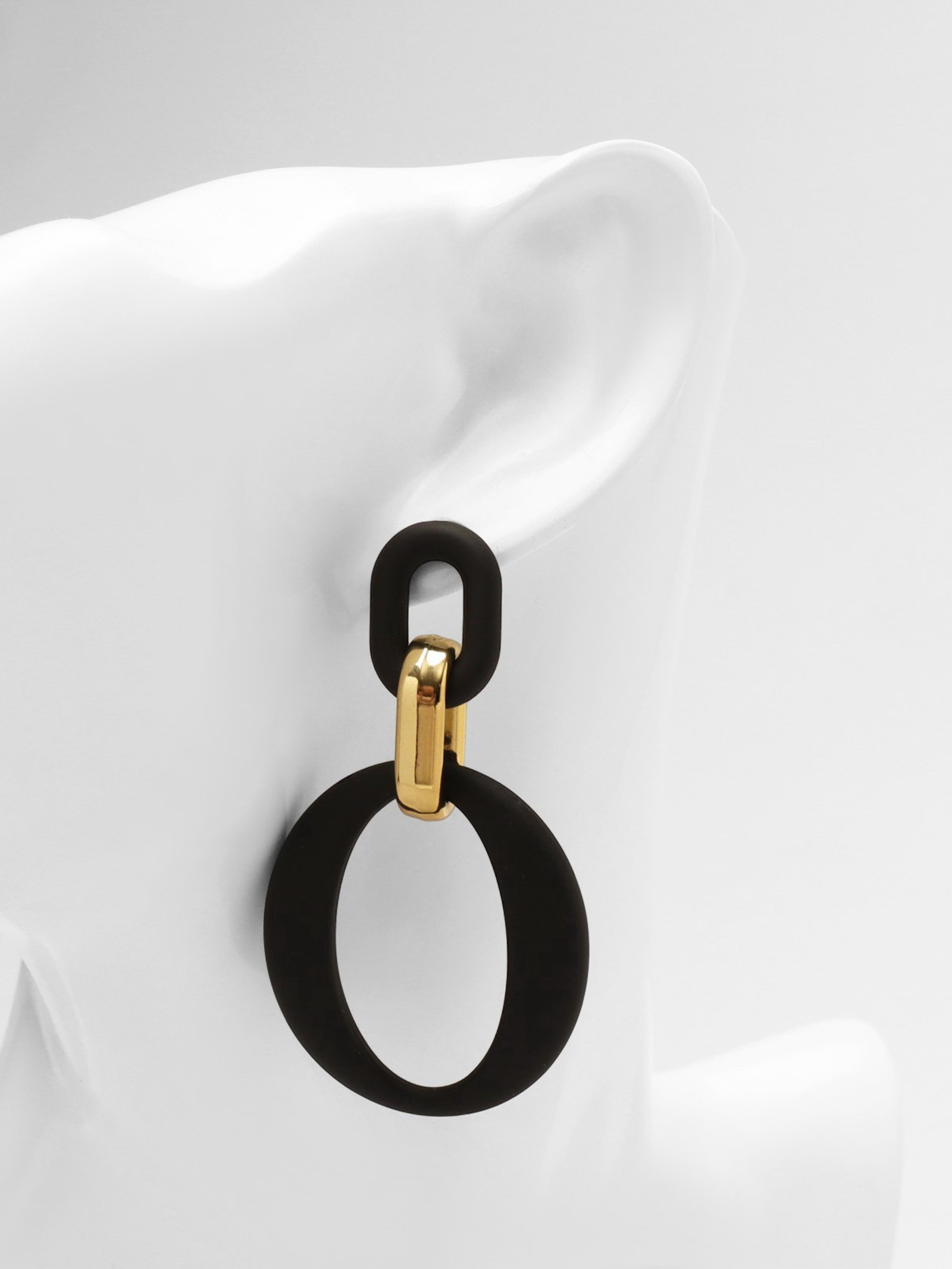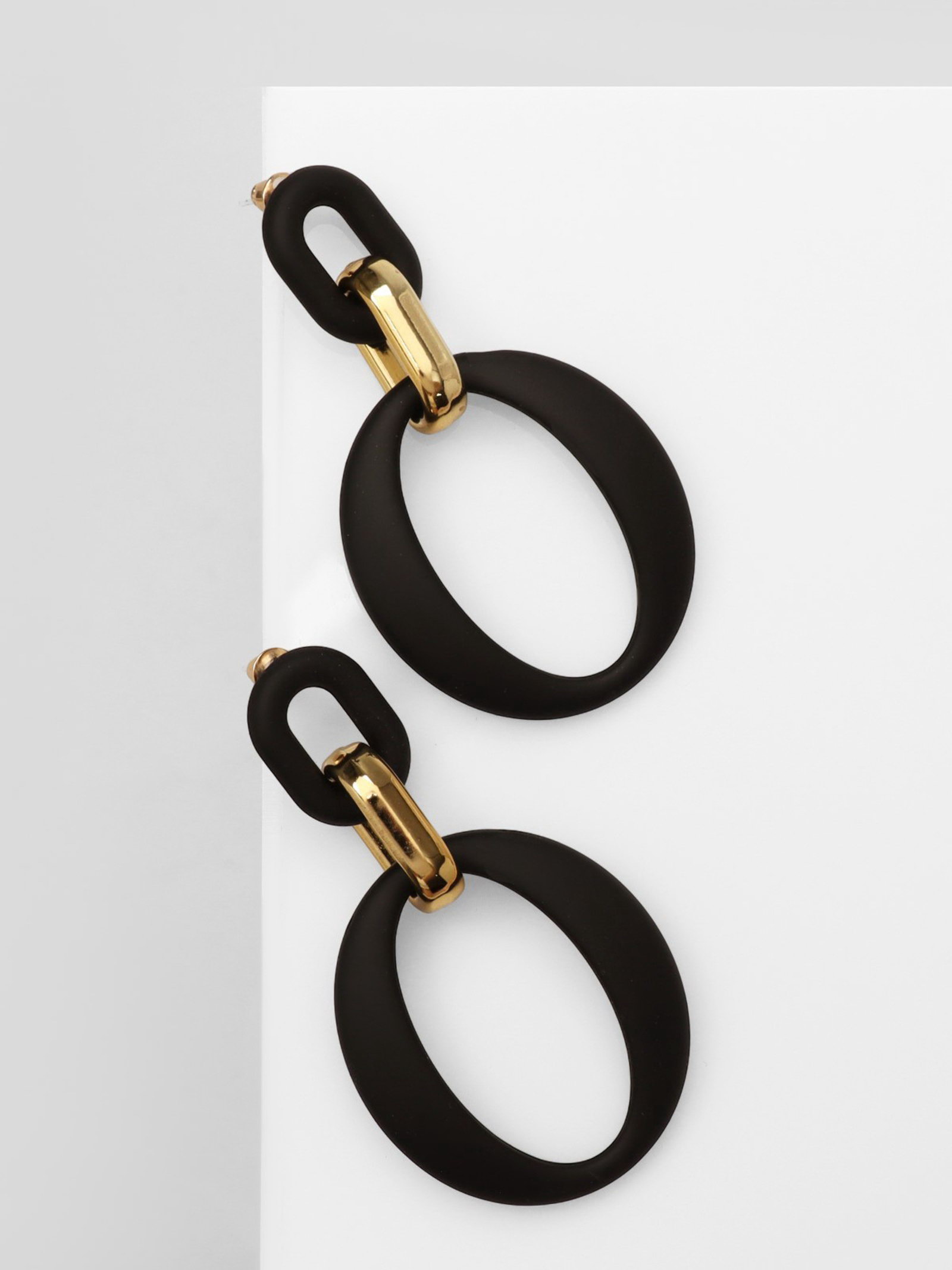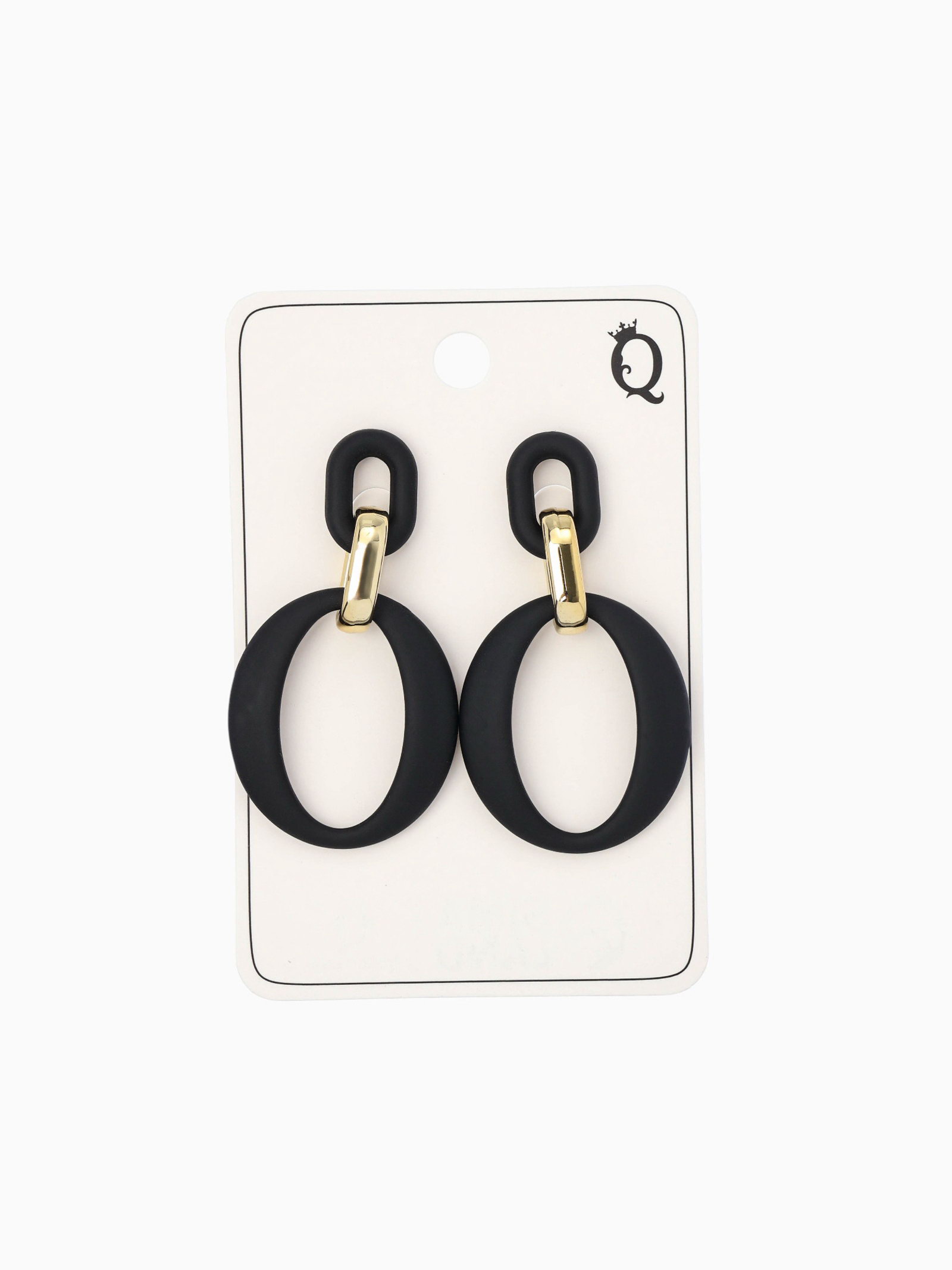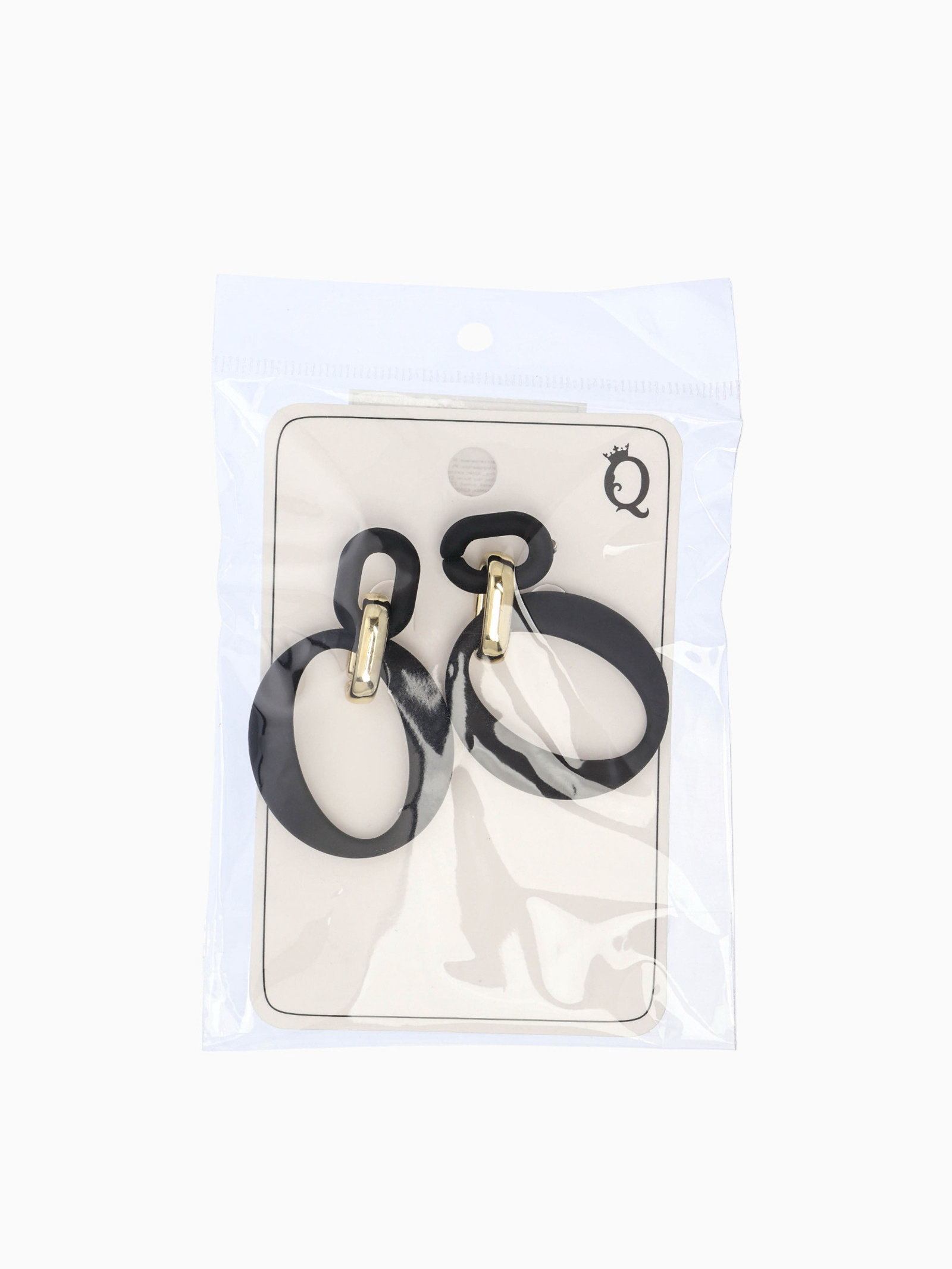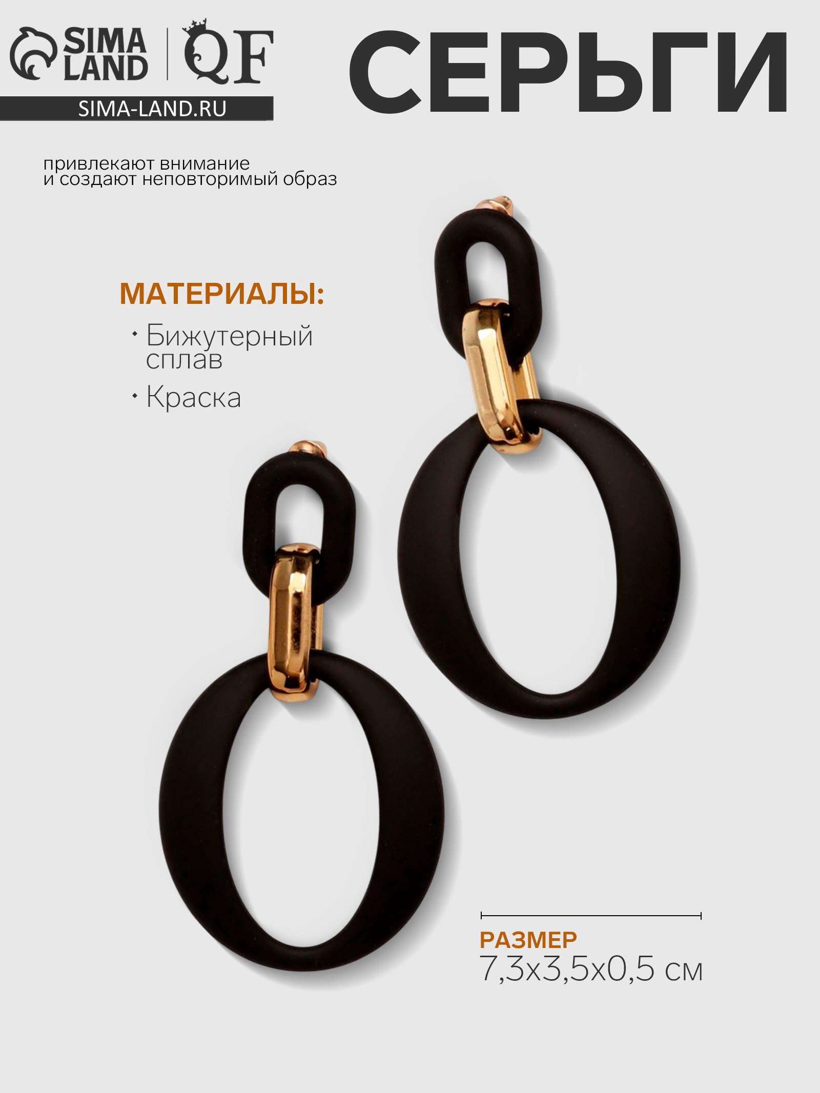 Серьги металл "Цепь" кольцо и овал, 3 звена, цвет золотисто-чёрный, 3.5x7.3x0.5 см., QF, Китай