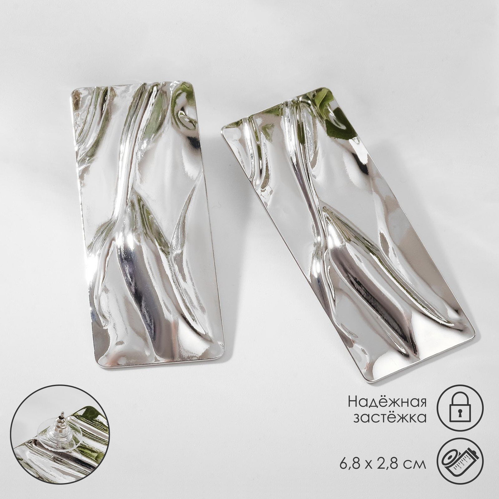 Серьги металл "Атмосфера" прямоугольник, цвет серебро, 2.8x6.8x0.2 см., QF, Китай