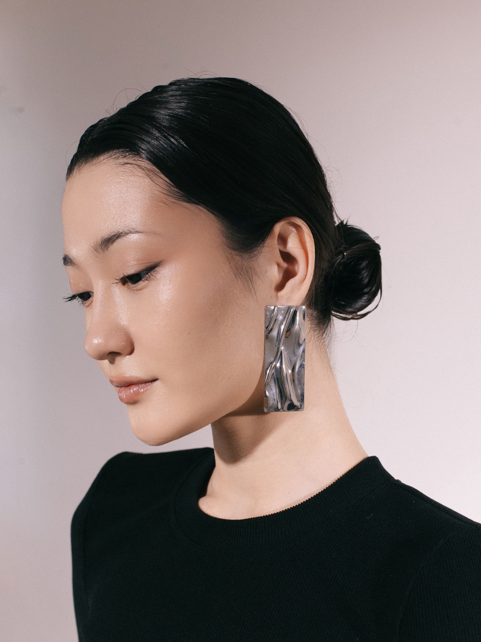 Элегантность в деталях Эти серьги добавляют в образ чёткие линии и серебристое сияние, создавая ощущение лёгкости и современности. Они легко сочетаются с разными стилями одежды, подчёркивая уверенность и вкус. | ||