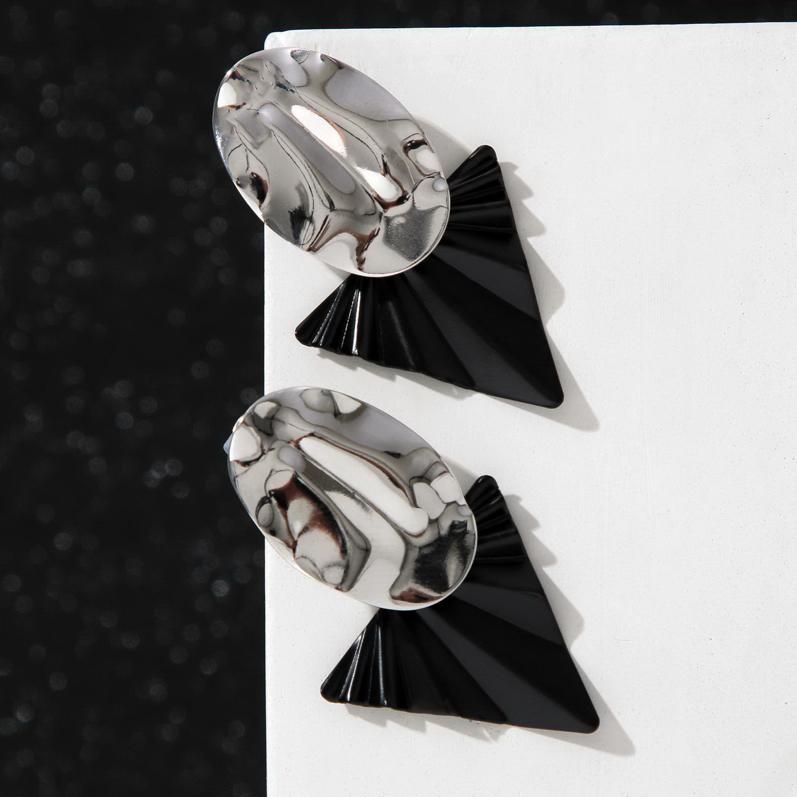 Серьги металл "Тренд" овал и треугольник, цвет чёрный в глянцевом серебре, 2.8x5x0.8 см., QF, Китай