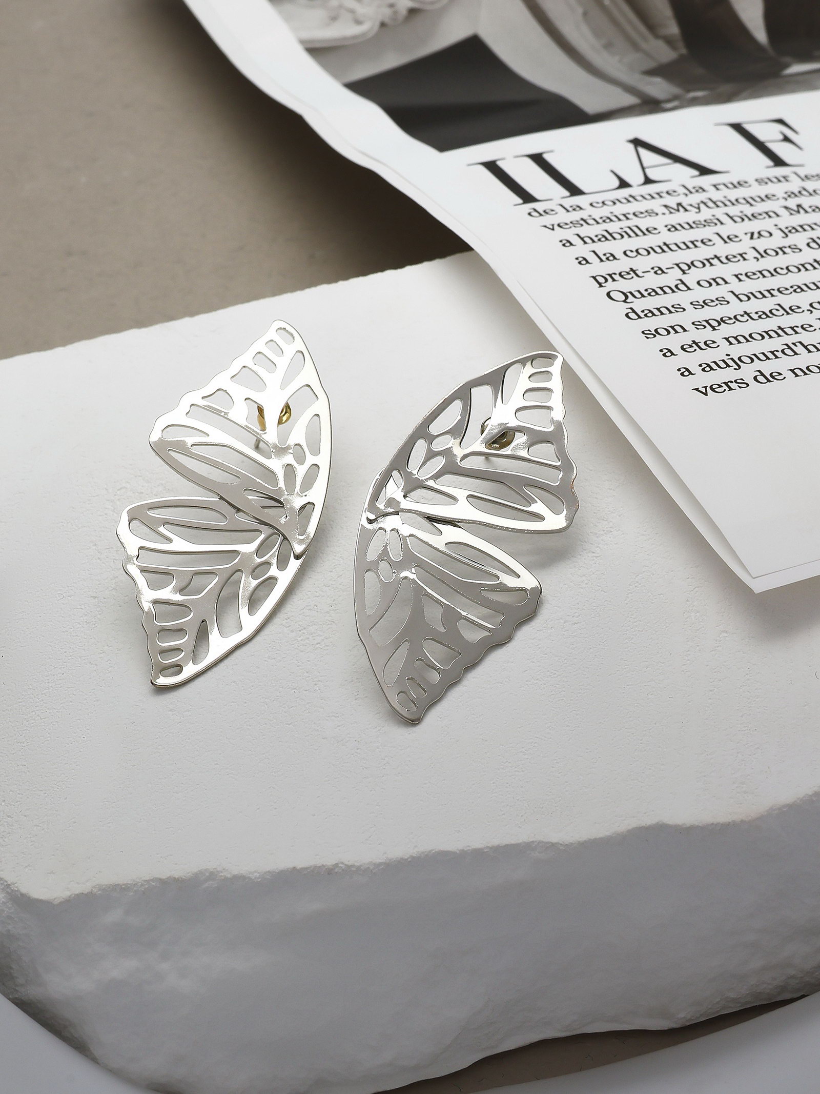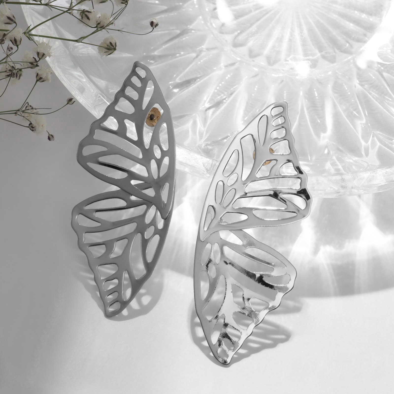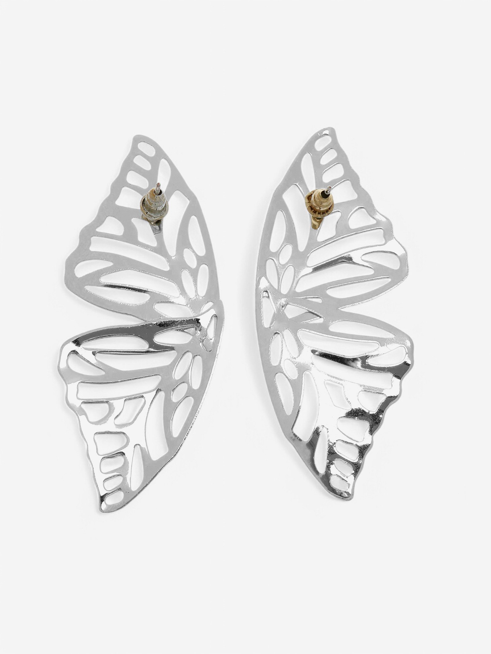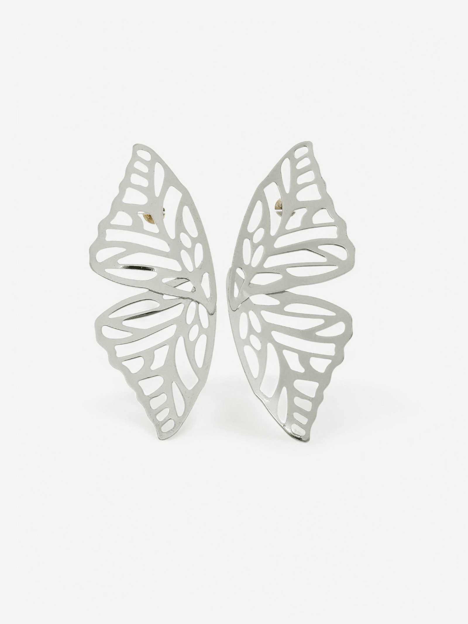 Серьги металл "Бабочки", цвет серебро, 4.5x6.3x0.3 см., QF, Китай