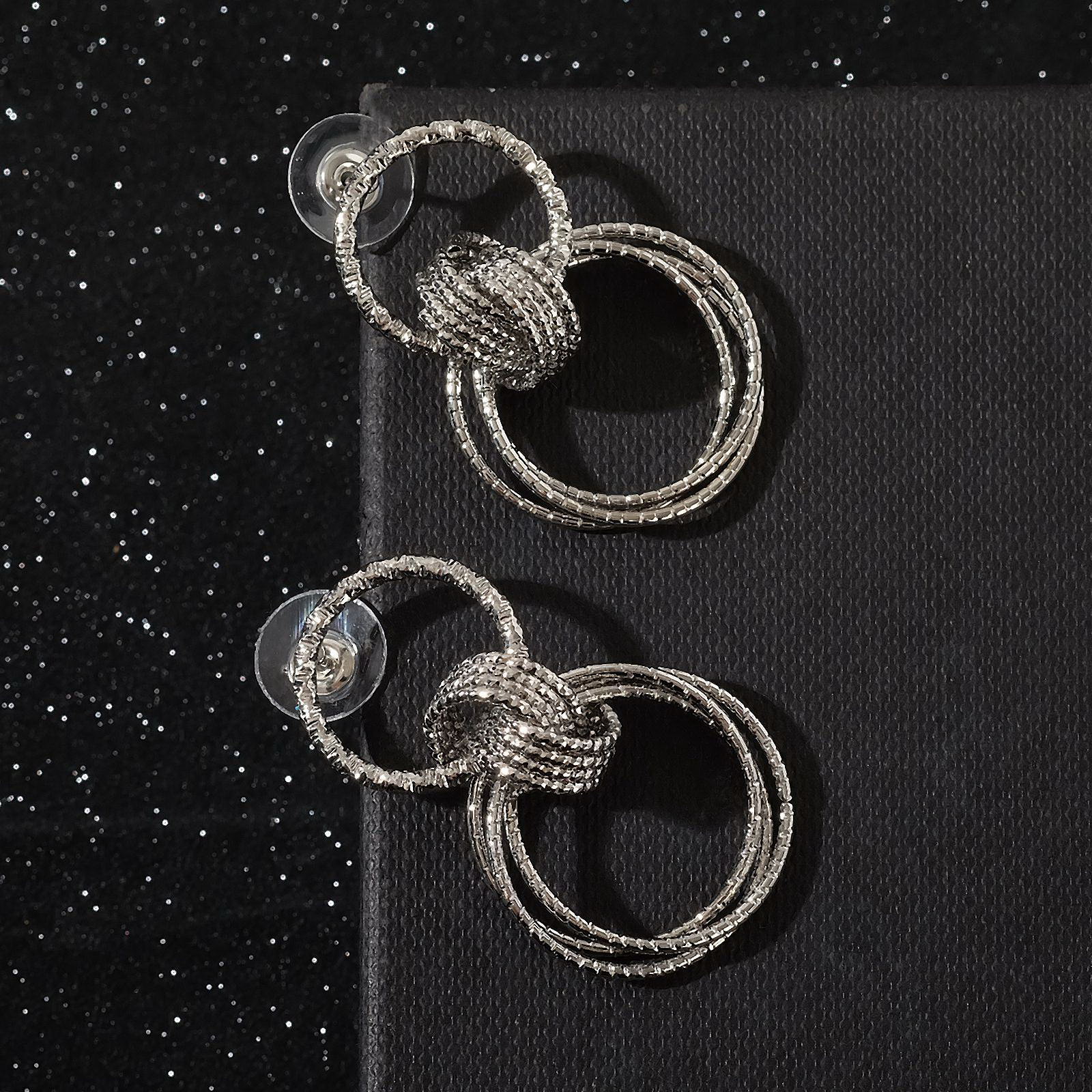 Серьги металл "Чикаго" два кольца, цвет серебро, 2x3.5x0.5 см., QF, Китай
