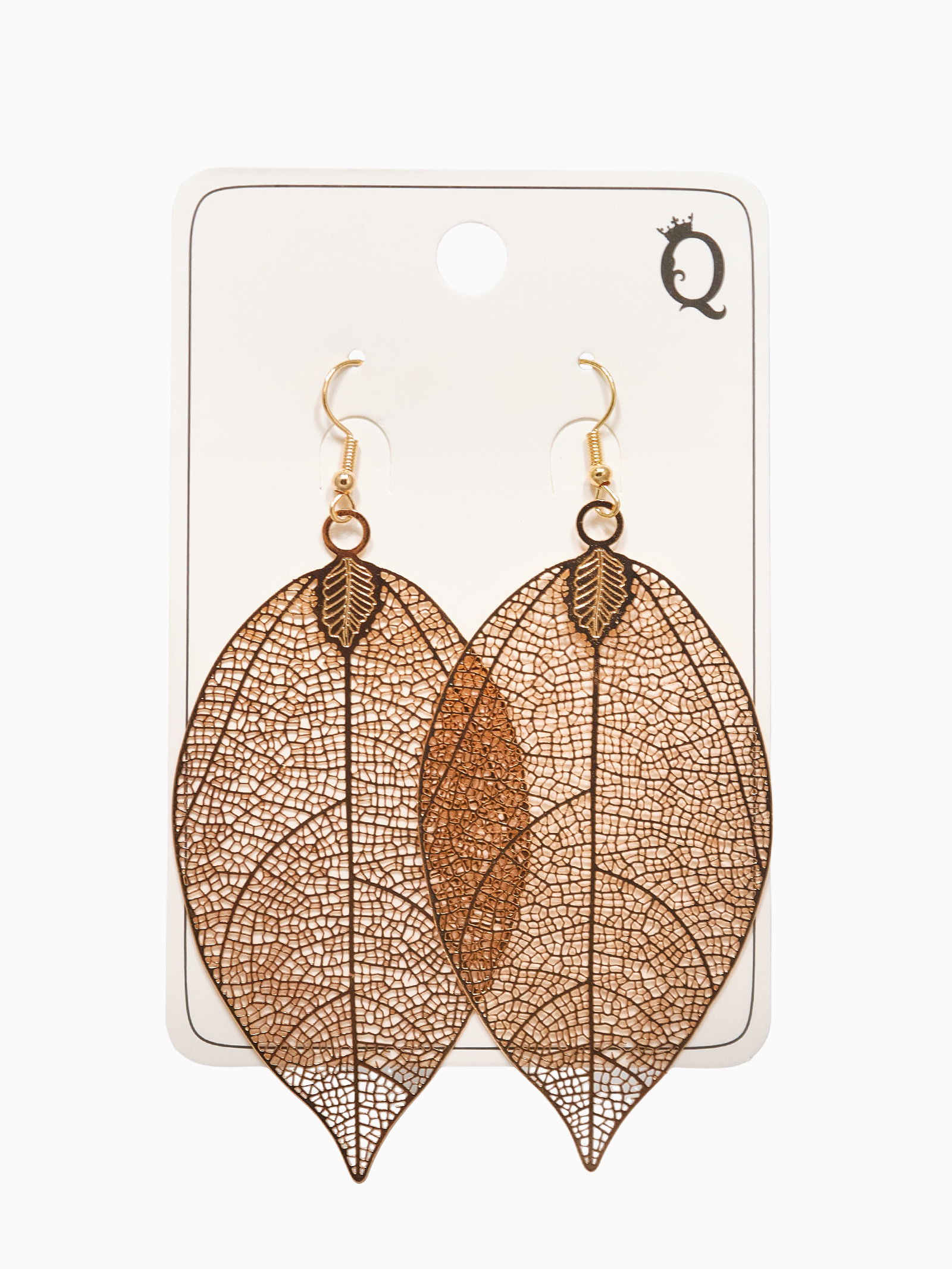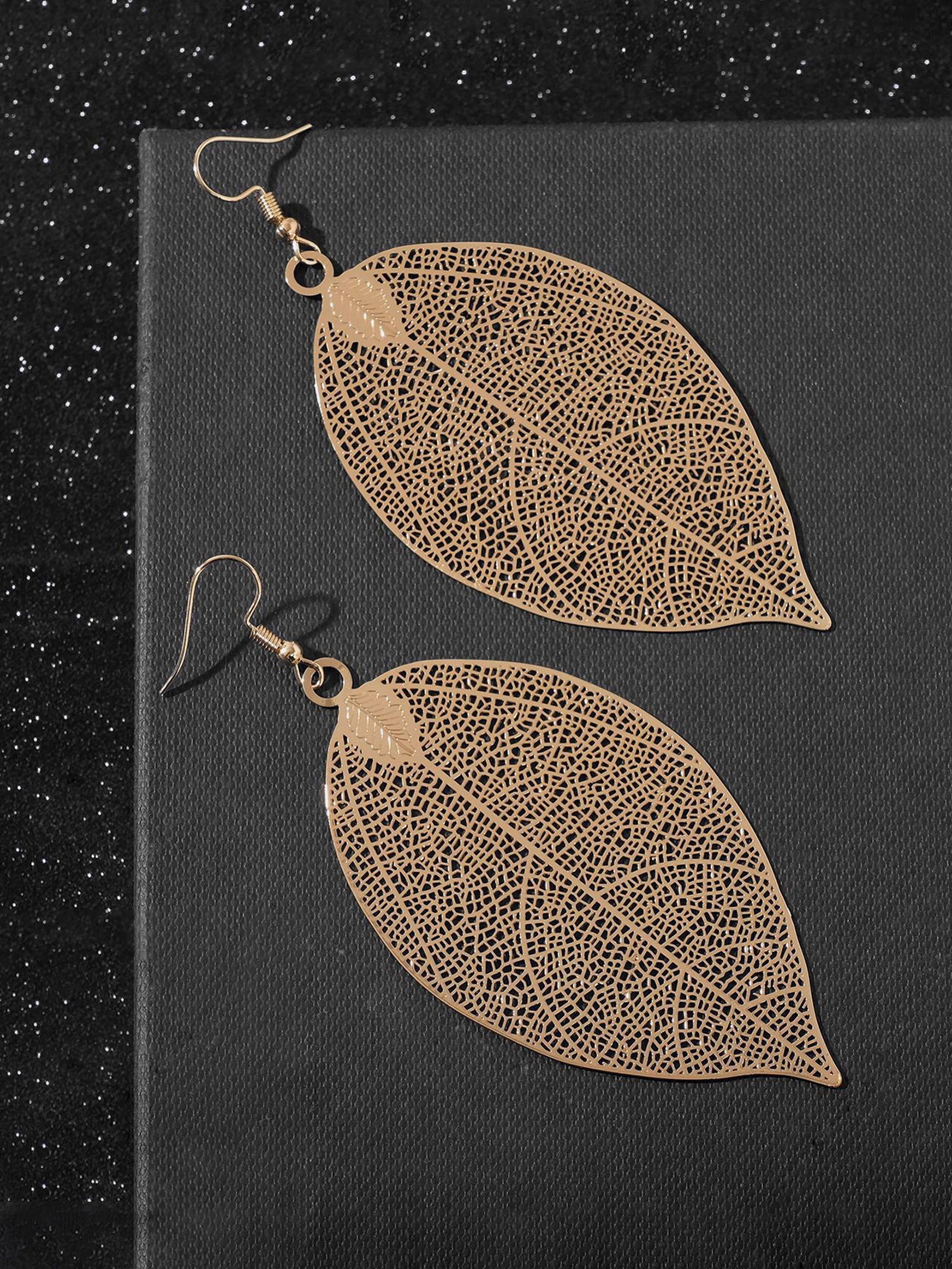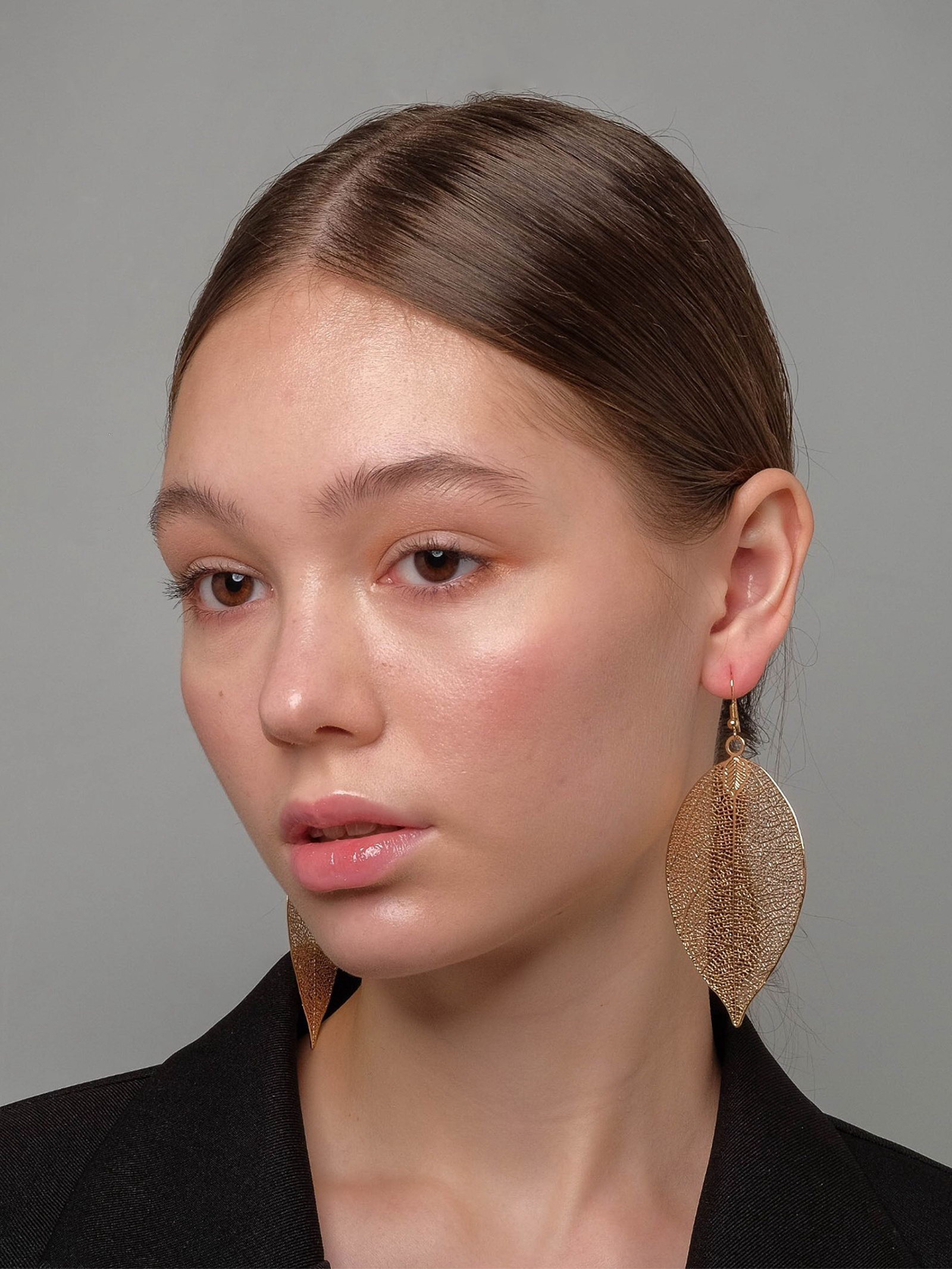 Серьги металл "Лист липы", цвет золото, 4x9.2x0.3 см., QF, Китай