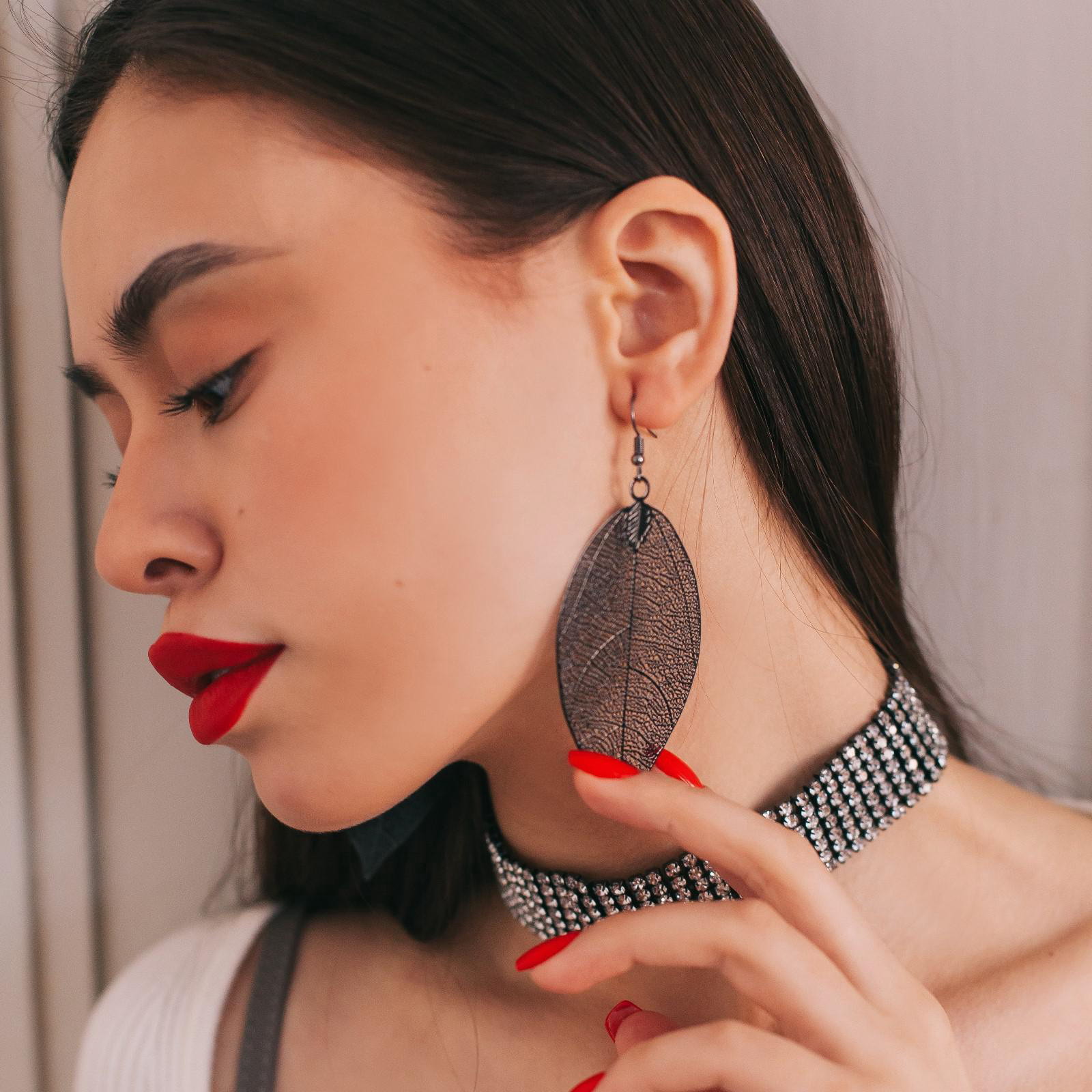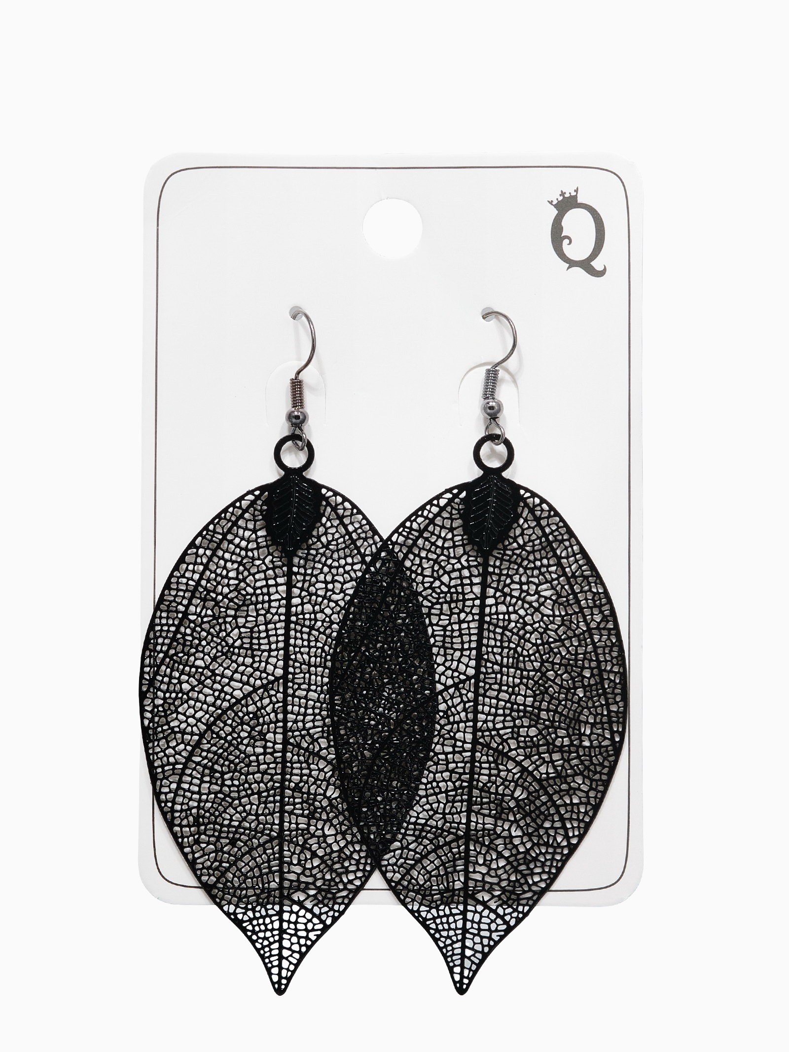 Серьги металл "Лист липы", цвет чёрный, 4x9.2x0.3 см., QF, Китай