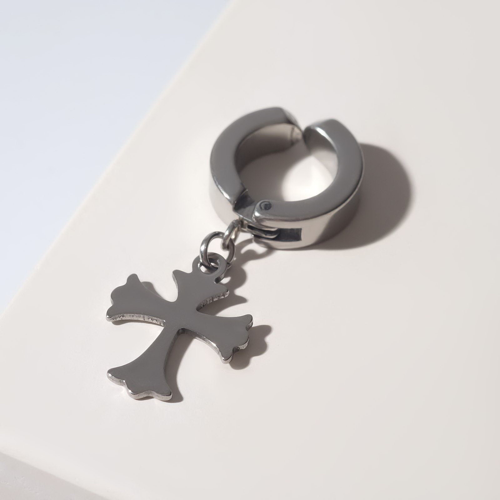 Моно-серьга "Крест", цвет серебро, 1.3x3x0.4 см., QF, Китай