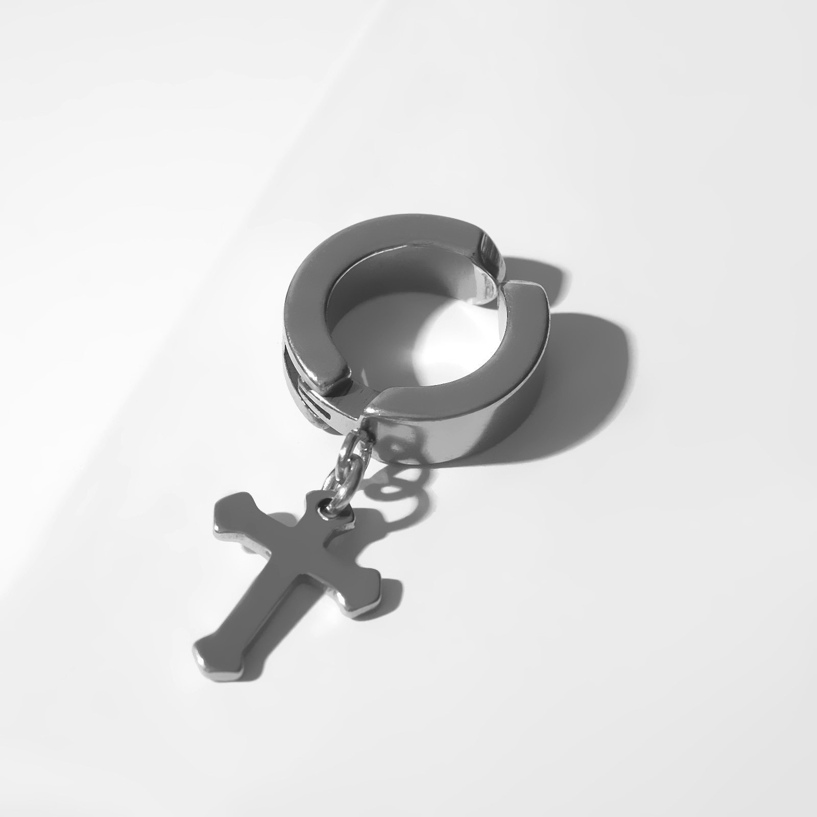 Моно-серьга "Крестик" мини, цвет серебро, 1.2x3x0.3 см., QF, Китай