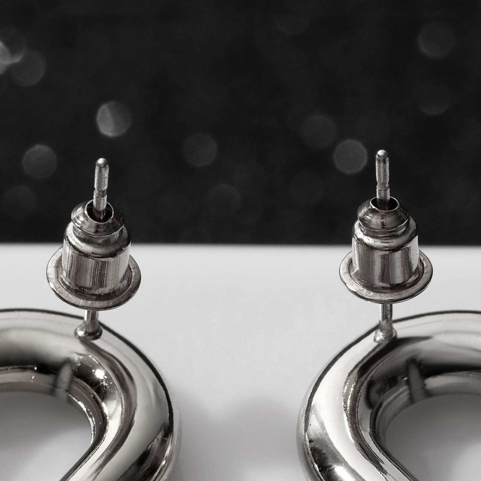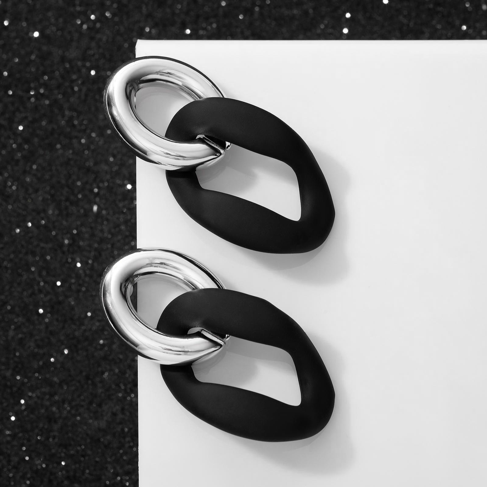 Серьги металл "Цепь" неровность, 2 звена, цвет серебристо-чёрный, 3.5x5x1 см., QF, Китай