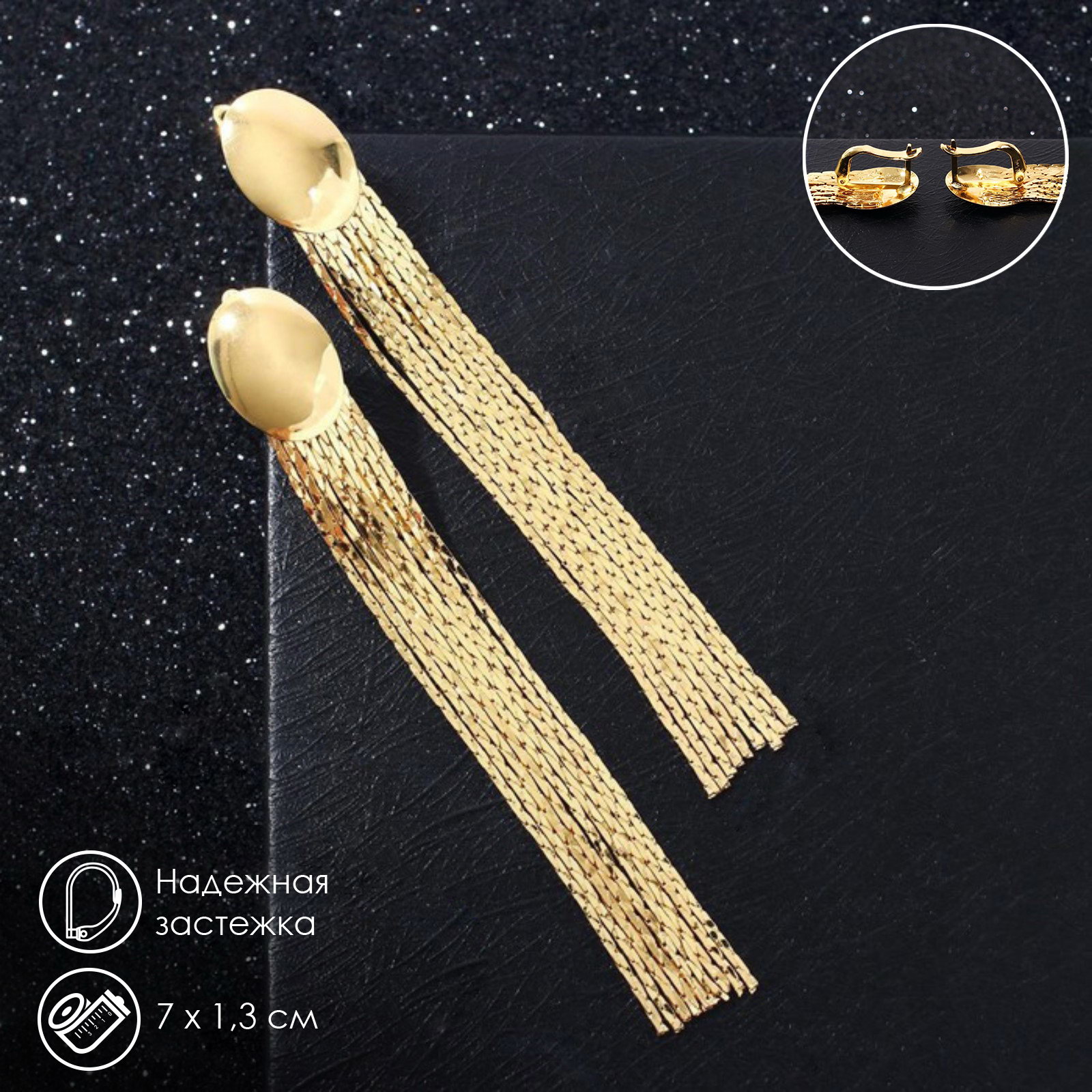 Серьги висячие "Голливуд" овал и нити, цвет золото, 7 см, 1.3x7x1 см., QF, Китай