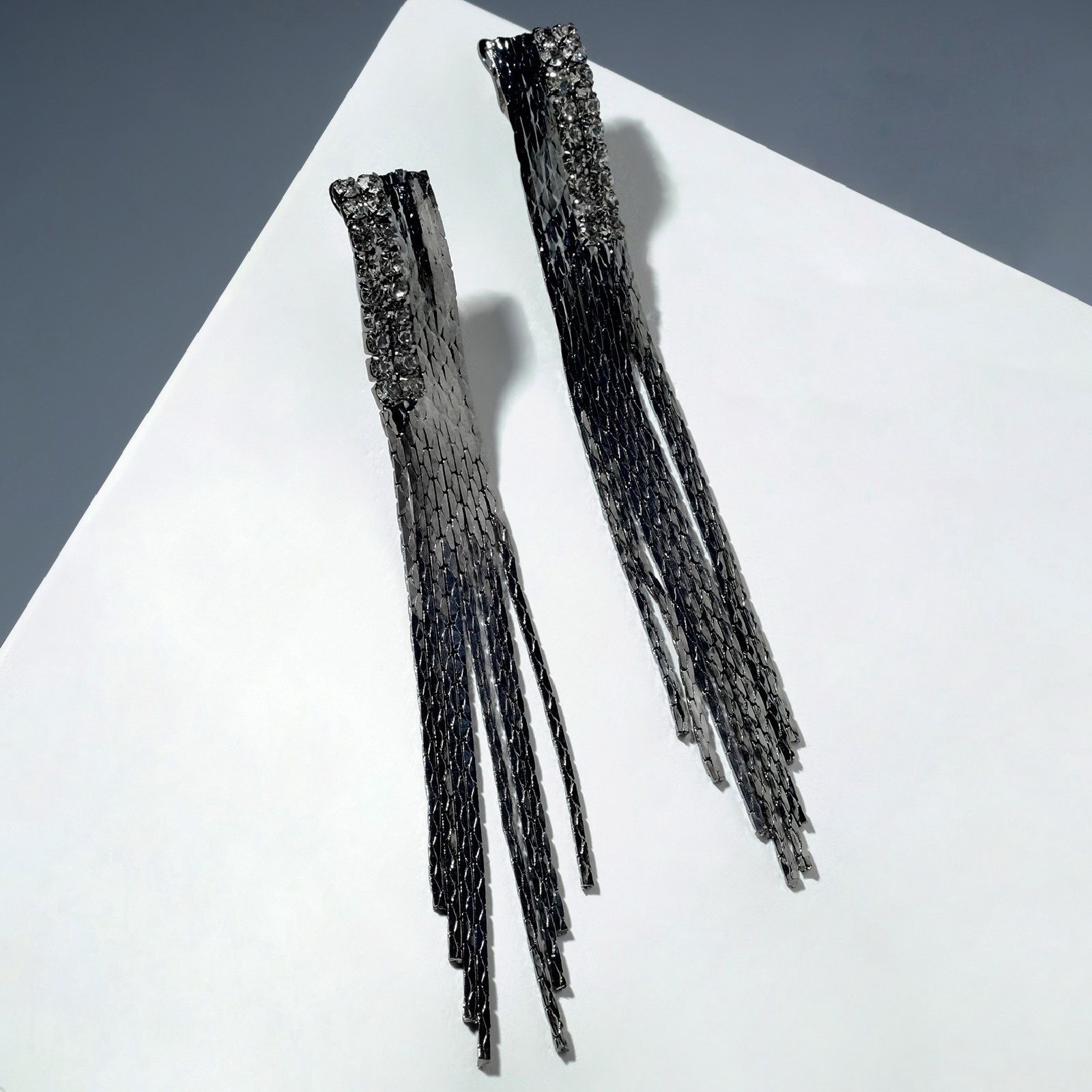 Серьги висячие "Голливуд" дождь, цвет серый, 7.5 см, 1.2x7.5x1 см., QF, Китай