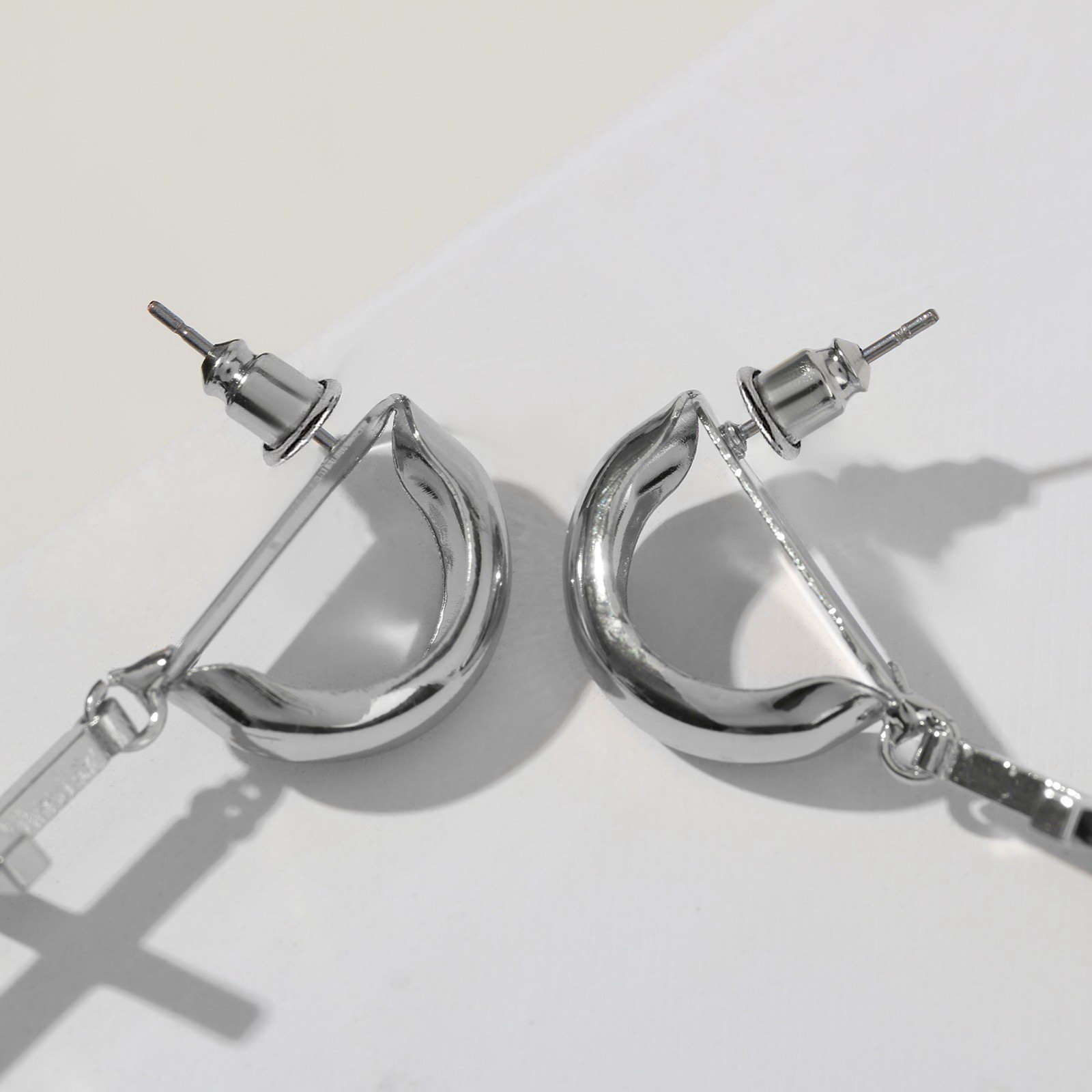 Серьги металл "Кресты" объёмная линия, цвет серебро, 2.5x4.8x1.2 см., QF, Китай
