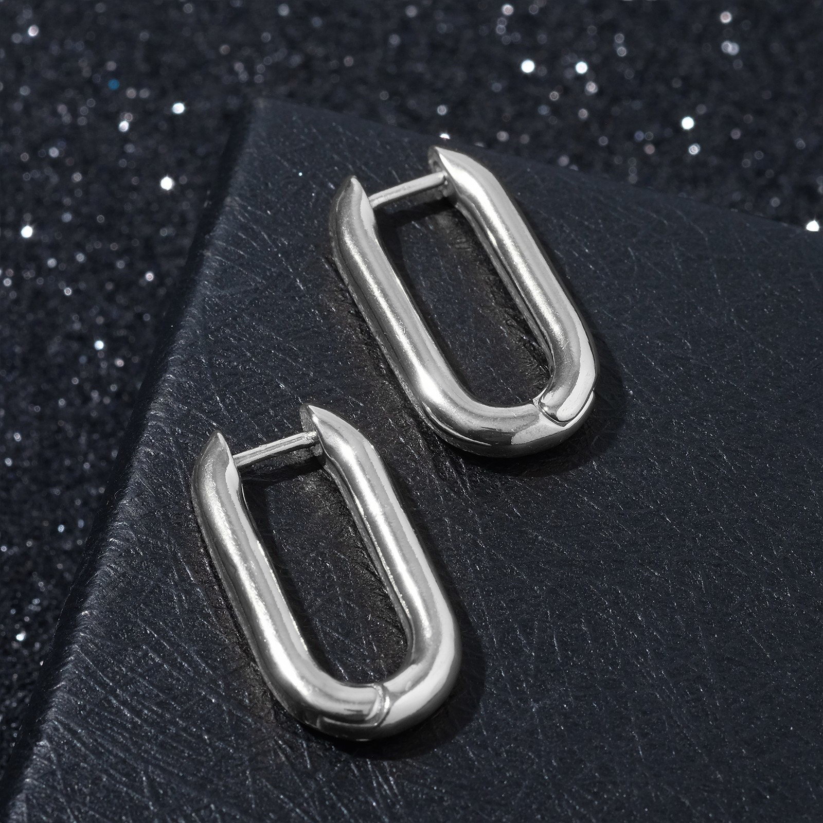 Серьги металл "Геометрия" объёмный овал, цвет серебро, 0.3x2.5x1.4 см., QF, Китай