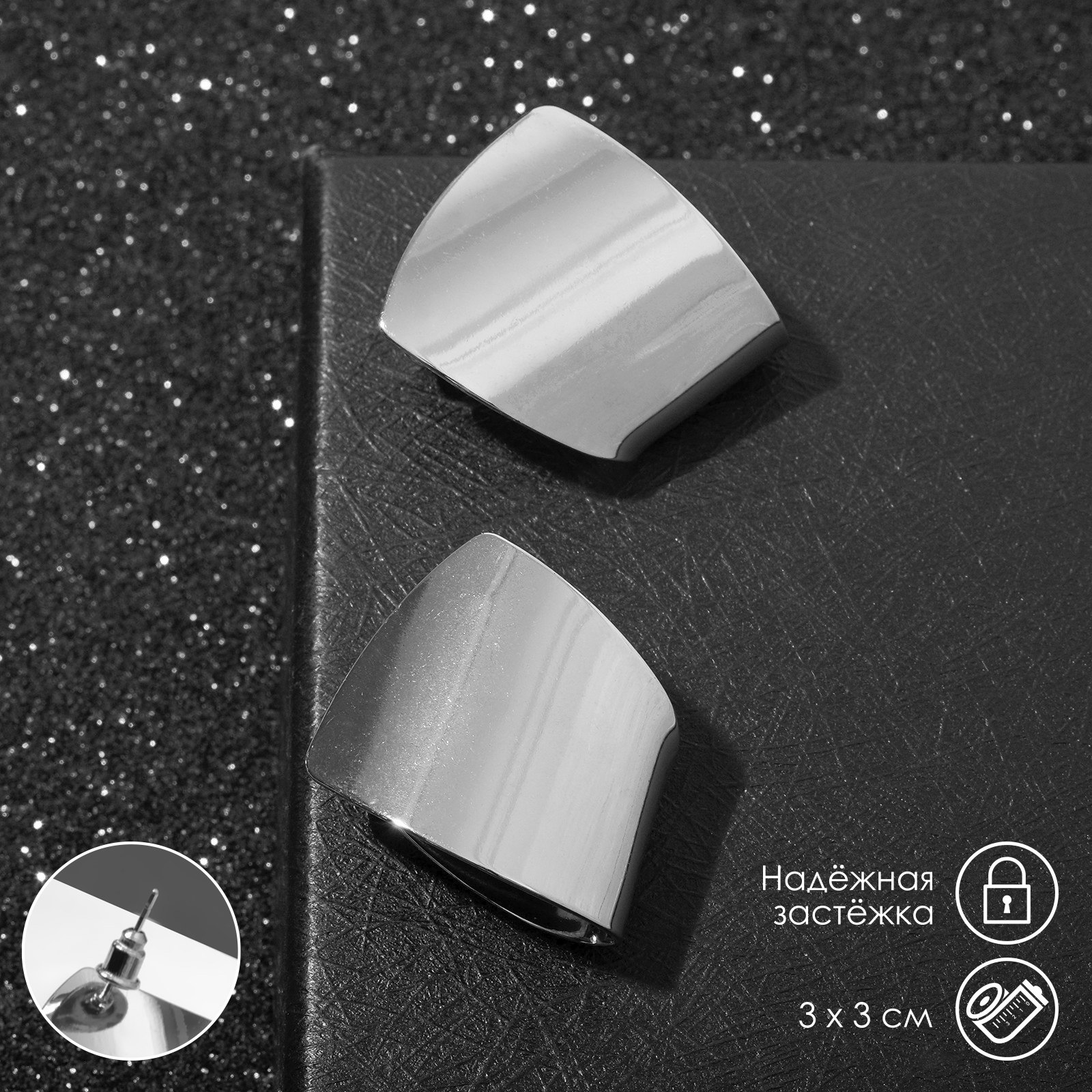 Серьги металл "Геометрия" заворот, цвет серебро, 3x3x1.2 см., QF, Китай