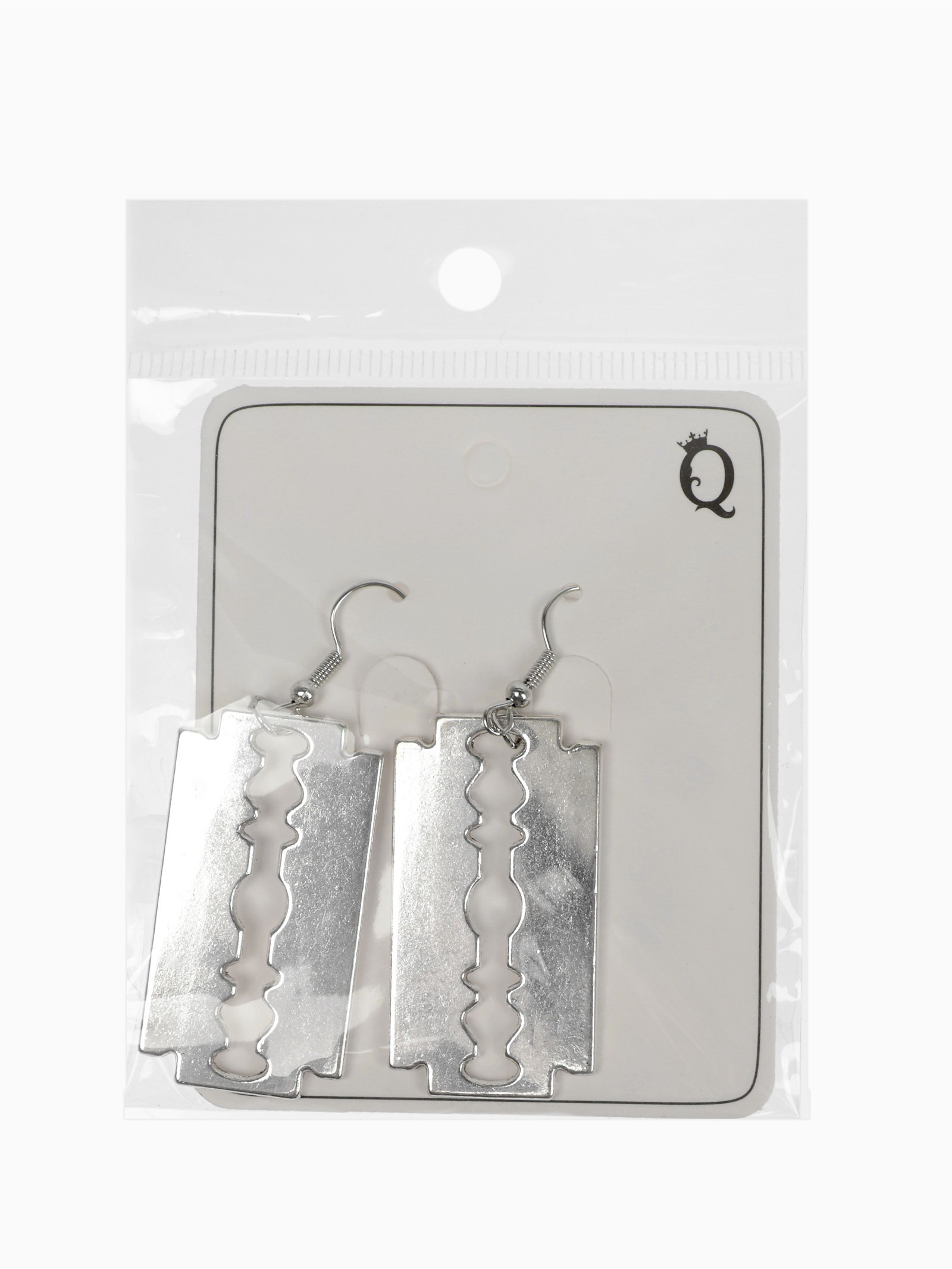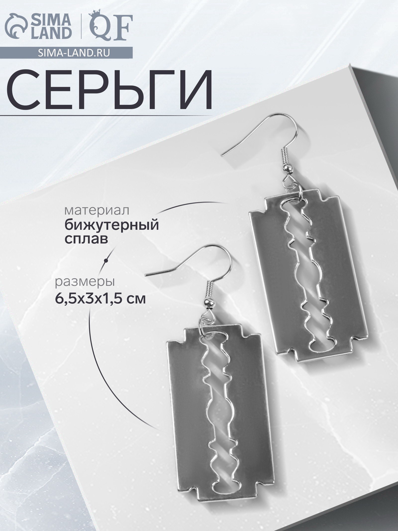 Серьги металл "Бритва", цвет серебро, 3x6.5x1.5 см., QF, Китай
