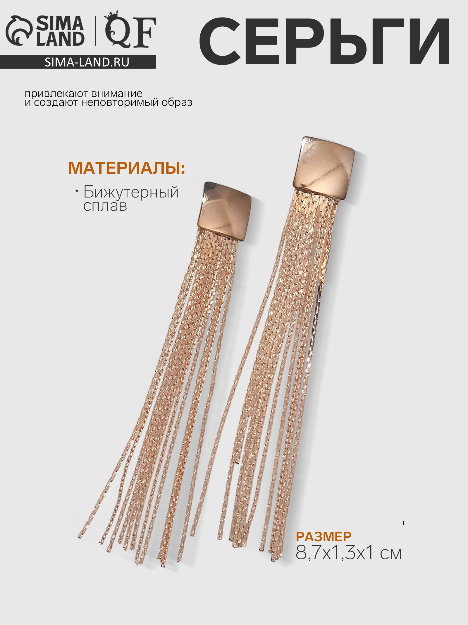 Серьги висячие "Голливуд" квадрат с нитями, цвет розовое золото, 8.7см, 1.3x8.7x1 см., QF, Китай