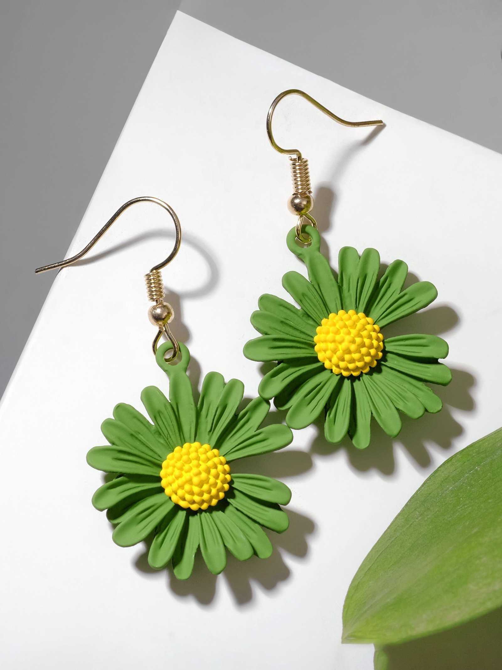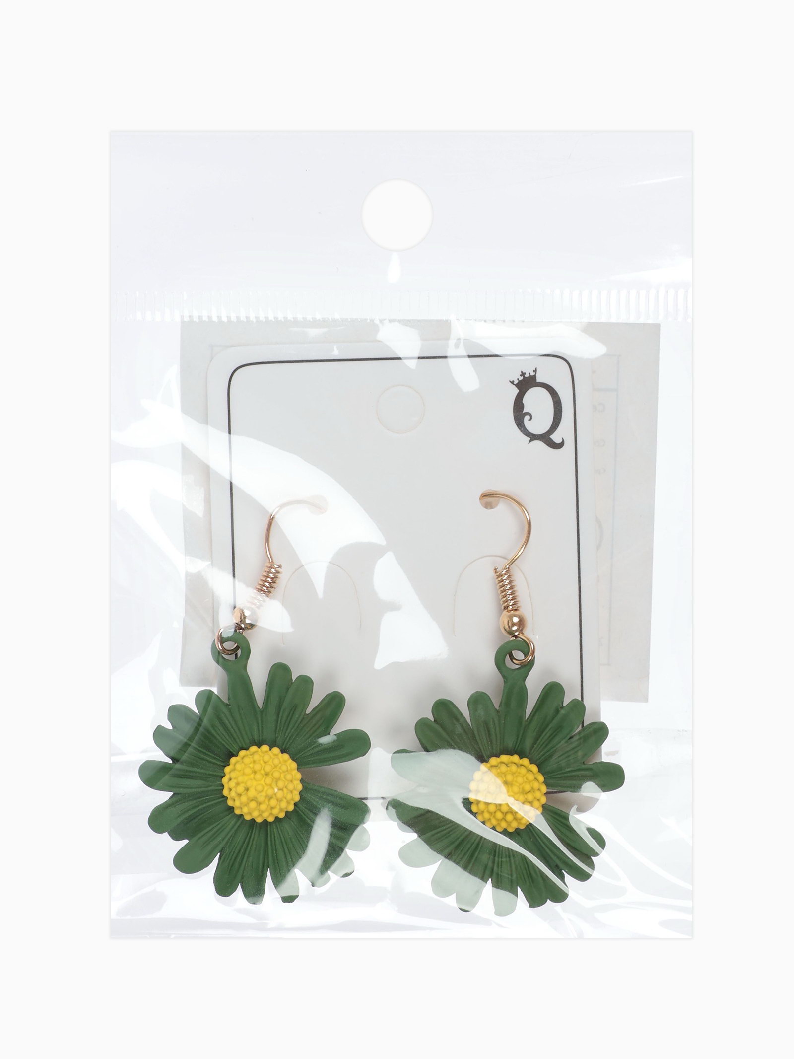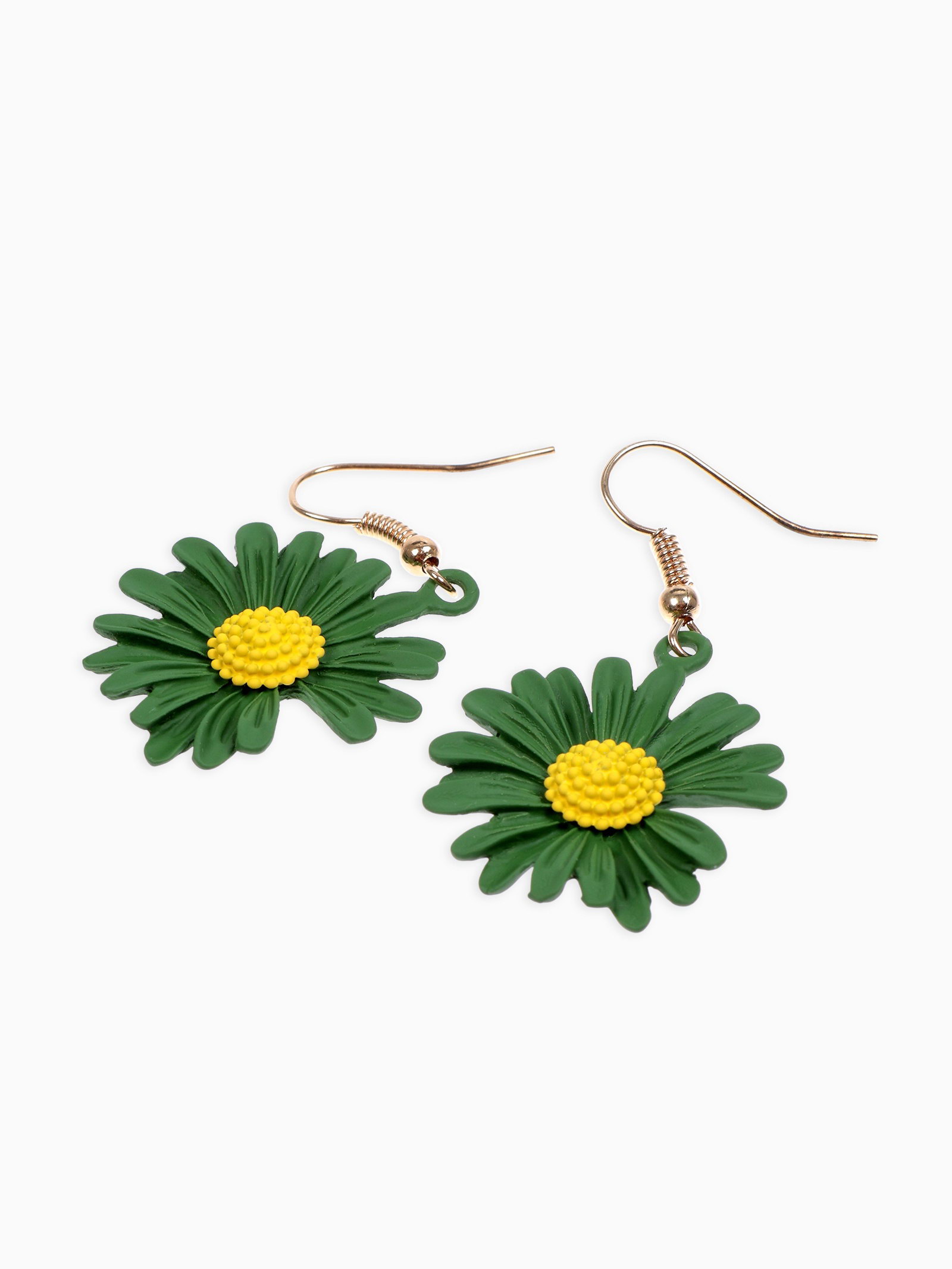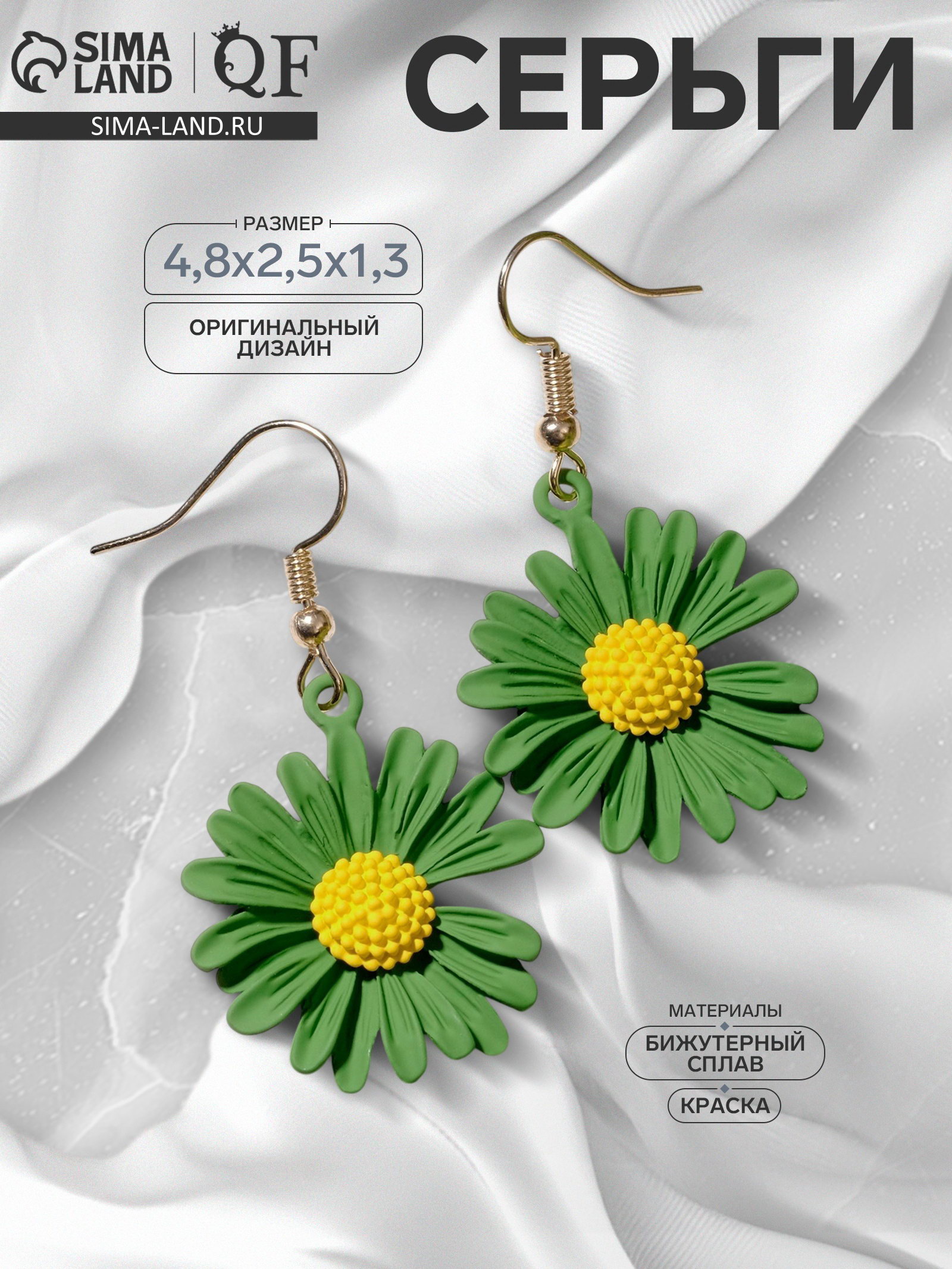 Серьги металл "Яркость" ромашки, цвет жёлто-зелёный, 2.5x4.8x1.3 см., QF, Китай