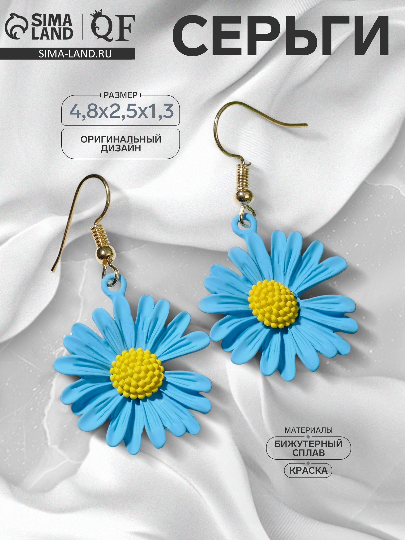 Серьги металл "Яркость" ромашки, цвет жёлто-синий, 2.5x4.8x1.3 см., QF, Китай