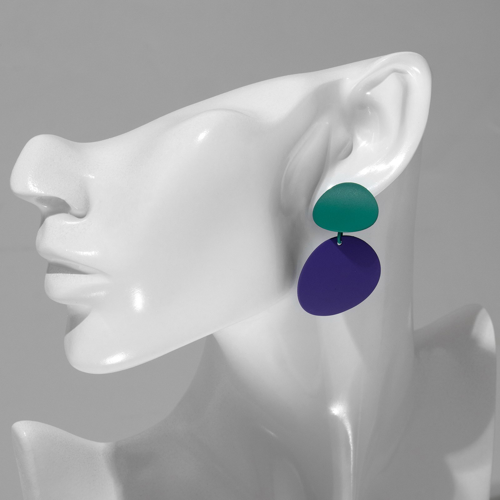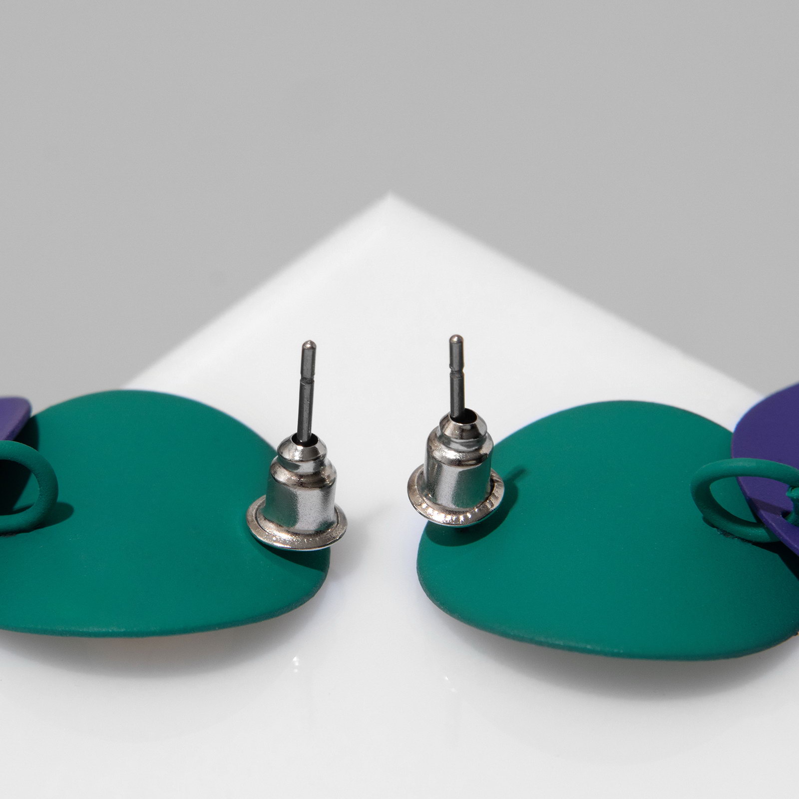 Серьги металл "Леди" круги, дуо, цвет фиолетово-мятный, 2.6x4.5x1 см., QF, КИТАЙ