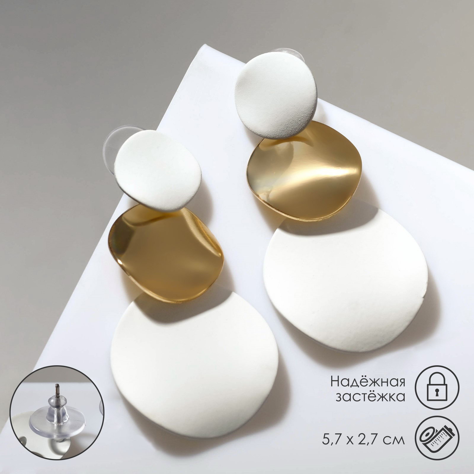 Серьги металл "Азелия" круги, трио, цвет белый в золоте, 2.7x5.7x1 см., QF, Китай