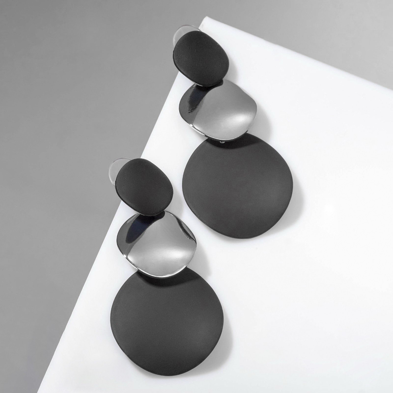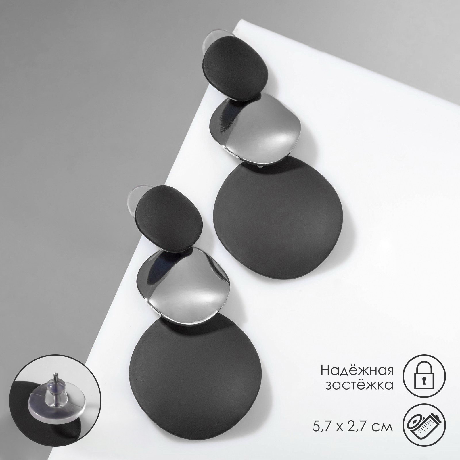 Серьги "Трио круги", чёрные в серебре, 2.7x5.7x1 см., QF, Китай
