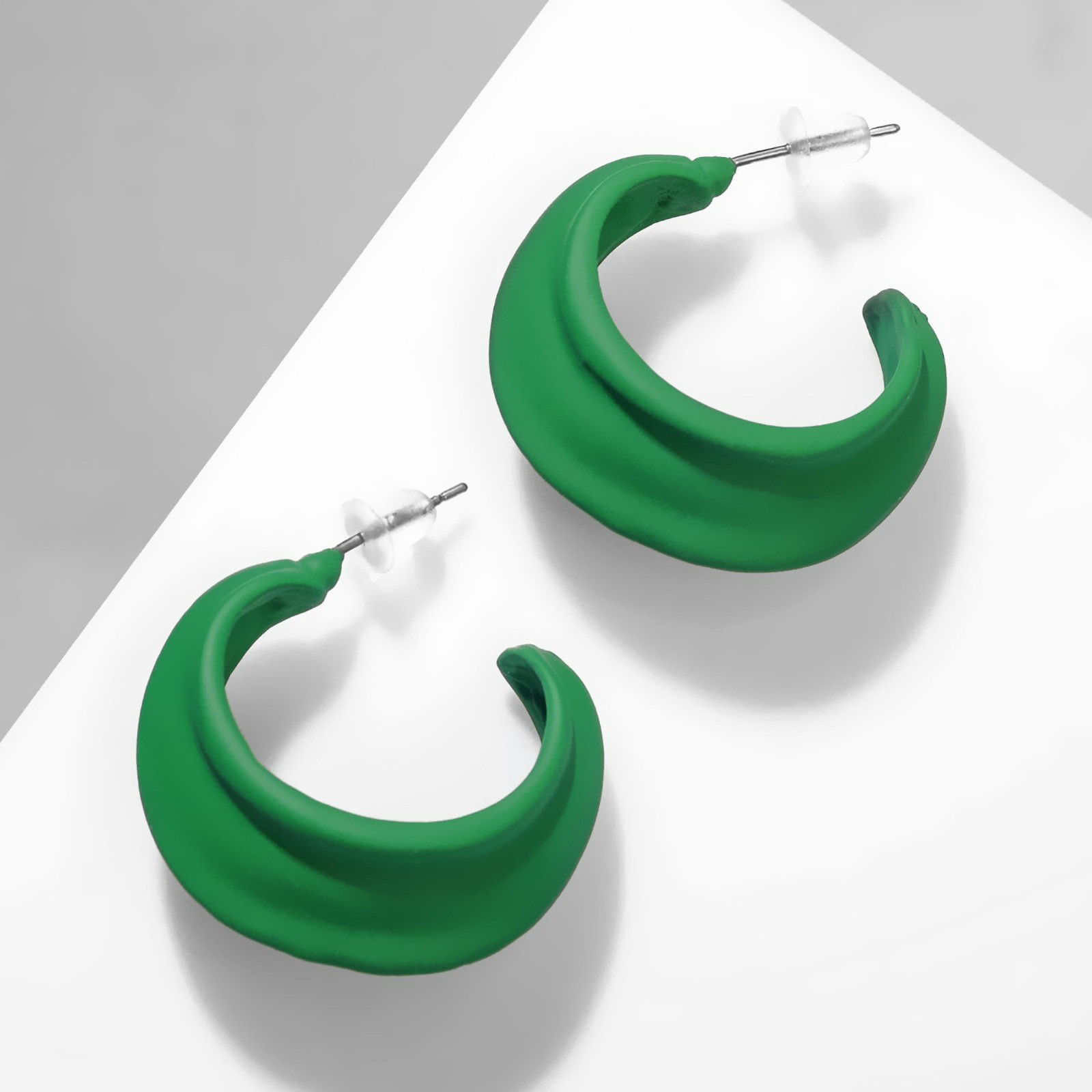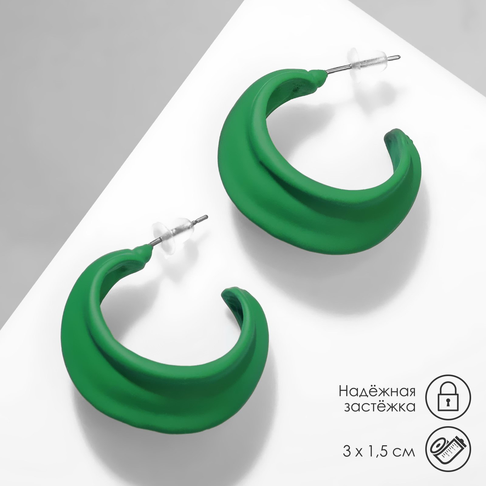 Серьги металл "Яркость" полукольца, цвет зелёный, 1.5x3x1.5 см., QF, Китай