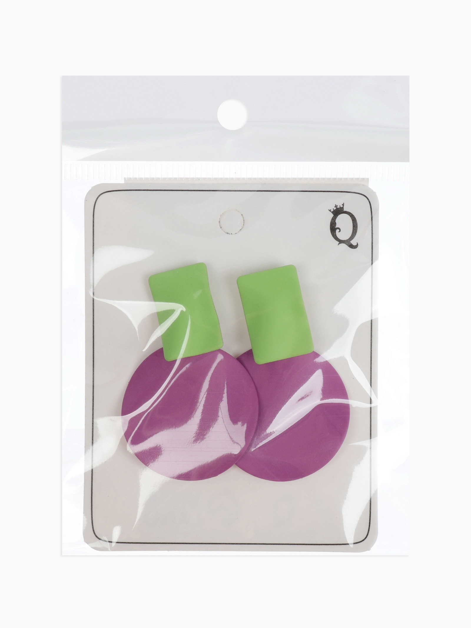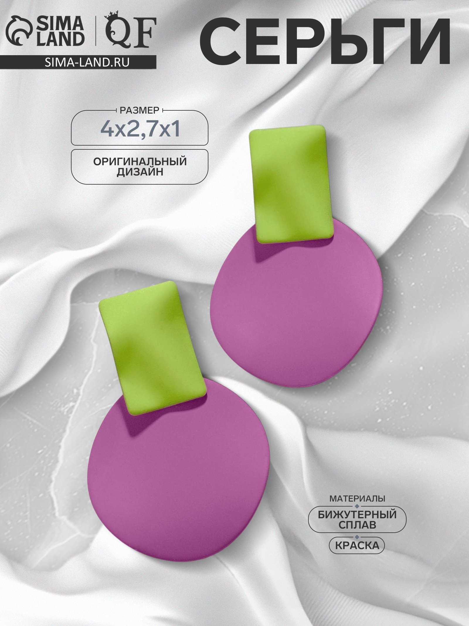 Серьги металл "Яркость" геометрия, цвет салатово-фиолетовый, 2.7x4.2x1 см., QF, Китай