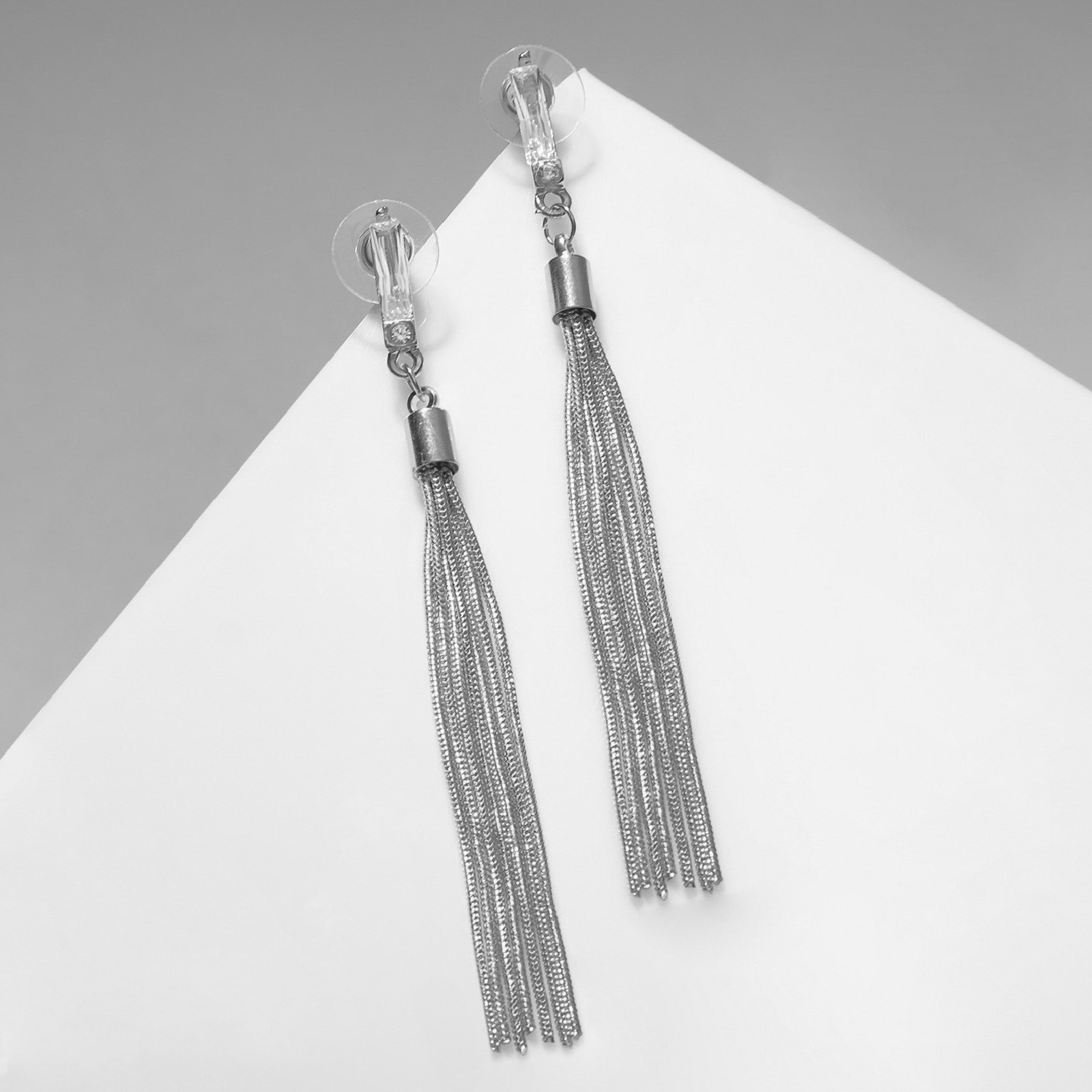 Серьги висячие "Кисточки" с прямоугольником, цвет белый в серебре, 8.5 см, 0.5x8.5x1 см., QF, Китай