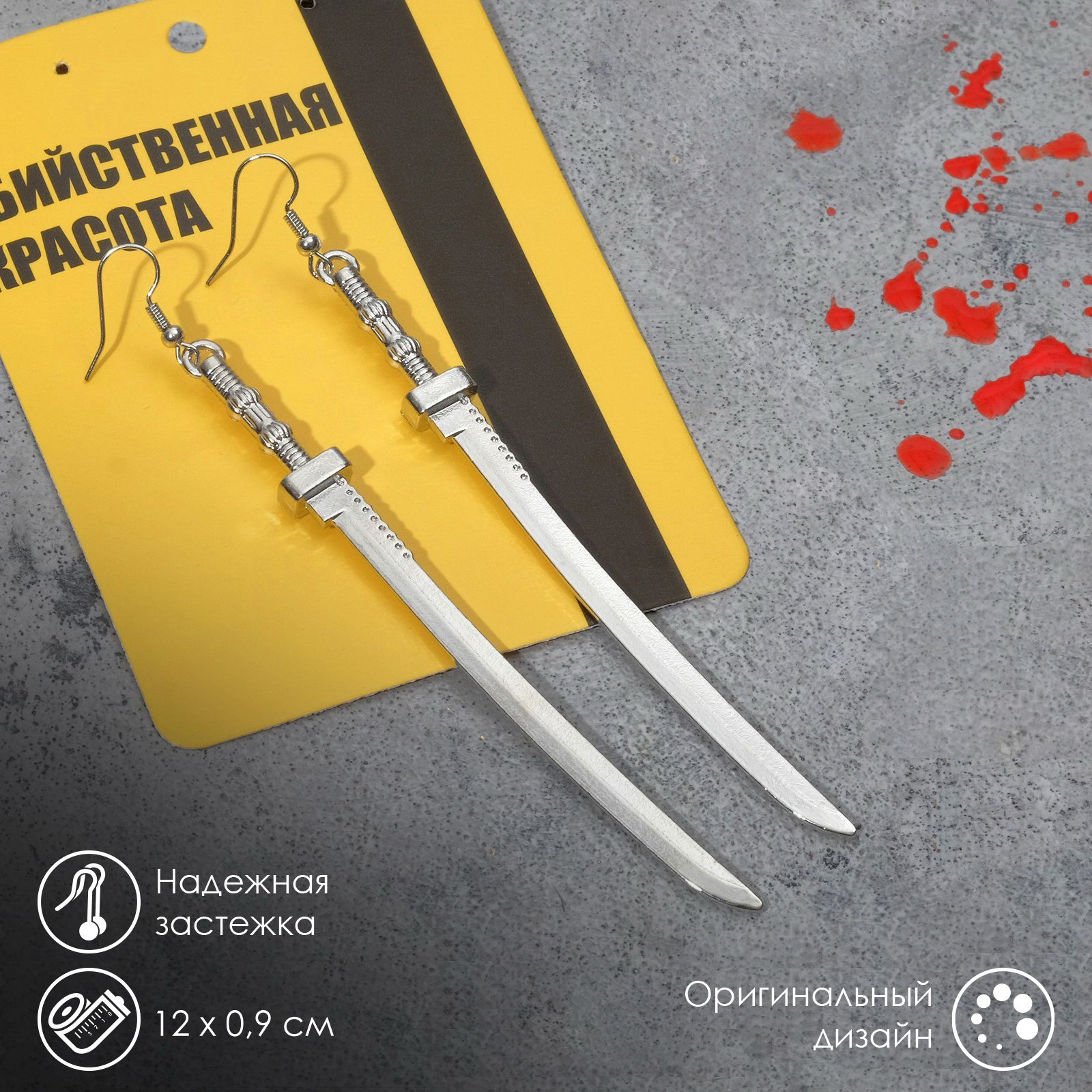 Серьги висячие "Катана" японская, цвет серебро, 12см, 0.2x0.8x12 см., QF, Китай